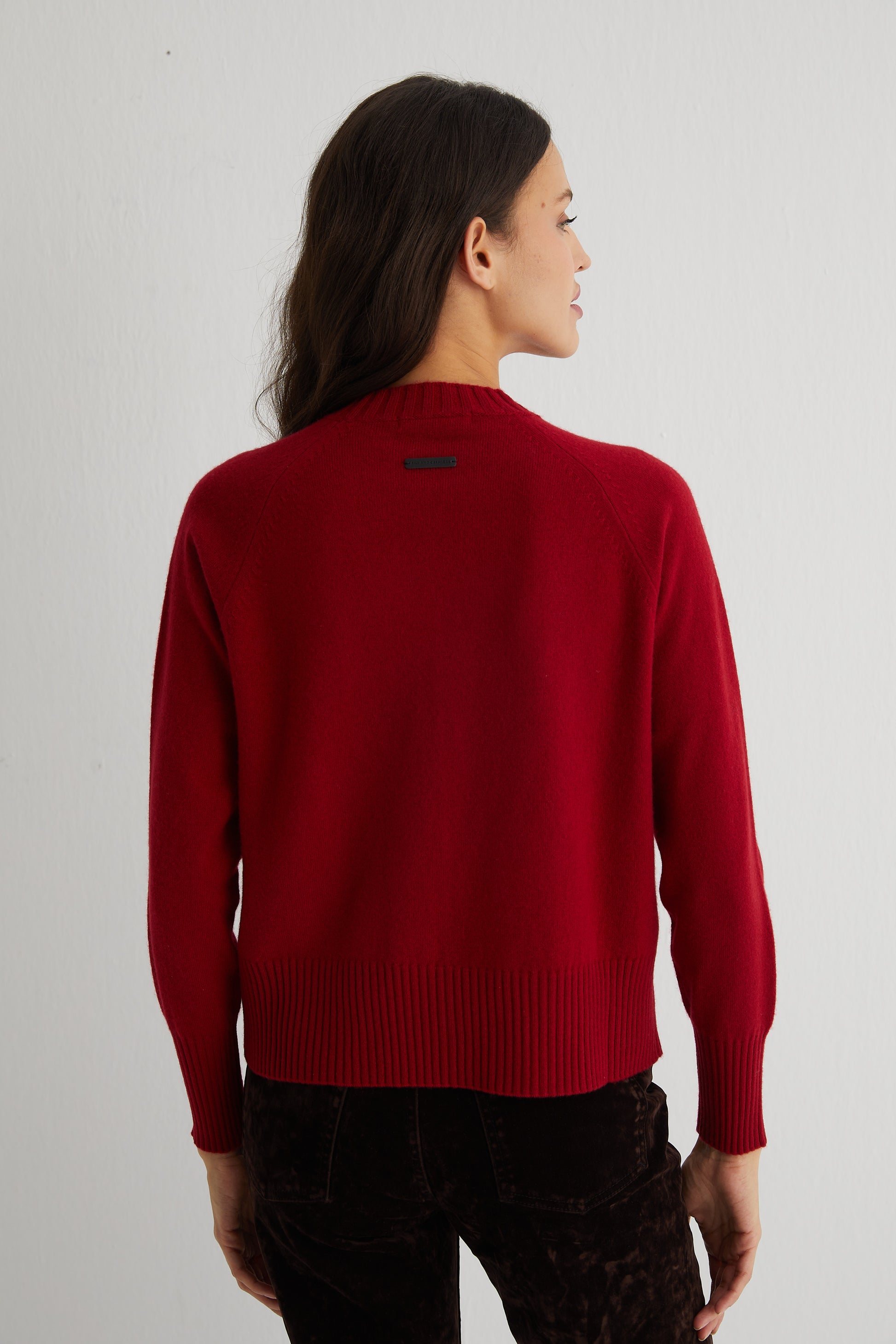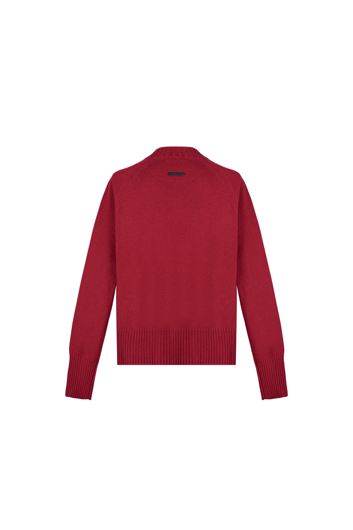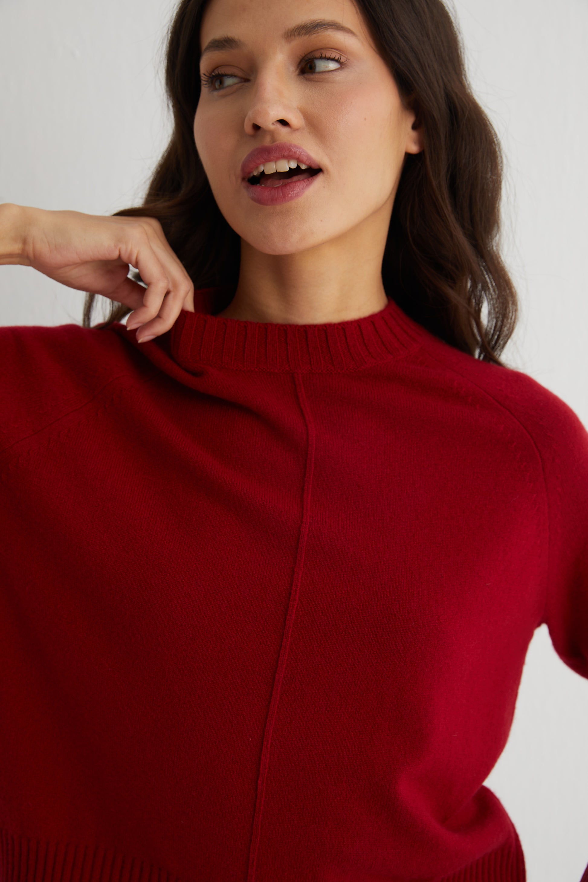 Kırmızı Carla Saf Kaşmir Yuvarlak Yaka Kazak