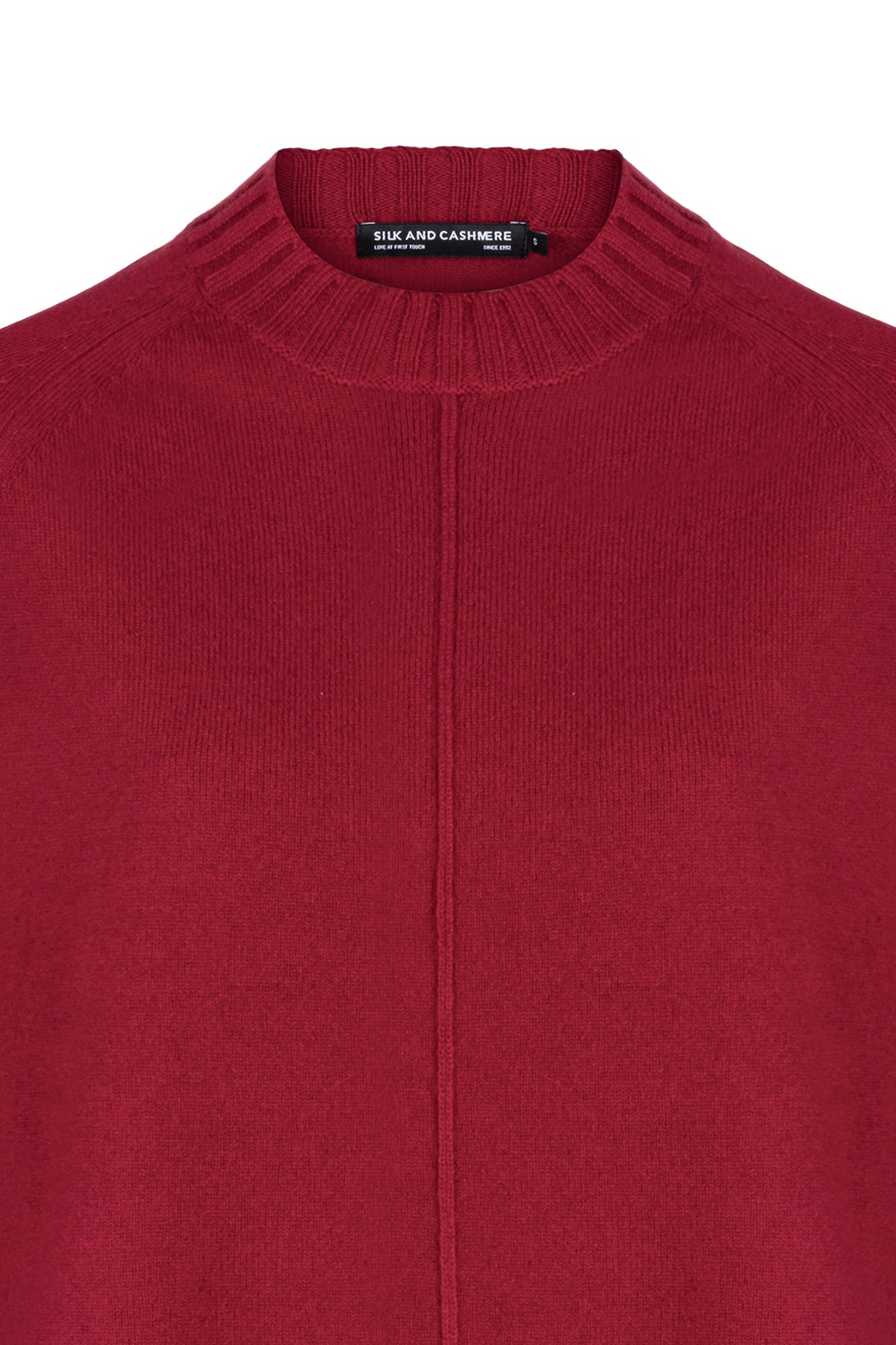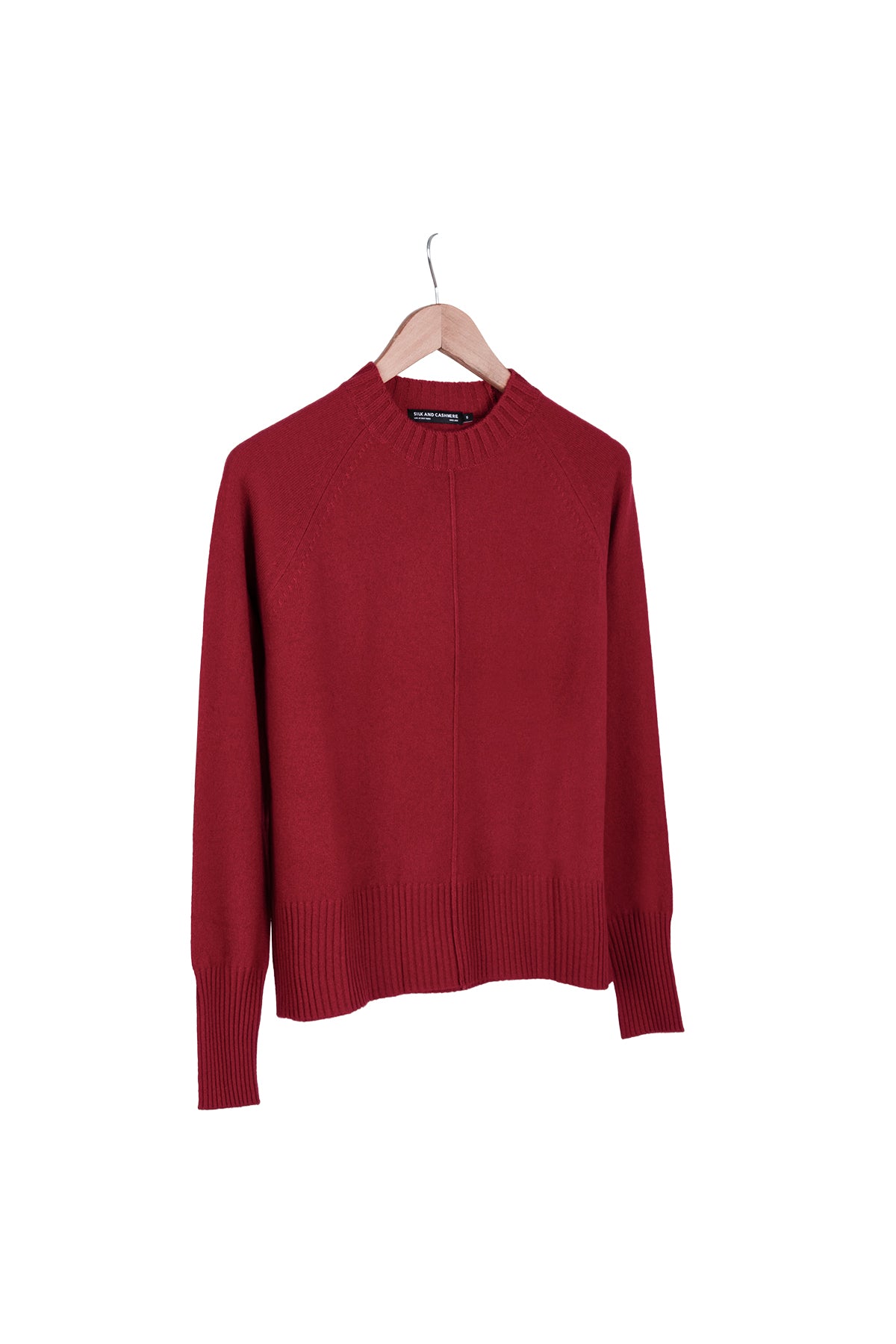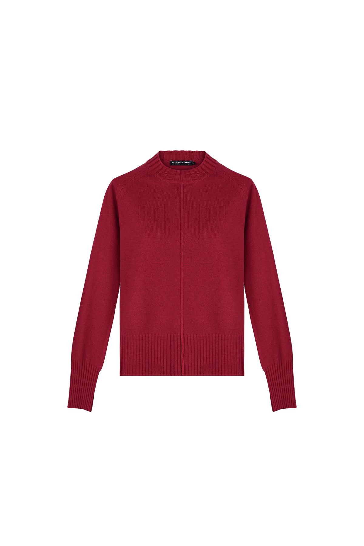 Kırmızı Carla Saf Kaşmir Yuvarlak Yaka Kazak