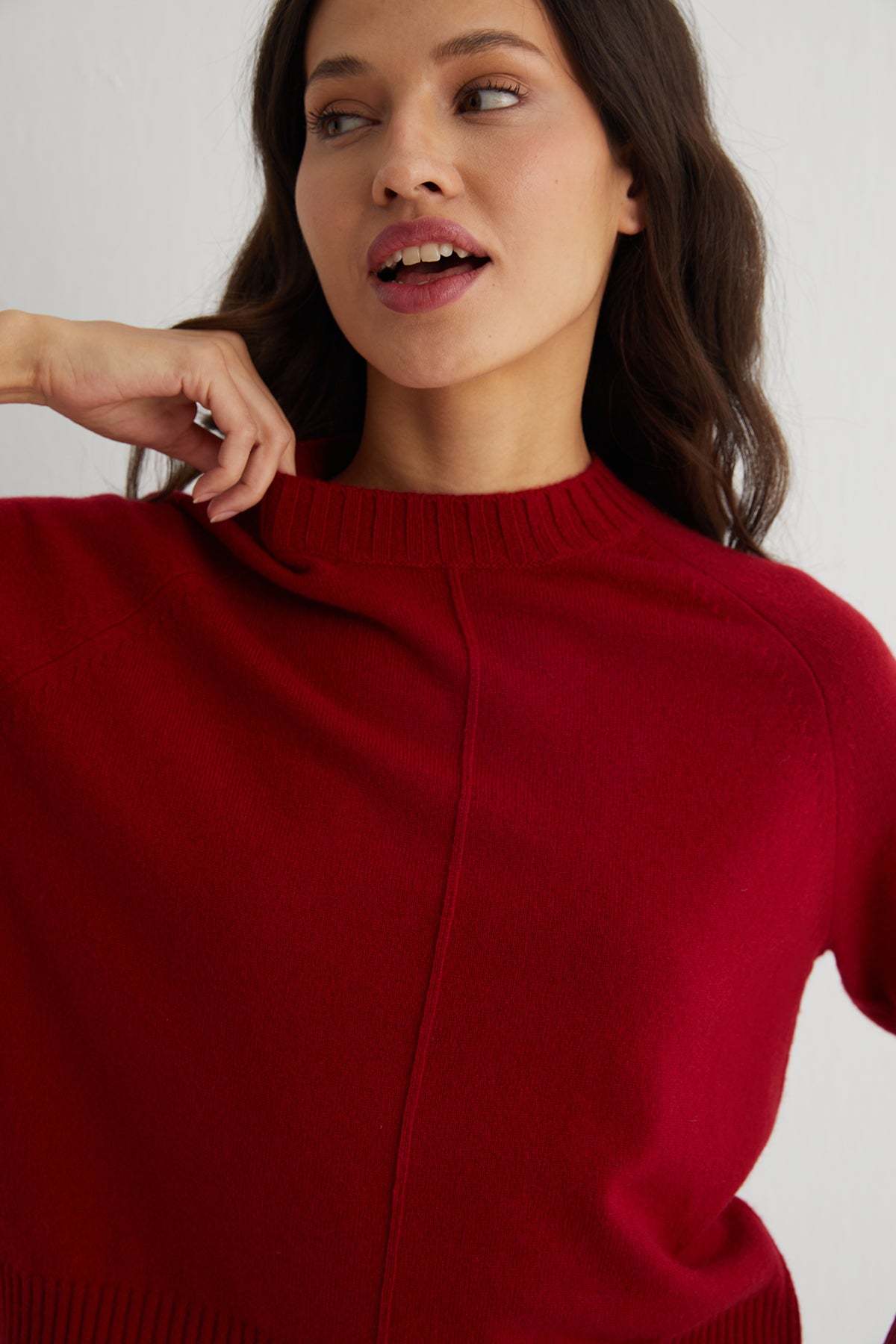 Kırmızı rengi ve zamansız tasarımıyla Carla Kazak, saf kaşmirin güçlü ve yumuşak karakterini taşıyor. Kesimi ve öndeki ince dikiş detayıyla sade olduğu kadar sofistike bir duruş sunarken, her kullanımda tende bıraktığı hisle fark yaratıyor.