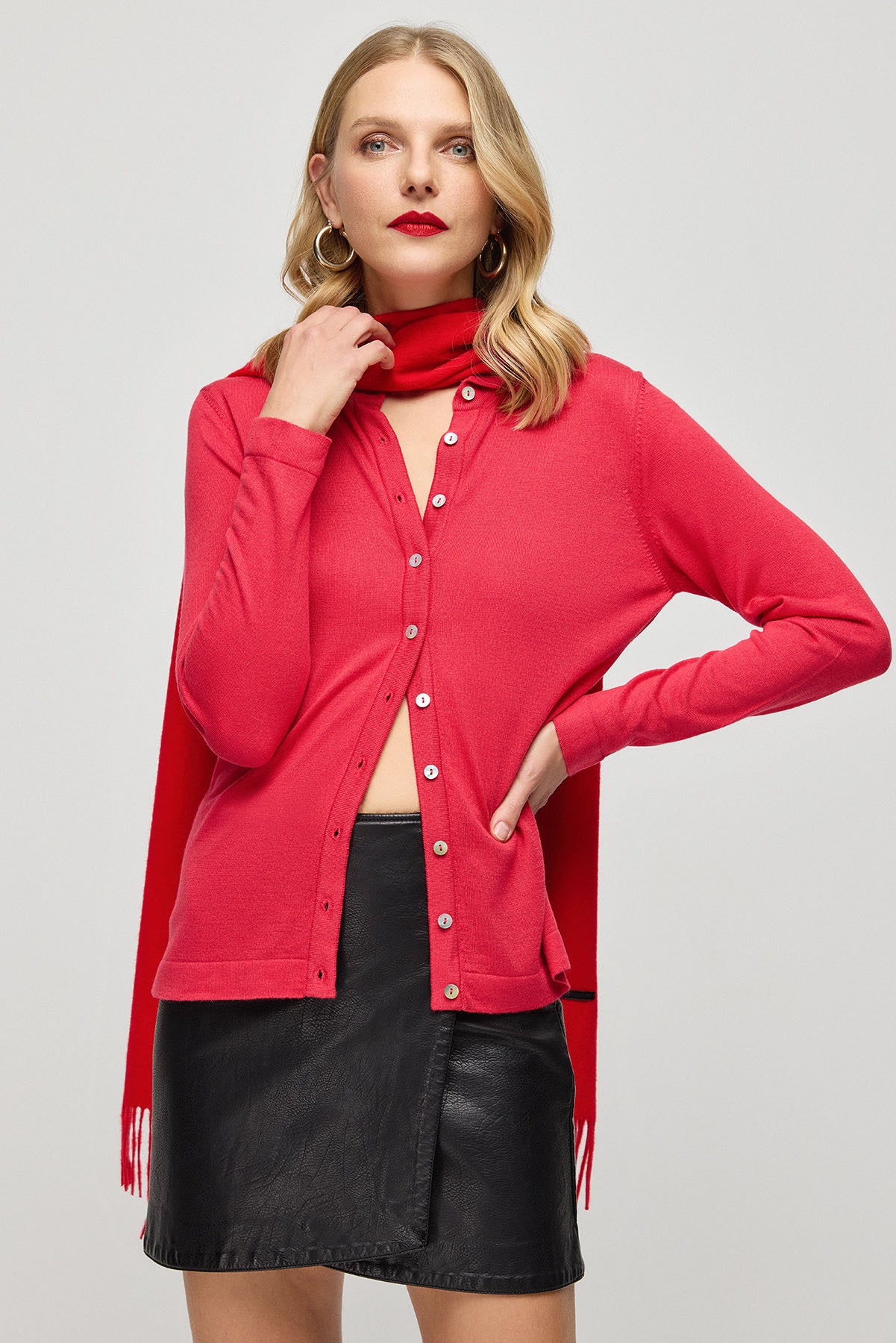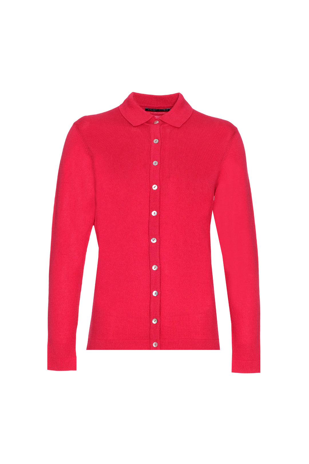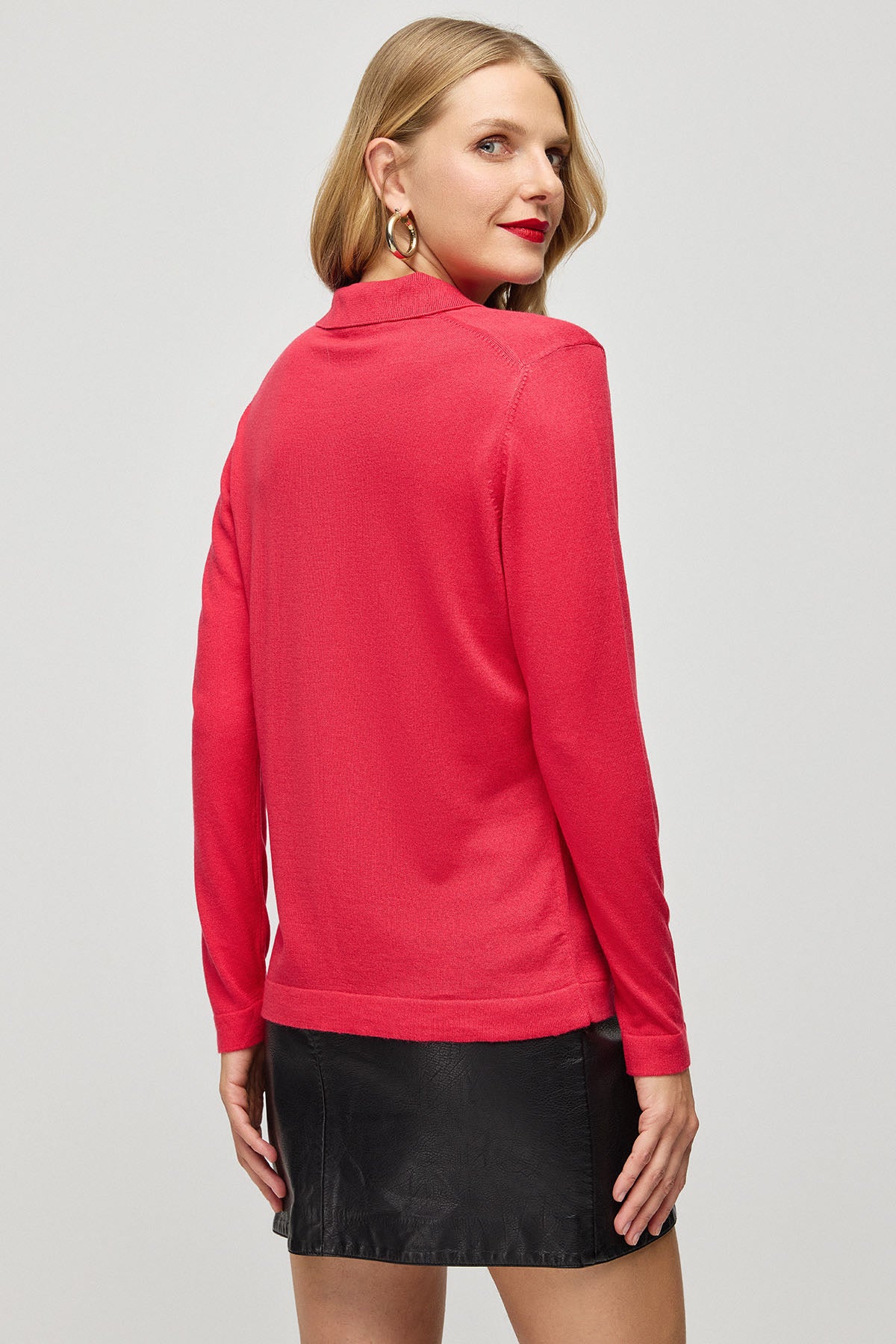 Kırmızı İpek Kaşmir Aleyna Polo Yaka Uzun Kollu Kadın Gömlek