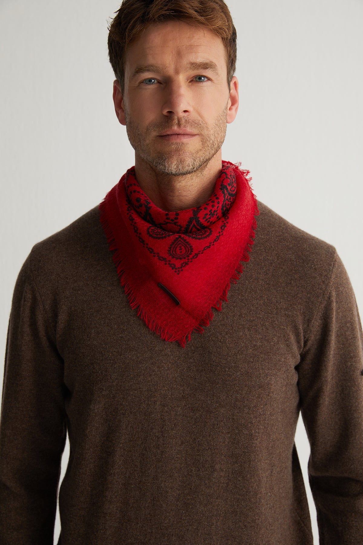 Zamansız jas desenlerini modern kare formda sunan bu şal, gün boyu kullanım için ideal bir parça. Yün ve ipek karışımı dokusuyla hem yumuşak hem de dayanıklı olan tasarım, sade kombinlerin dahi karakterini tamamlamayı başarıyor.