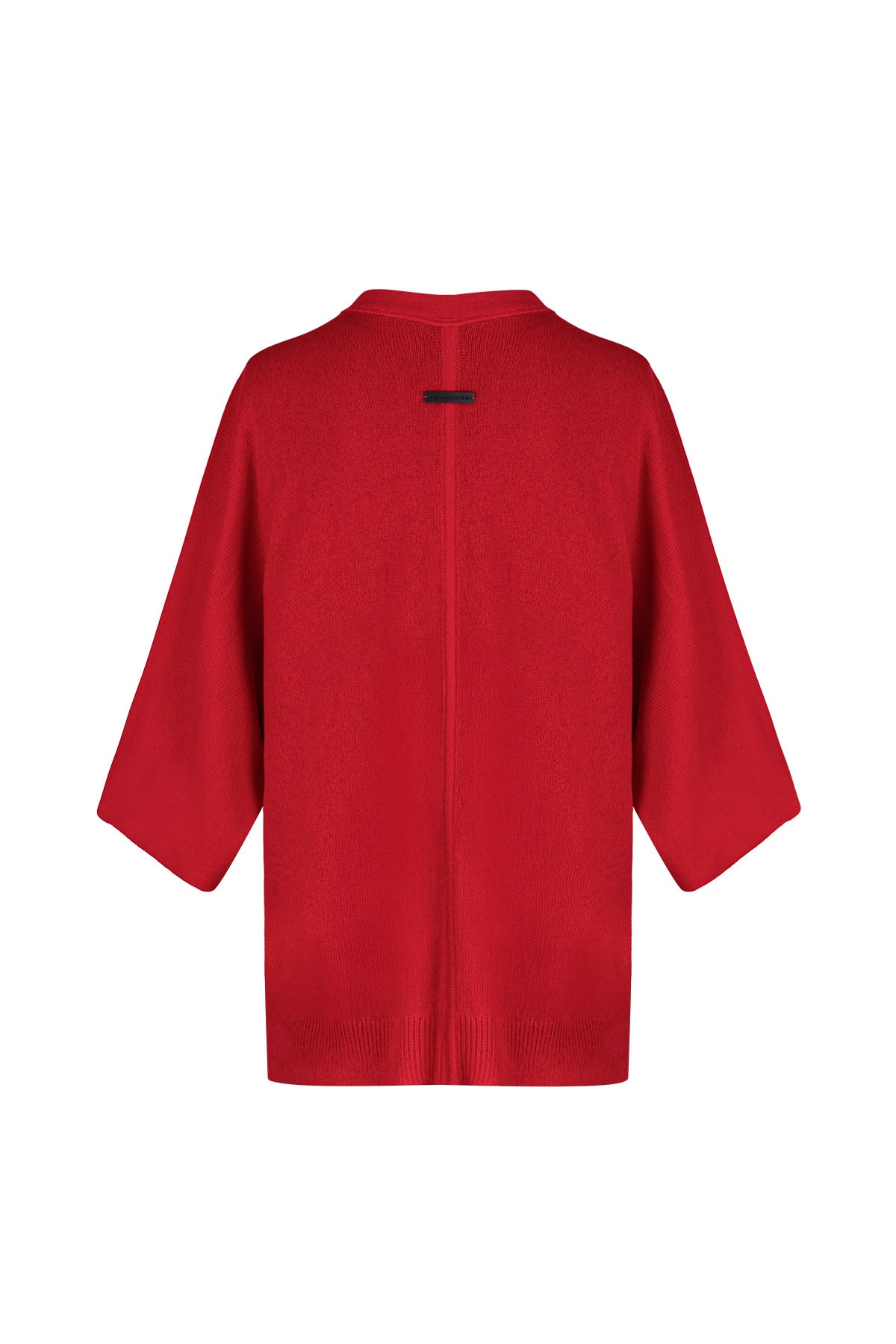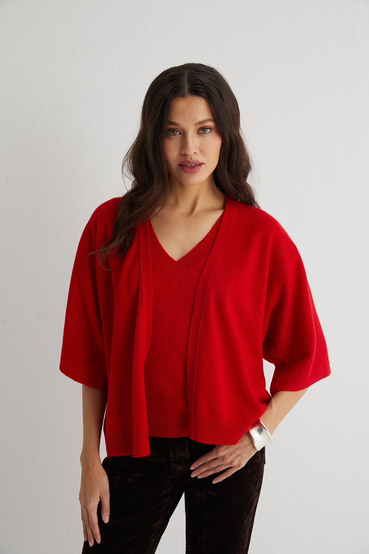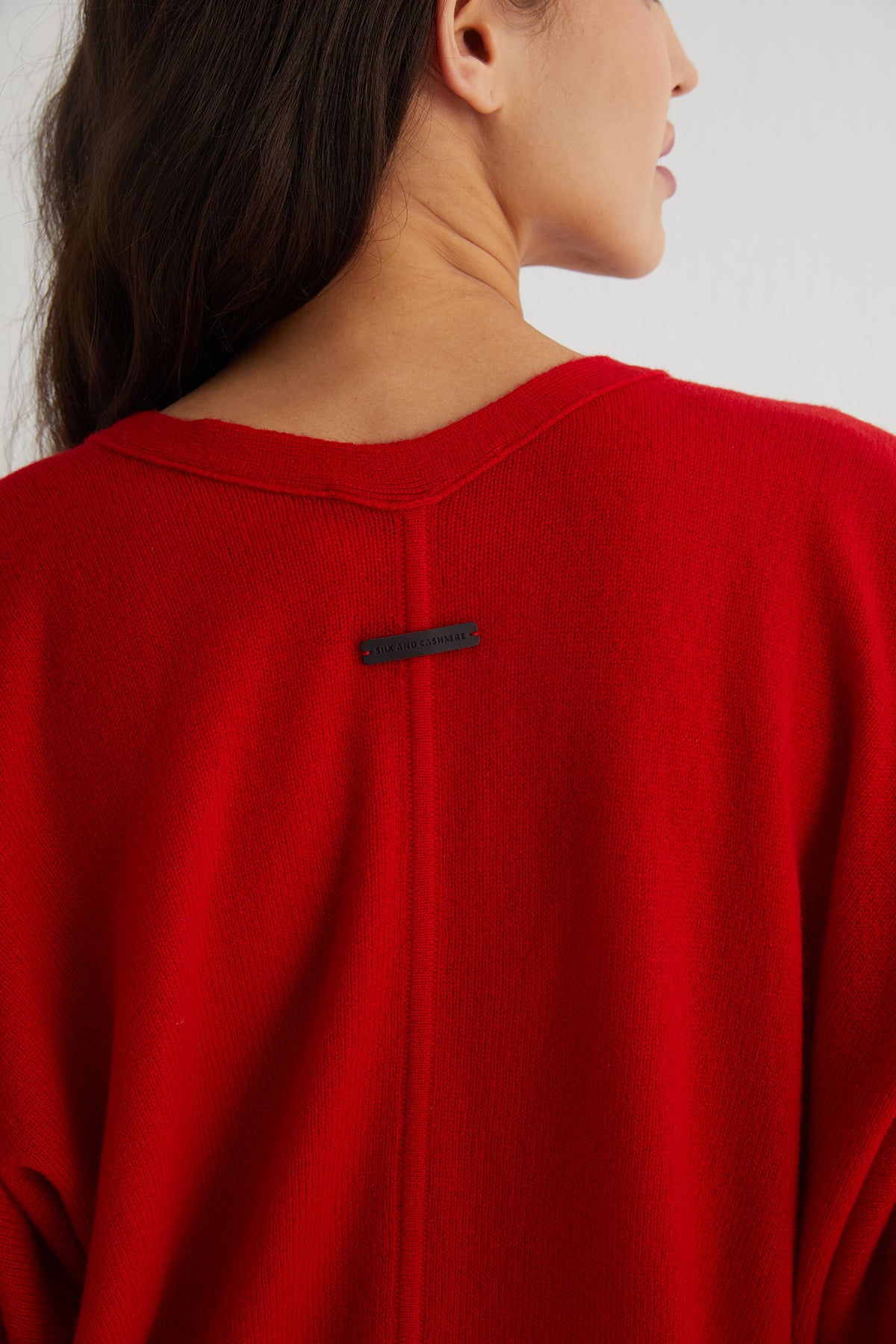 Kırmızı Kostir Saf Kaşmir Derin V Yaka Triko Hırka
