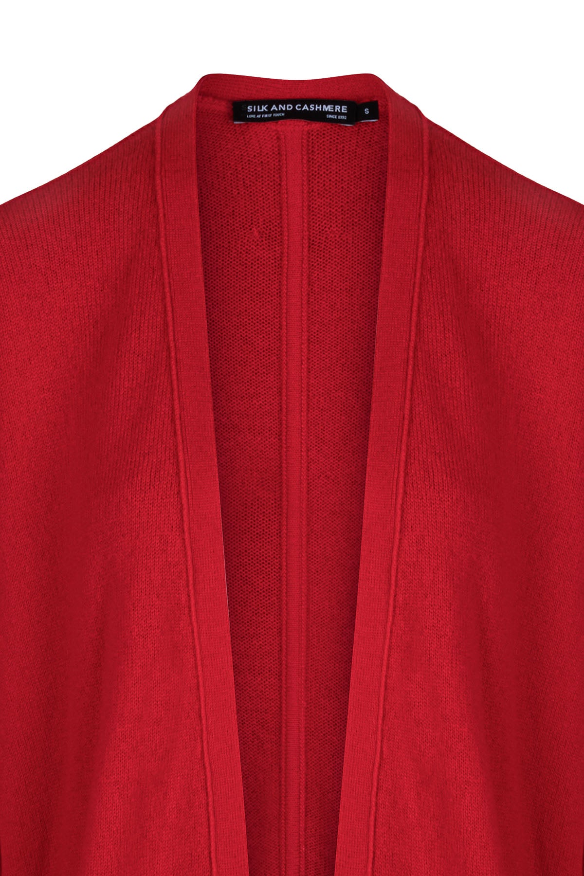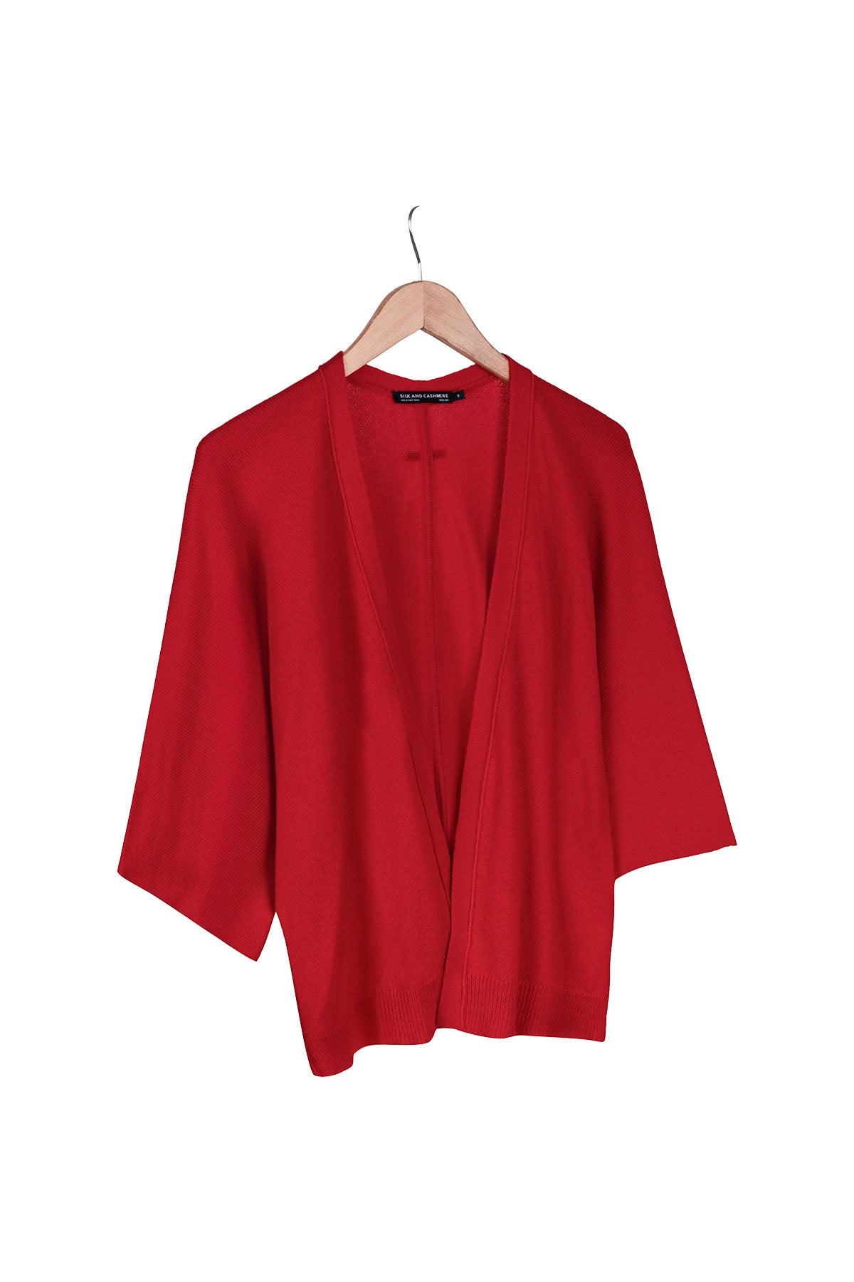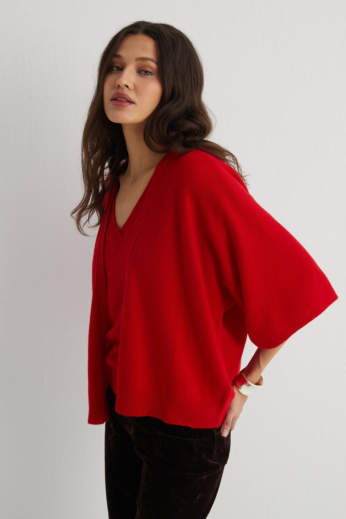 Kırmızı Kostir Saf Kaşmir Derin V Yaka Triko Hırka