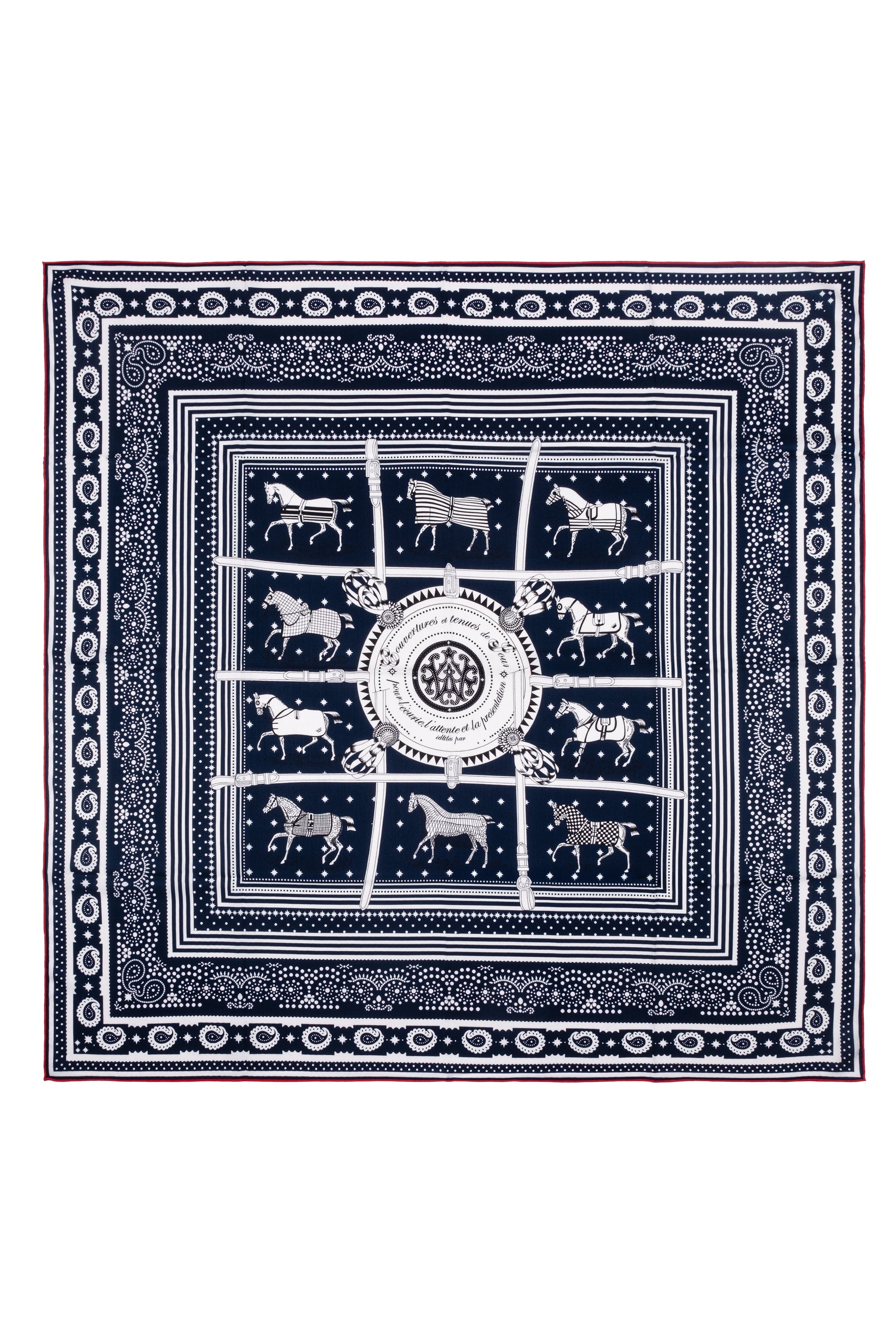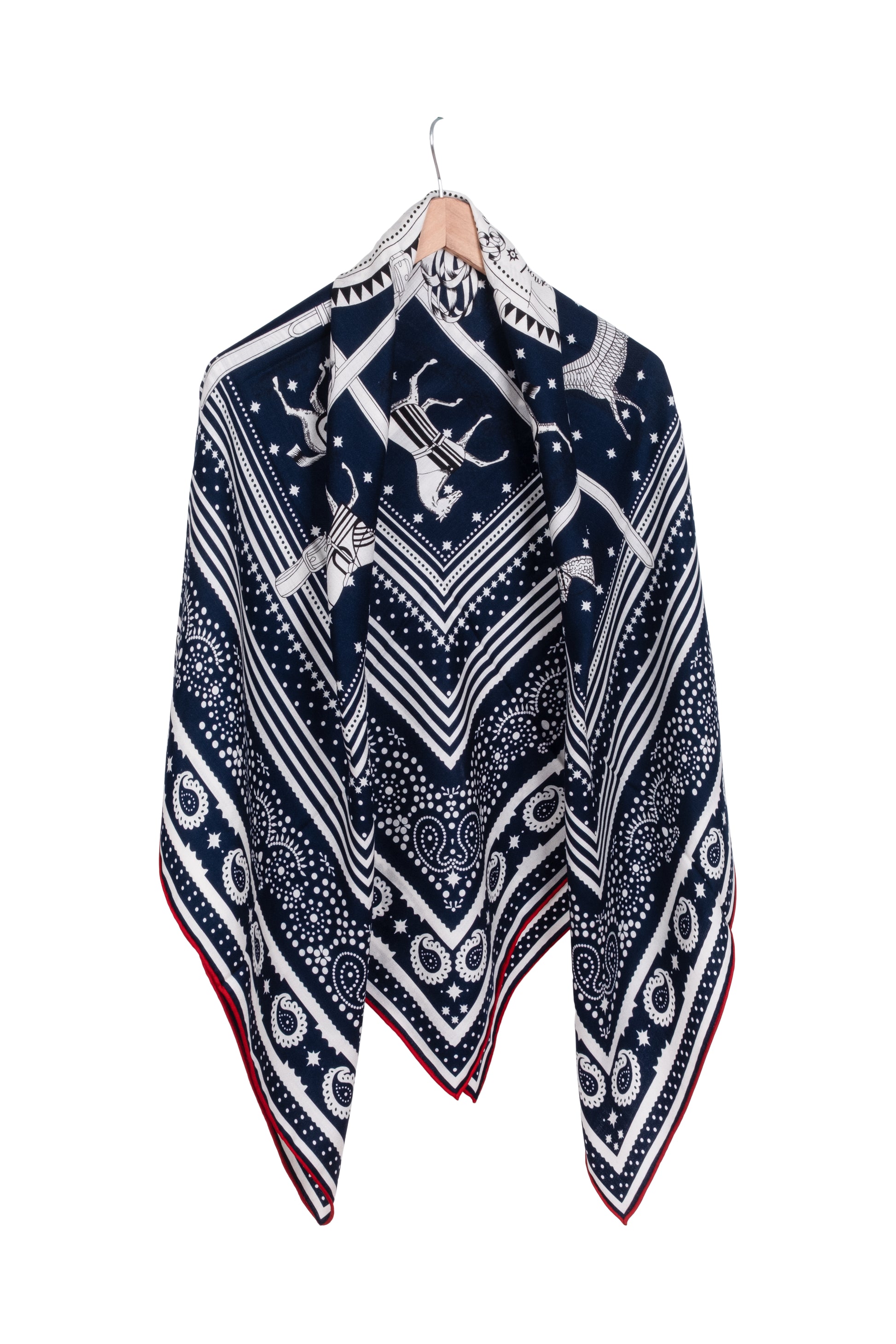 Kırmızı Lacivert Linda Saf Kaşmir Desenli Kare Eşarp 140x140 cm