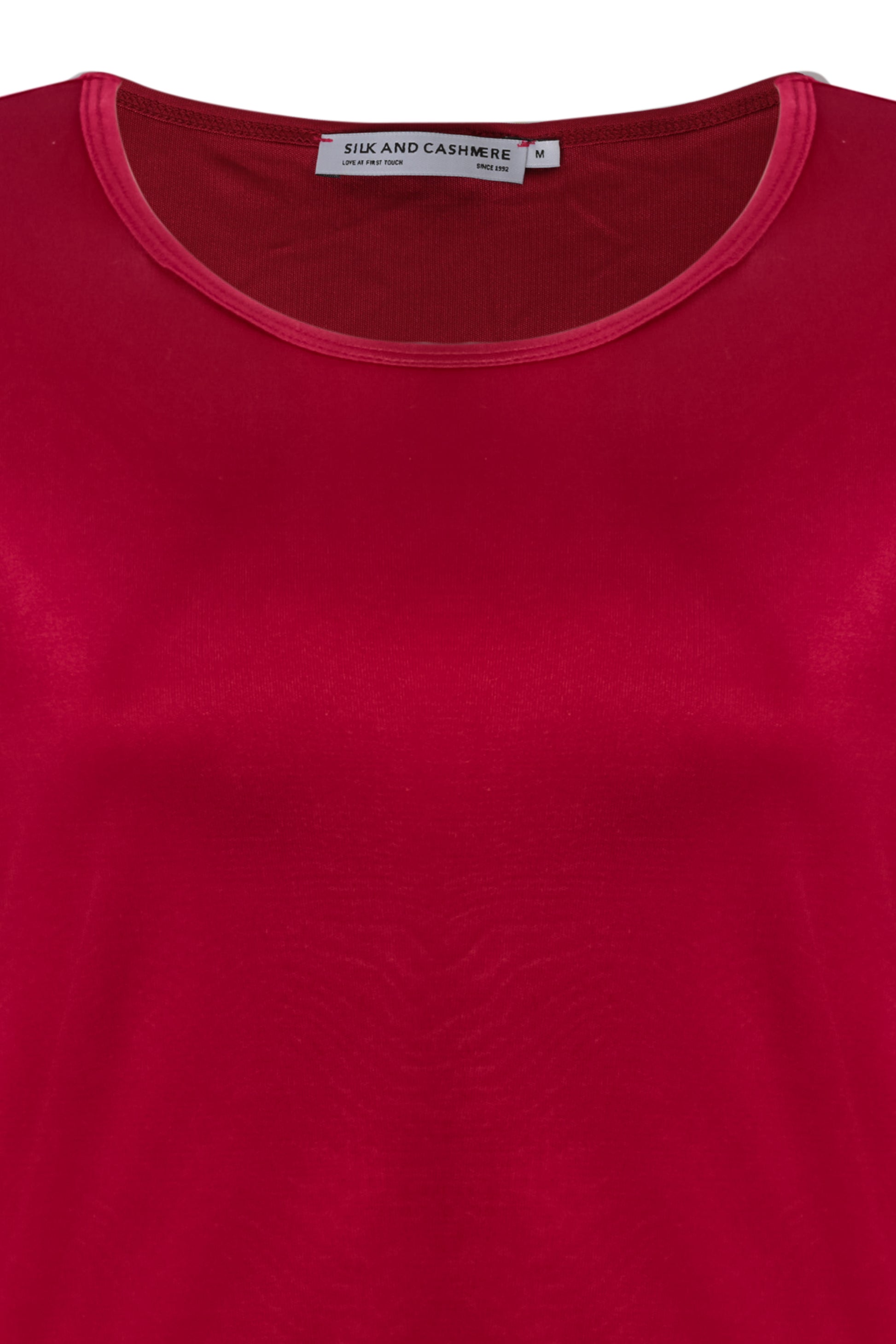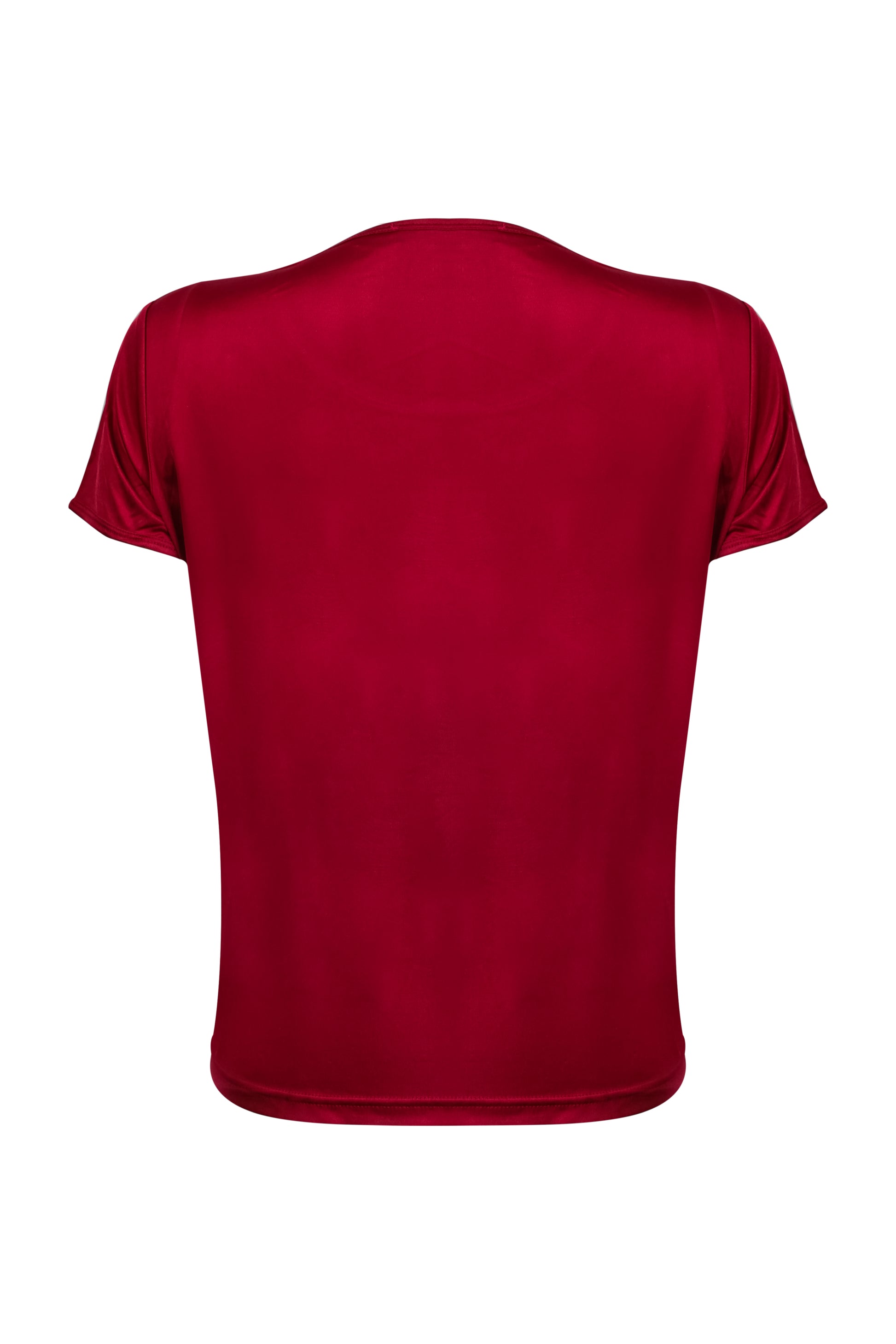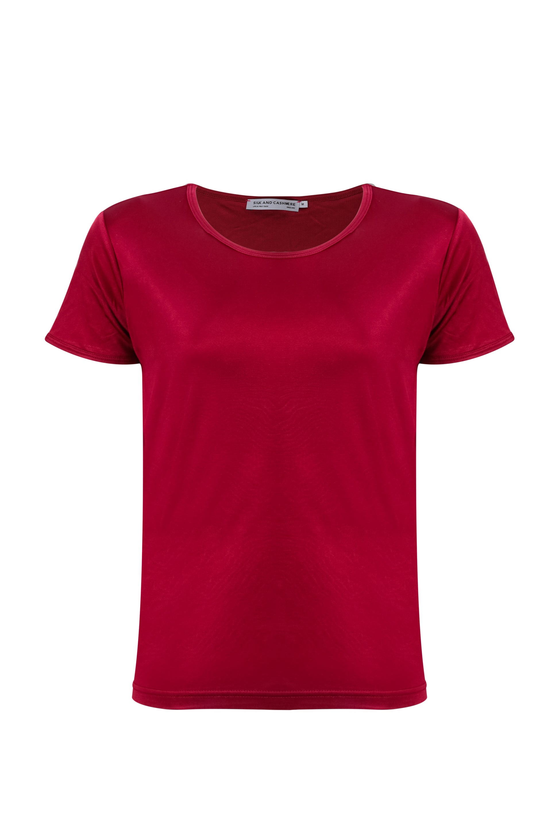 Kırmızı Marina İpekli Yuvarlak Yaka Kısa Kollu T-Shirt
