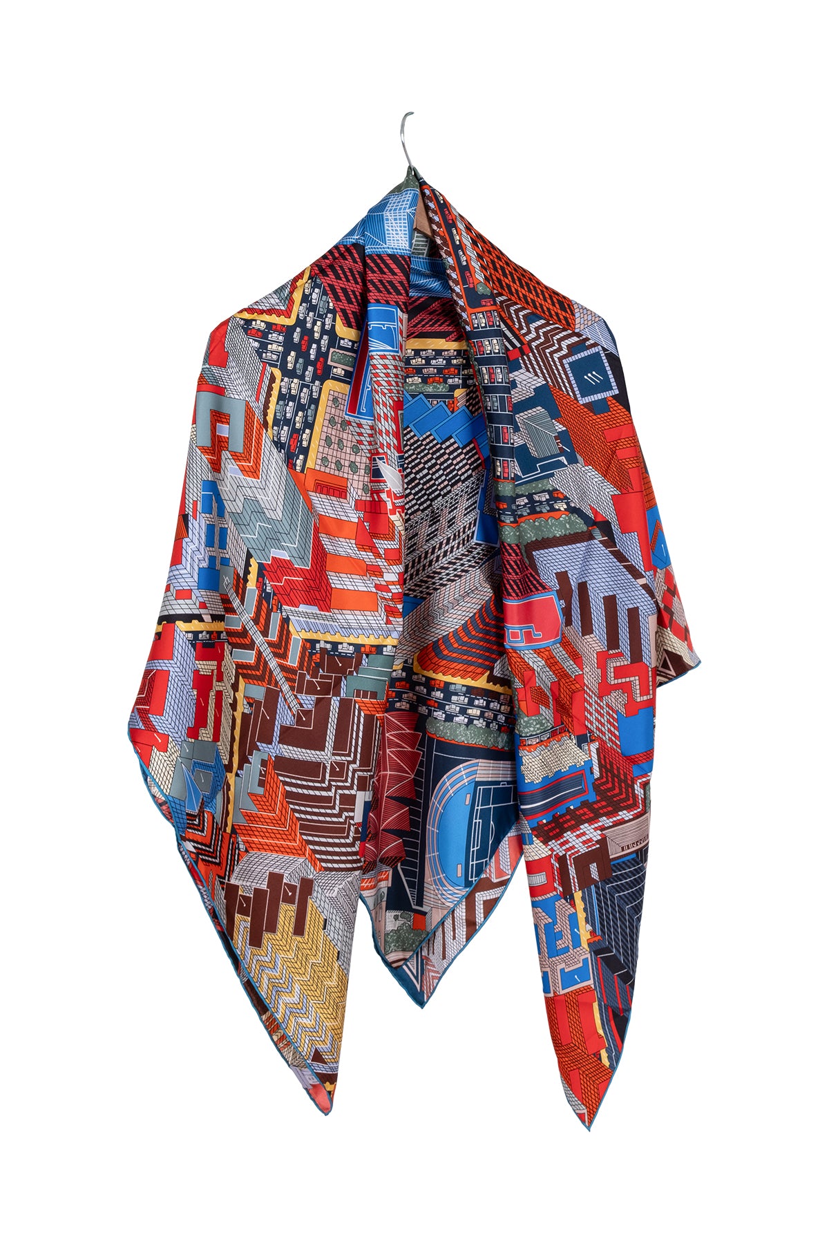 Kırmızı Mavi Lina Saf İpek Baskılı Şal 140x140cm