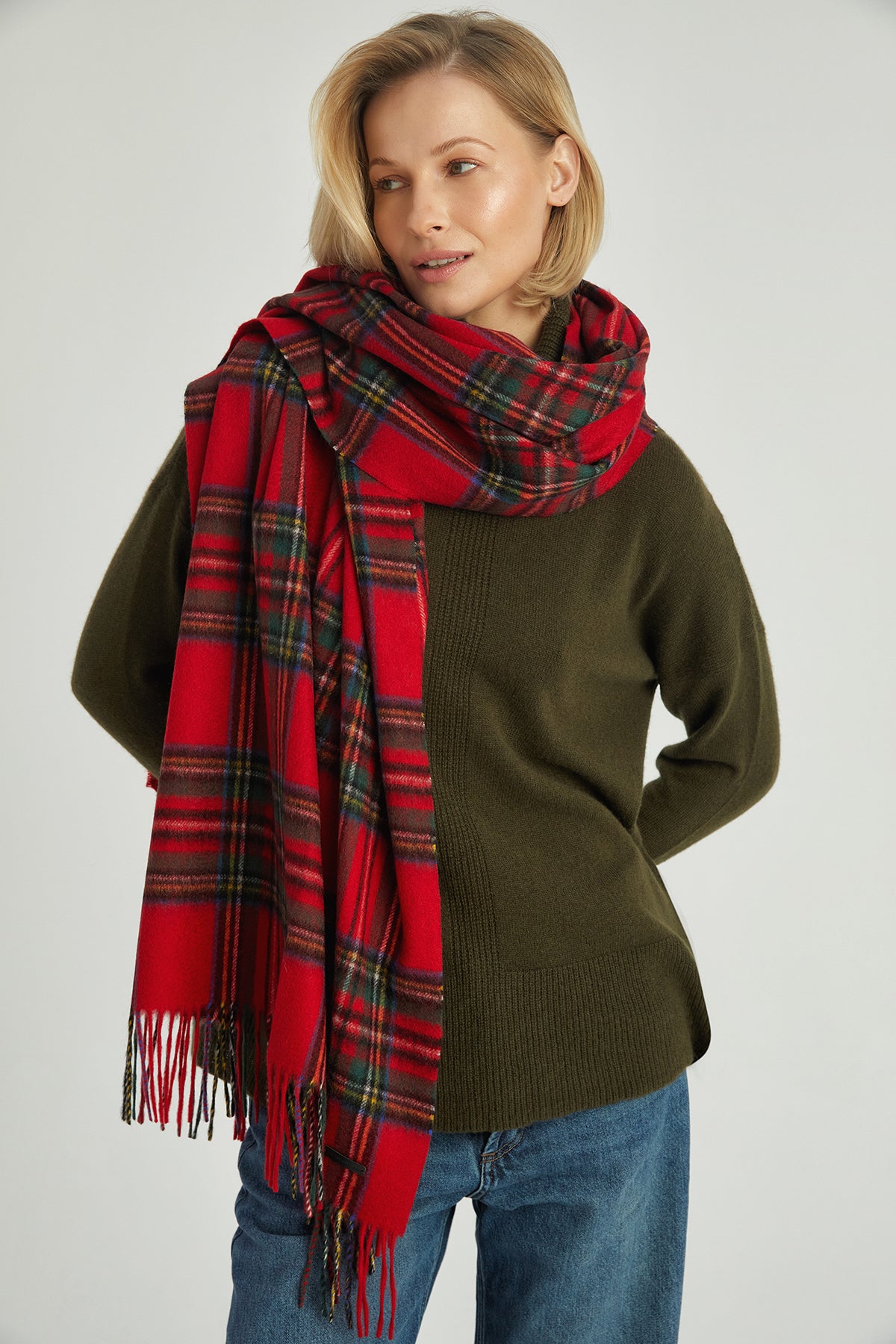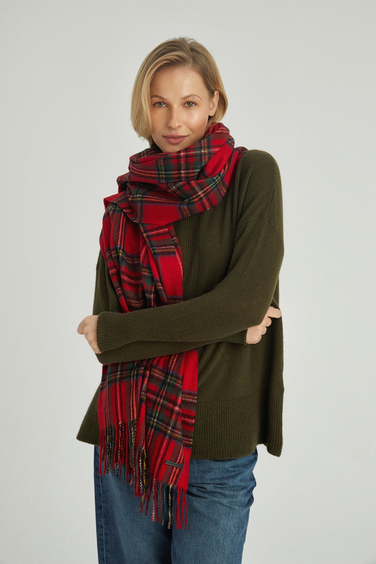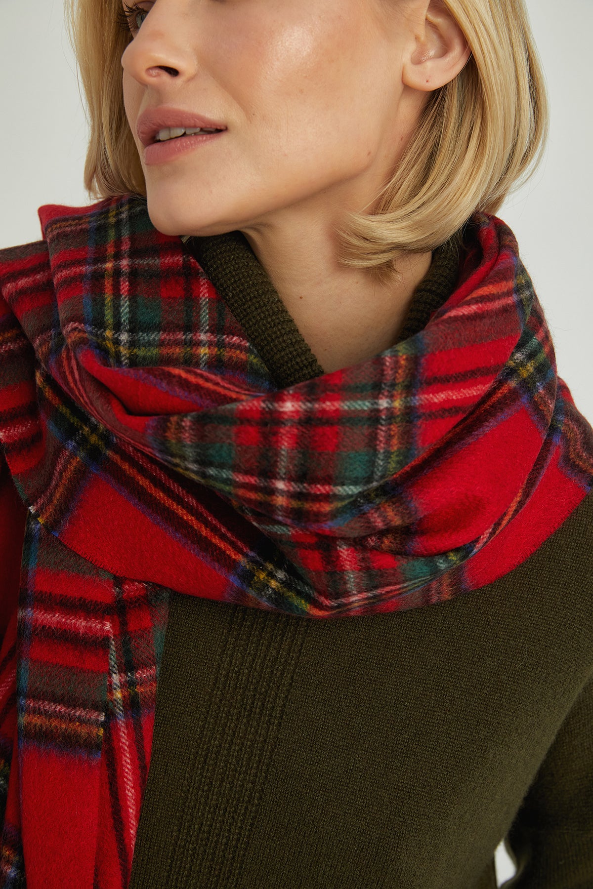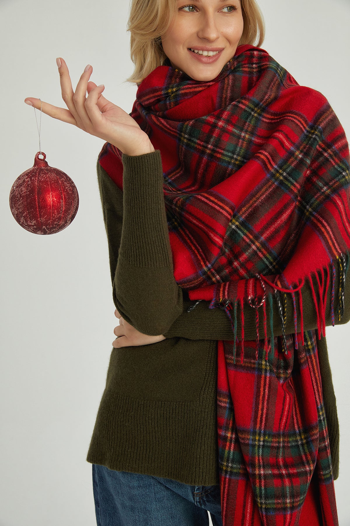 Enerjik kırmızı rengi ve geleneksel kareli deseniyle bu kaşmir şal, dikkat çekici bir stil sunar. Hafif dokusuyla hem soğuk günlerde sıcacık tutar hem de zarif bir görünüm sağlar.