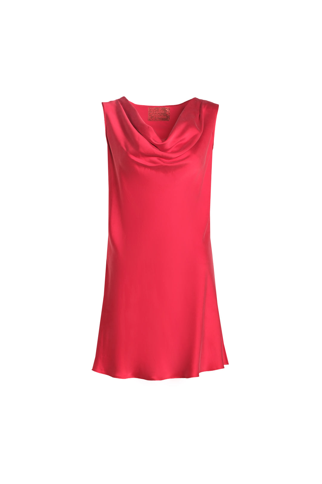 Kırmızı Saf İpek Flow Kısa Abiye Kadın Elbise