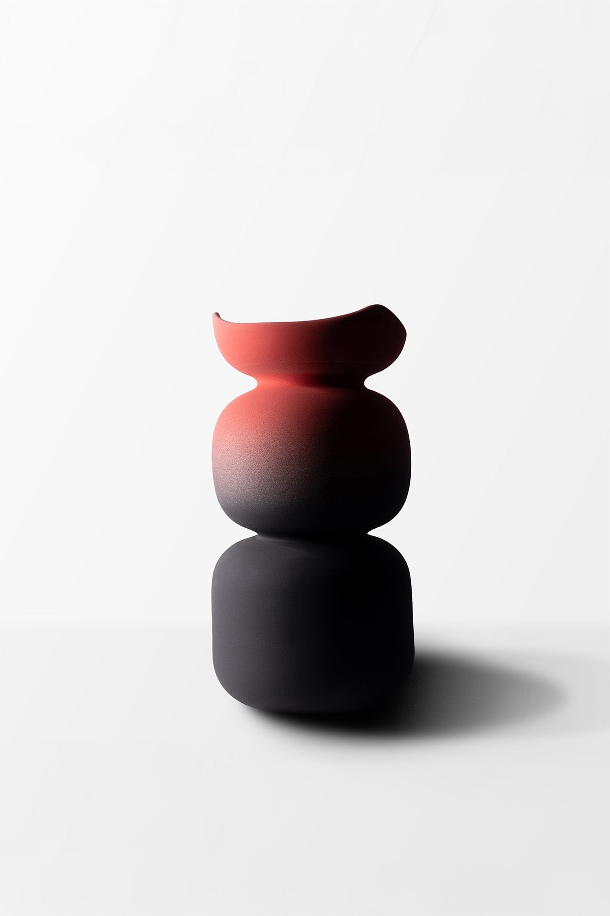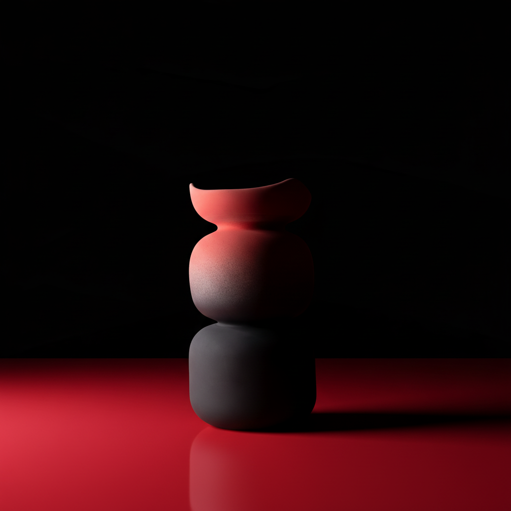 İki dalga formunun dengeli birlikteliğinden doğan bu özel vazo, renk geçişleriyle hareketi; formuyla ise uyumu temsil eder. Kırmızıdan siyaha süzülen yüzeyi, gün batımının dinginliğini çağrıştırırken, 35 cm yüksekliğiyle mekâna güçlü bir varlık kazandırır. Sessiz ama etkili bir ifade arayanlar için tasarlanmış bu parça, doğanın döngüselliğine görsel bir selam niteliğindedir.