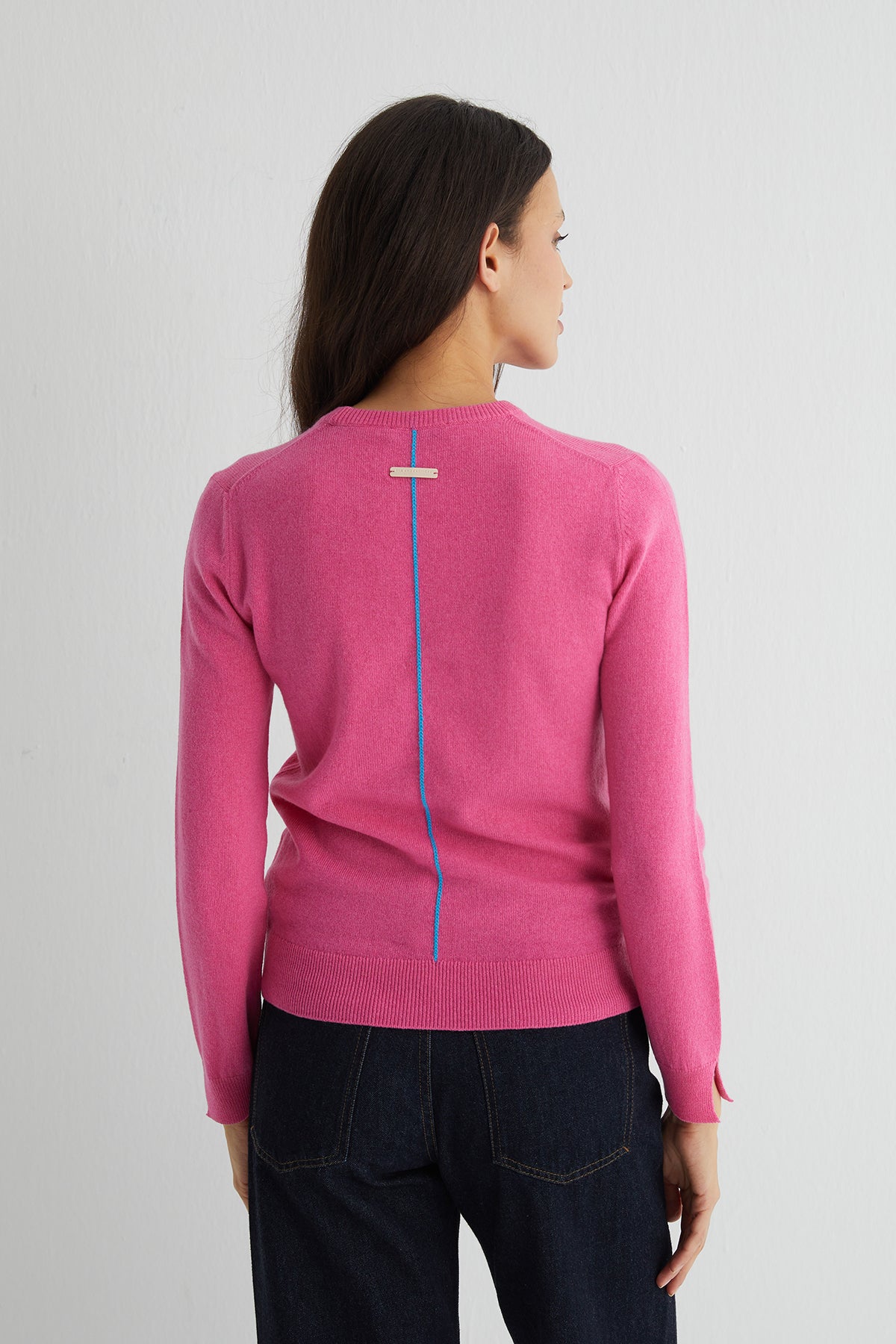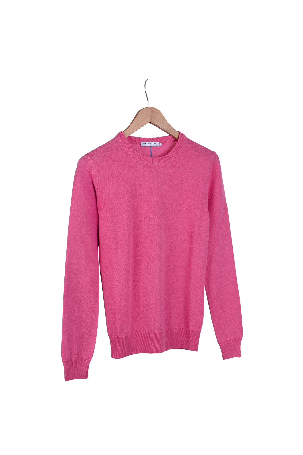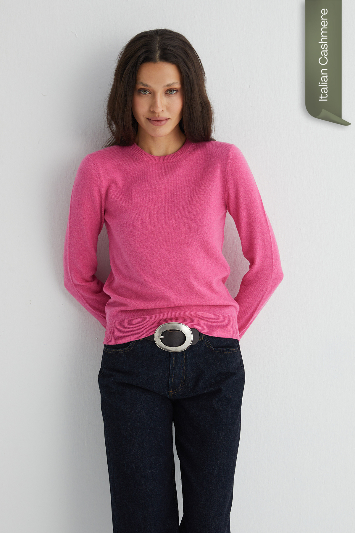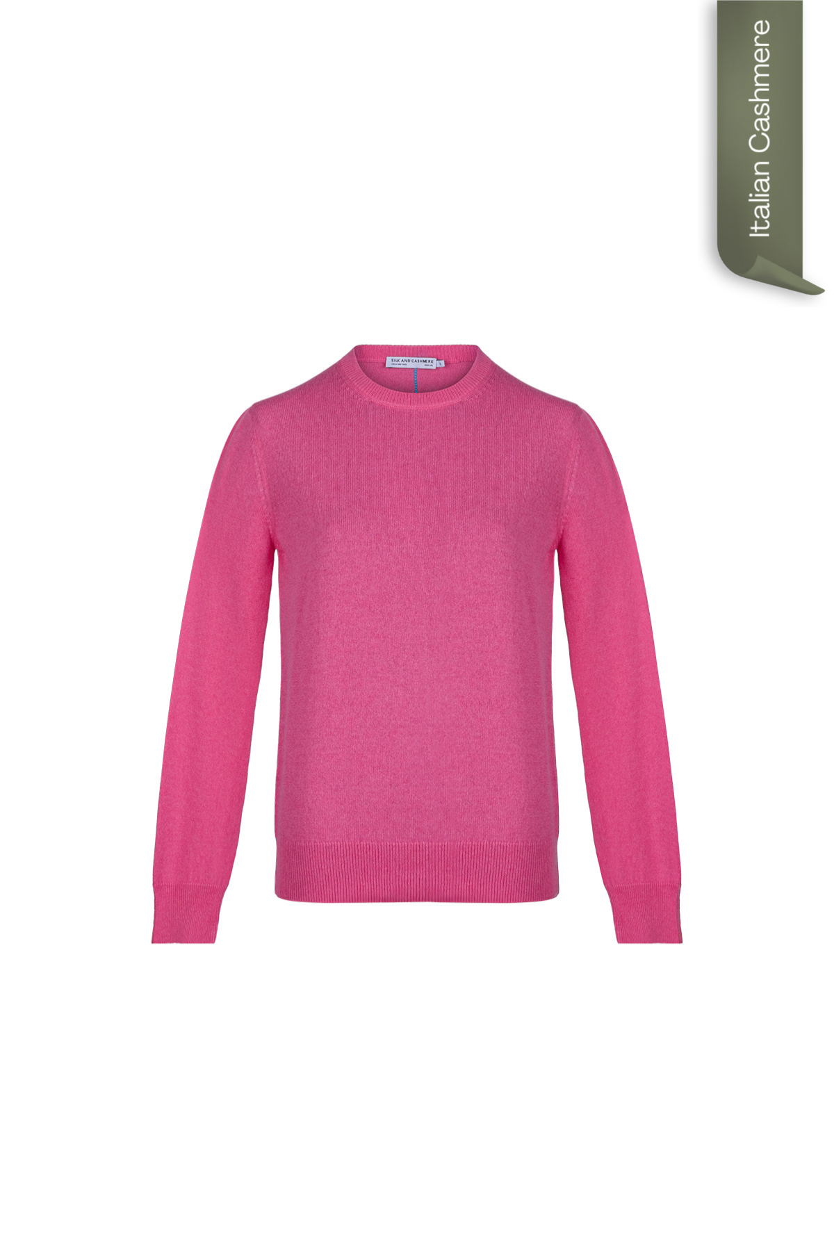 Koyu Fuşya Franca Saf Kaşmir Bisiklet Yaka Kazak