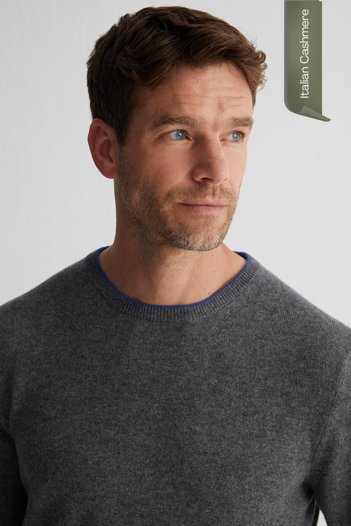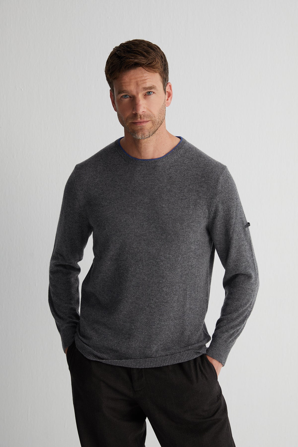 Koyu Gri Franco Saf Kaşmir Bisiklet Yaka Kazak