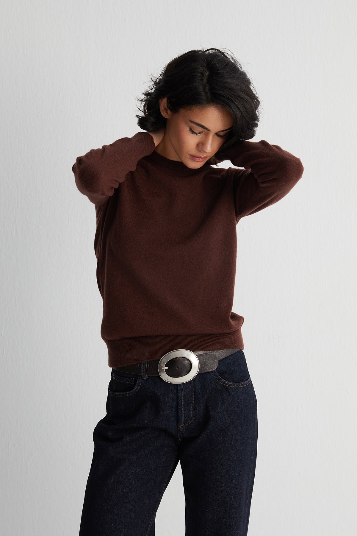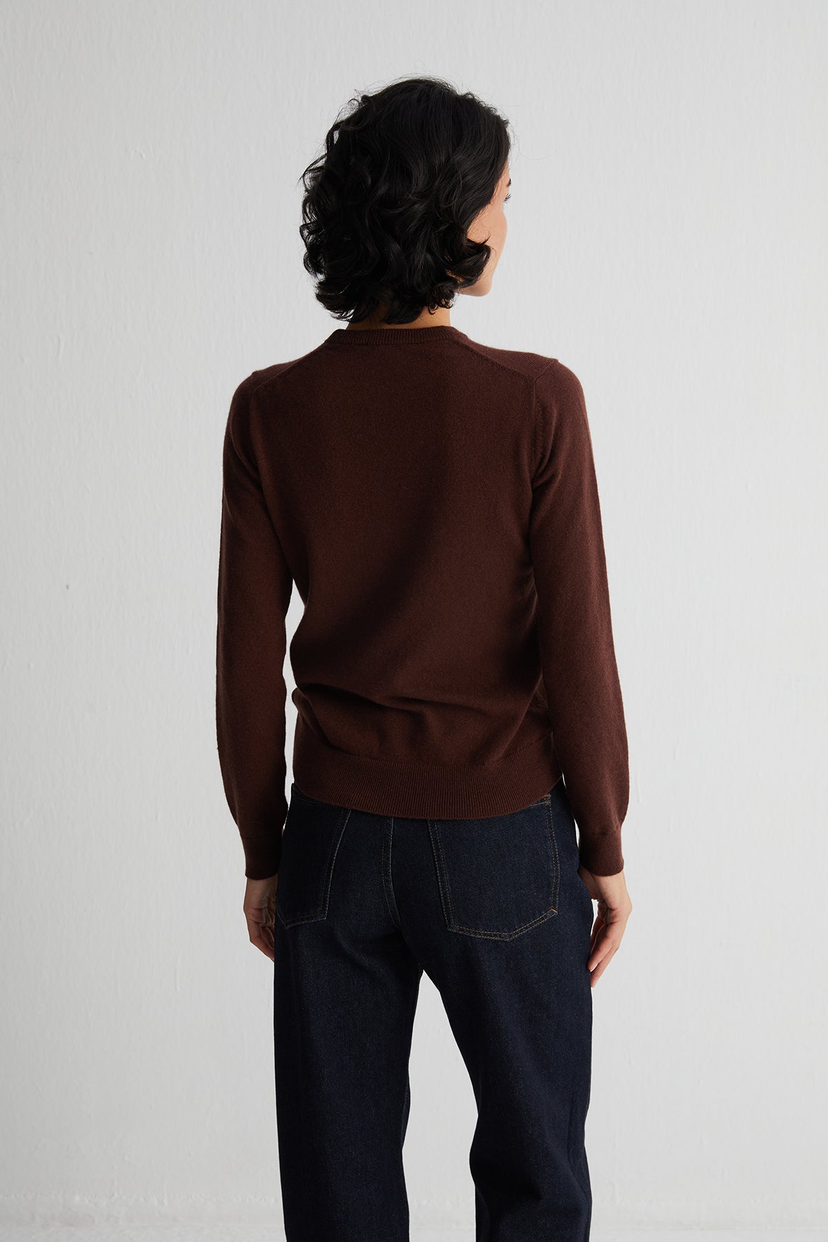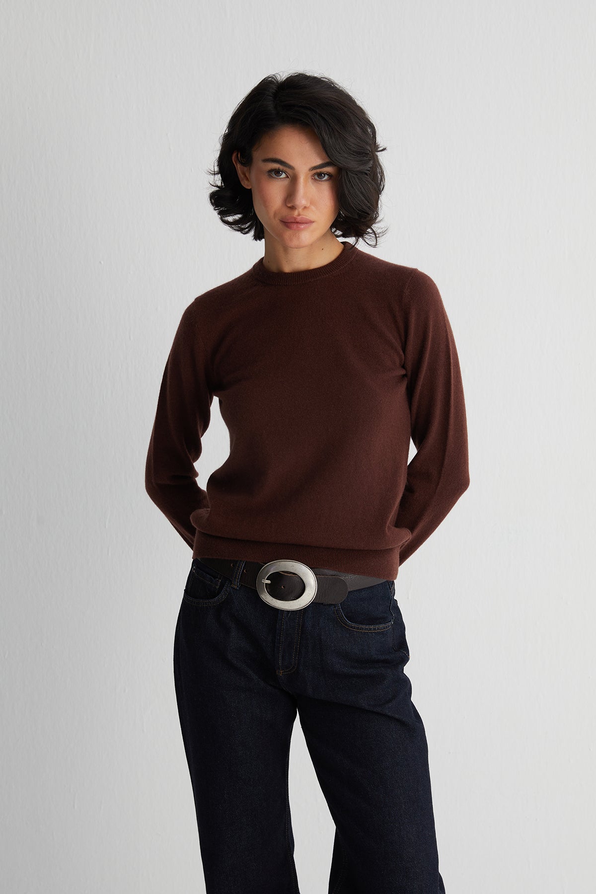 Koyu kahvenin derinliğini saf kaşmirin yumuşak dokusuyla buluşturan Lilly kazak, sade görünümünün altında dingin bir güç taşır. Sade tasarımıyla her stile kolayca uyum sağlayan bu parça, gardırobunuzda sıkça tercih edeceğiniz bir yer edinecek.