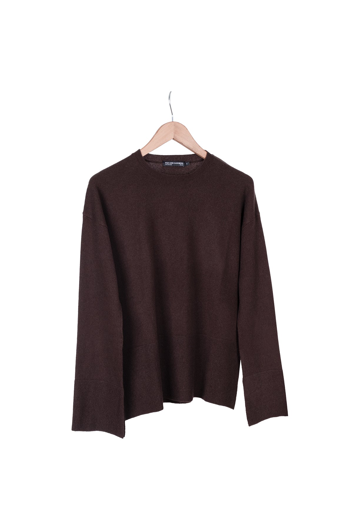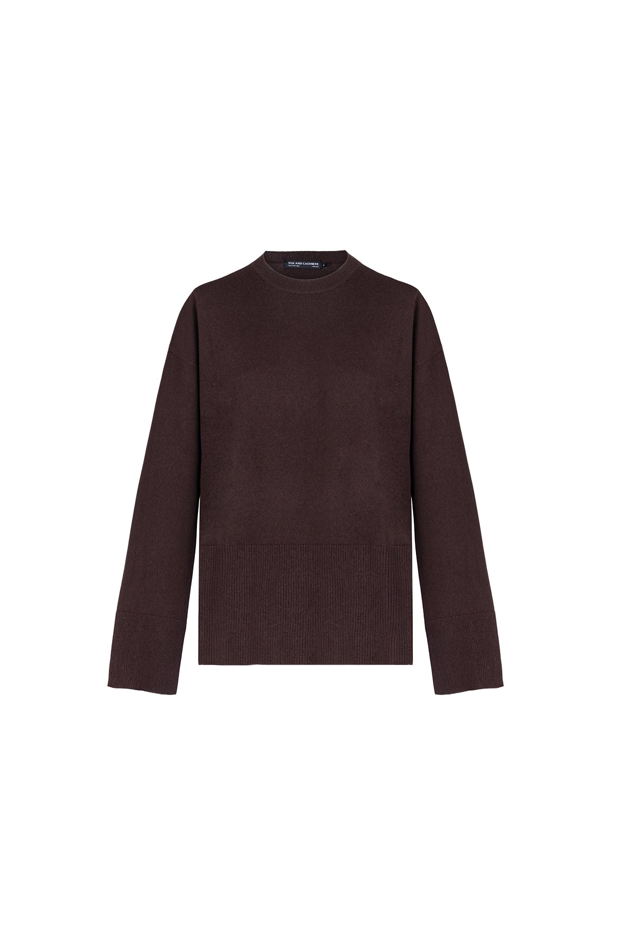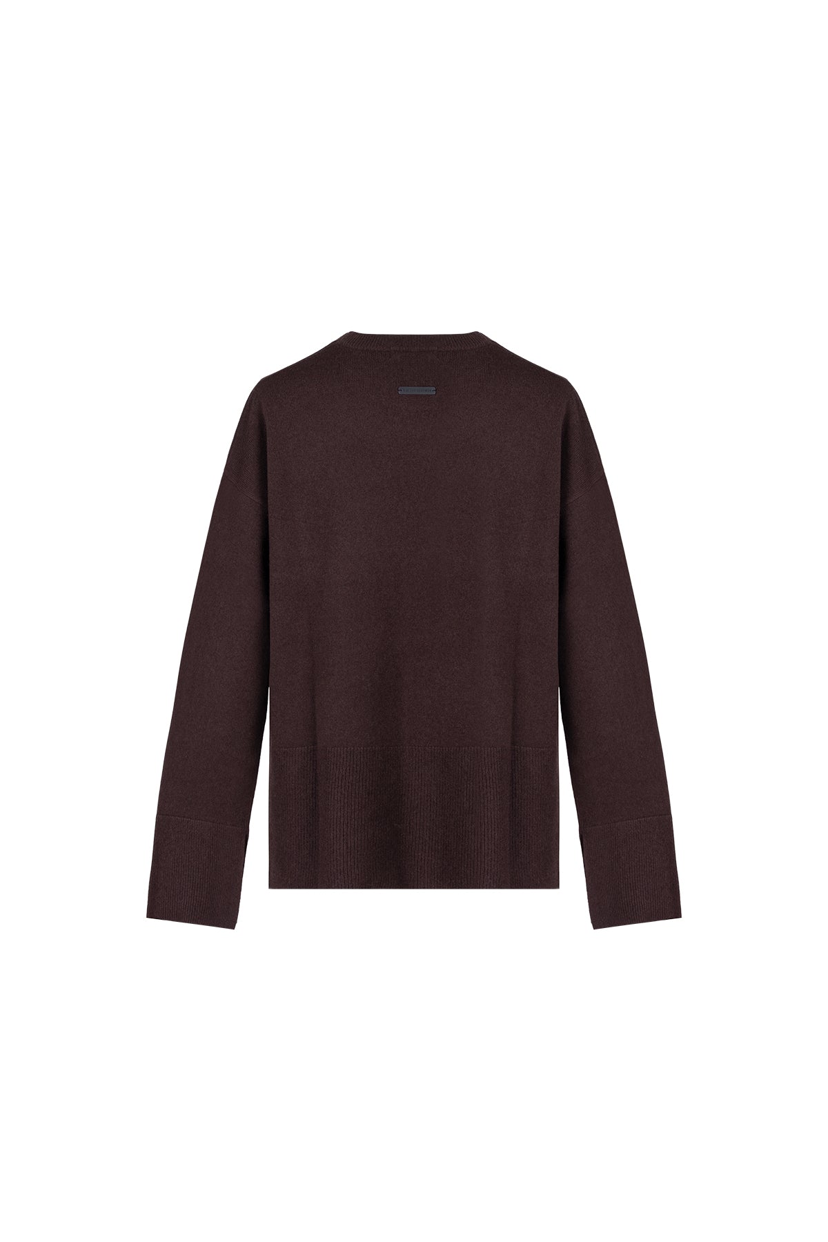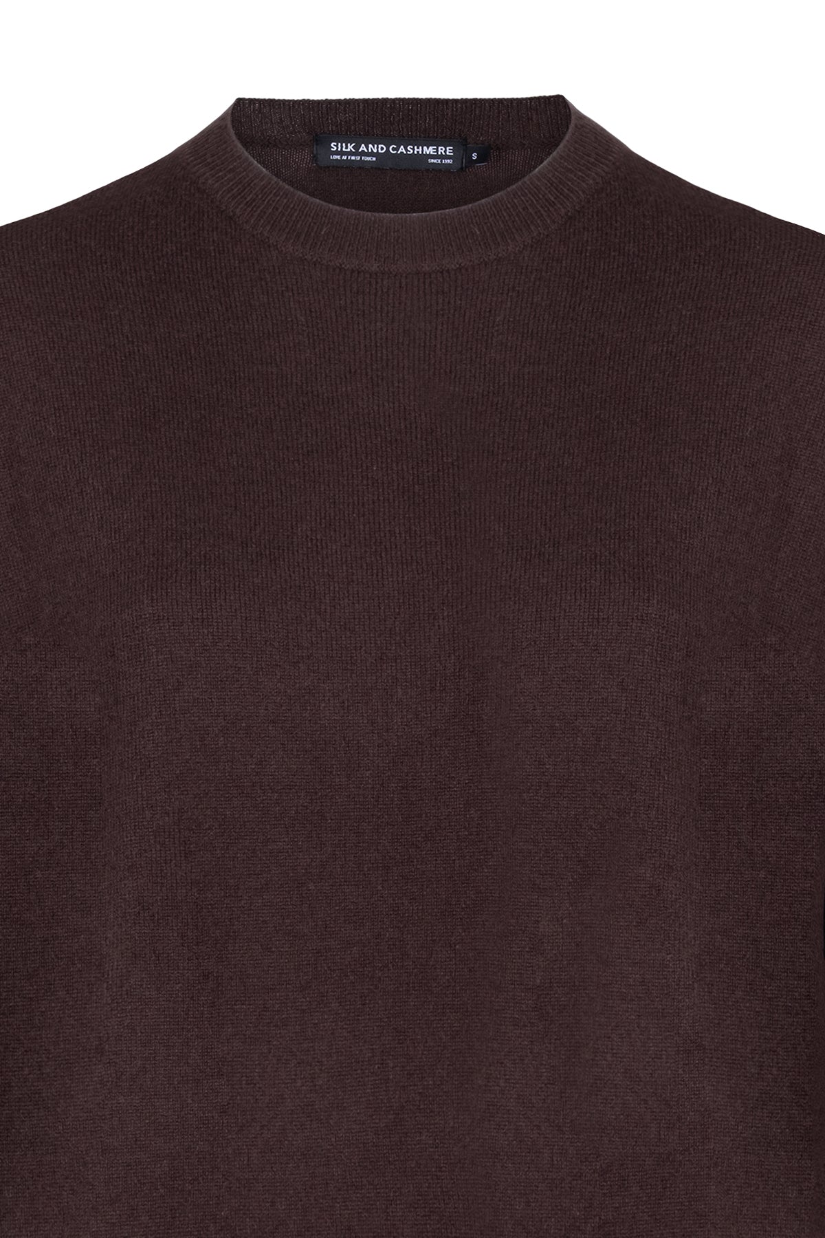 Koyu Kahve Maggie Saf Kaşmir Yuvarlak Yaka Kazak