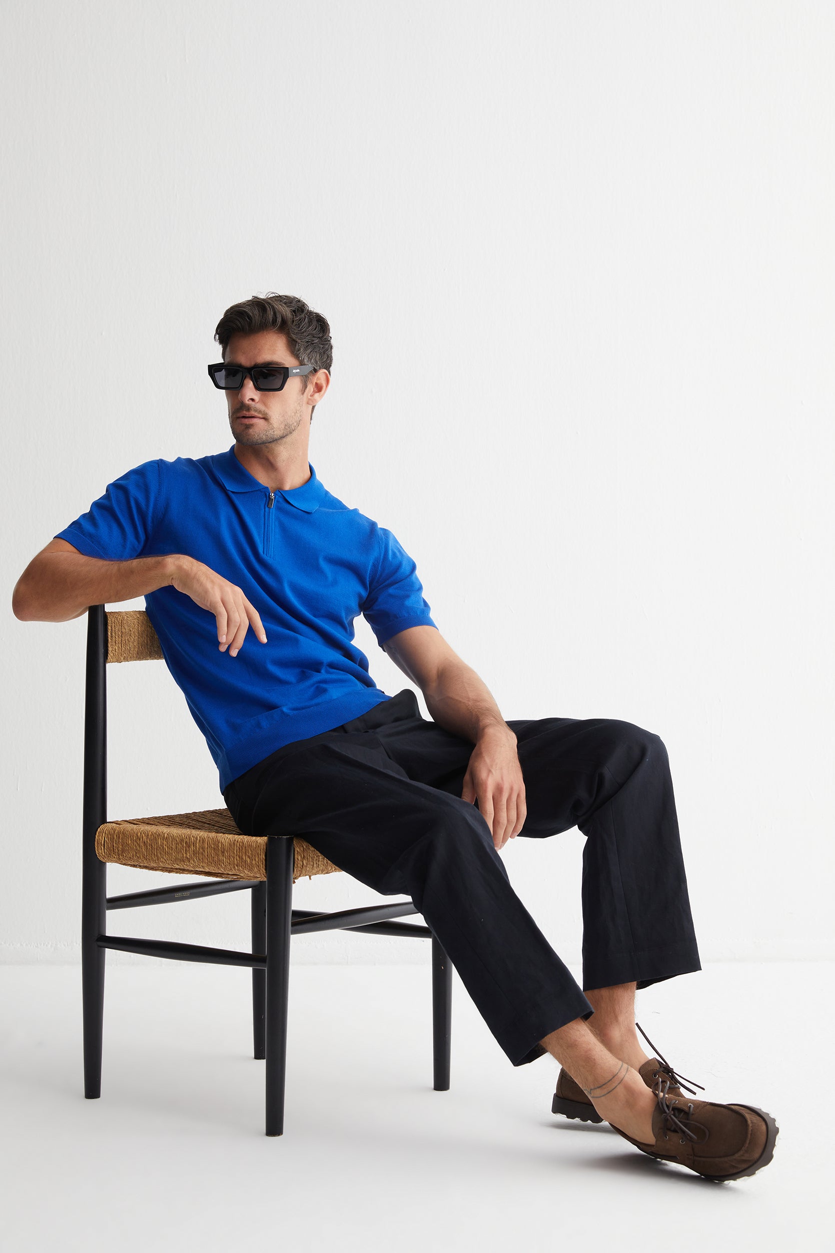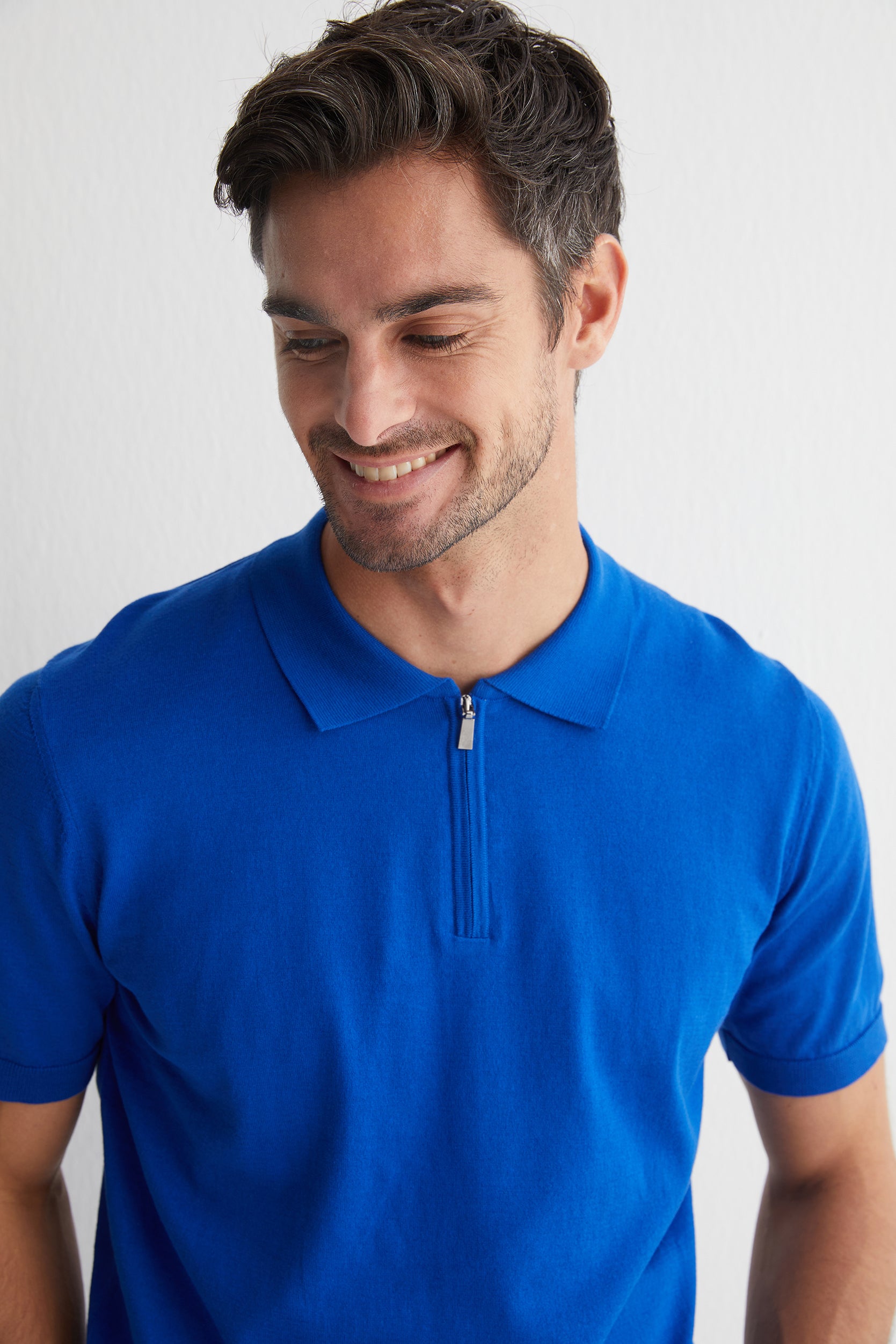 Canlı koyu mavi tonuyla dikkat çeken Kevin kısa kollu triko polo, hafif yapısı ve yumuşak dokusuyla yaz sezonuna ferah bir yaklaşım sunuyor. Fermuarlı yakasıyla klasik görünümüne modern bir dokunuş kazandıran bu model, konforlu kesimiyle günün her anında eşlik etmeye hazır. Göz yormayan yapısıyla sade bir duruşu benimsiyor.