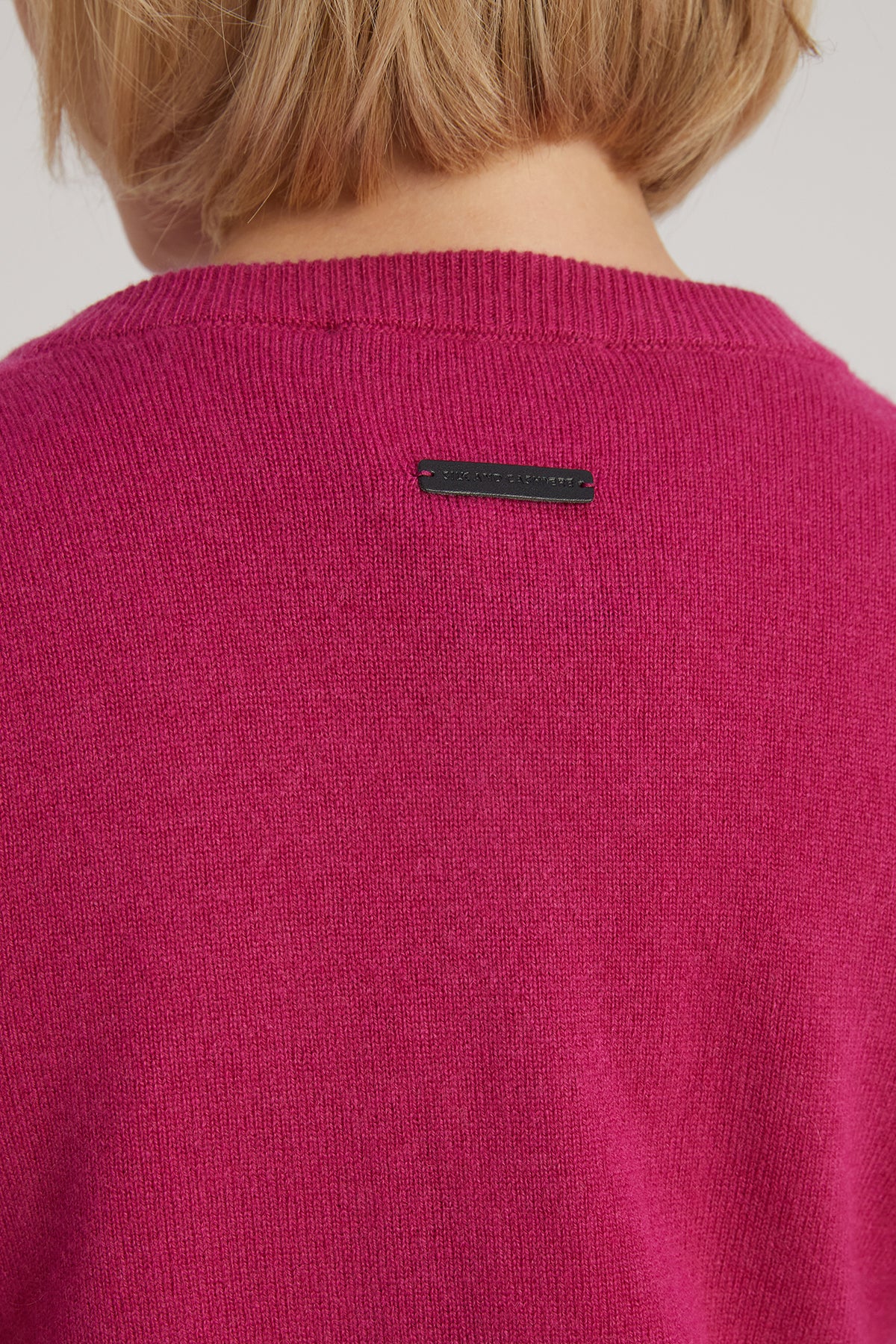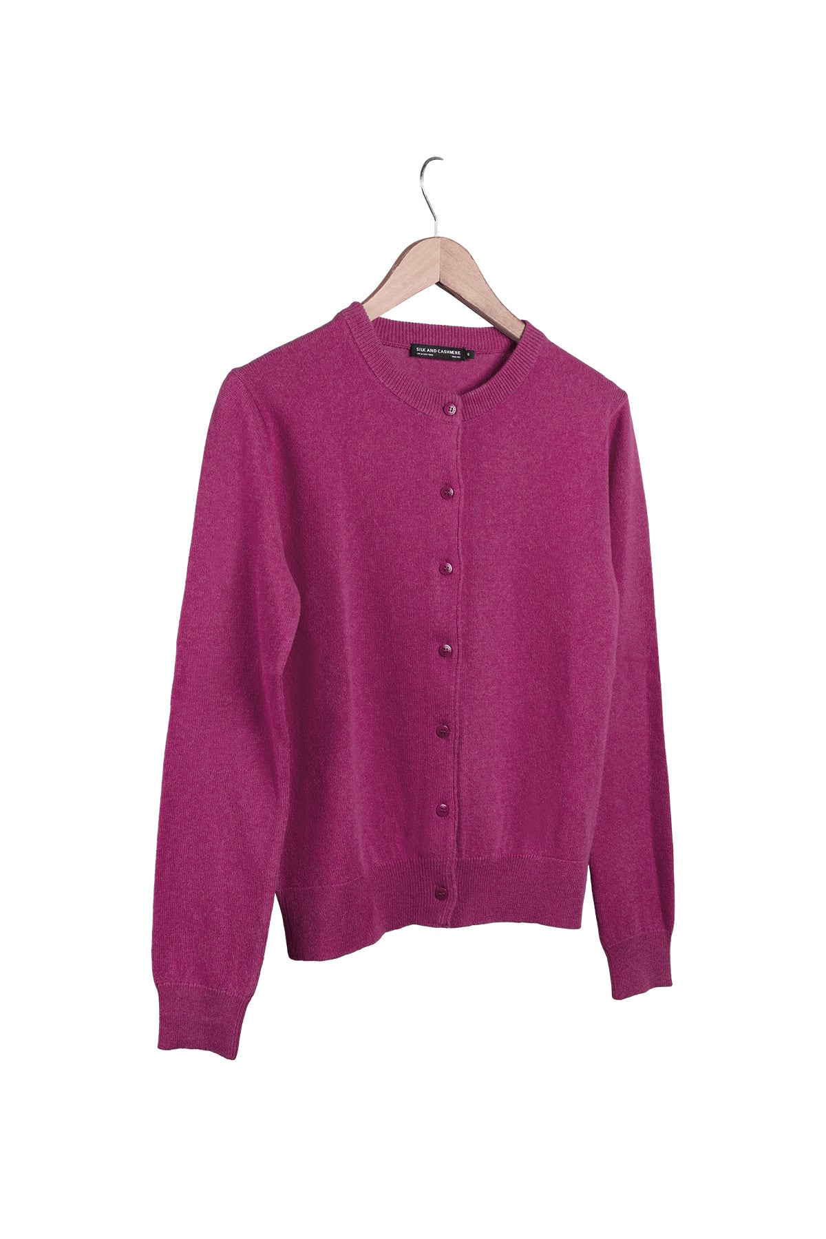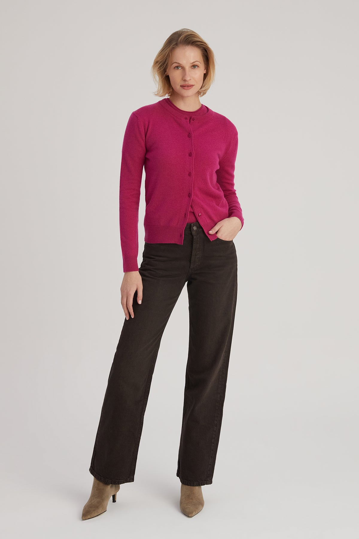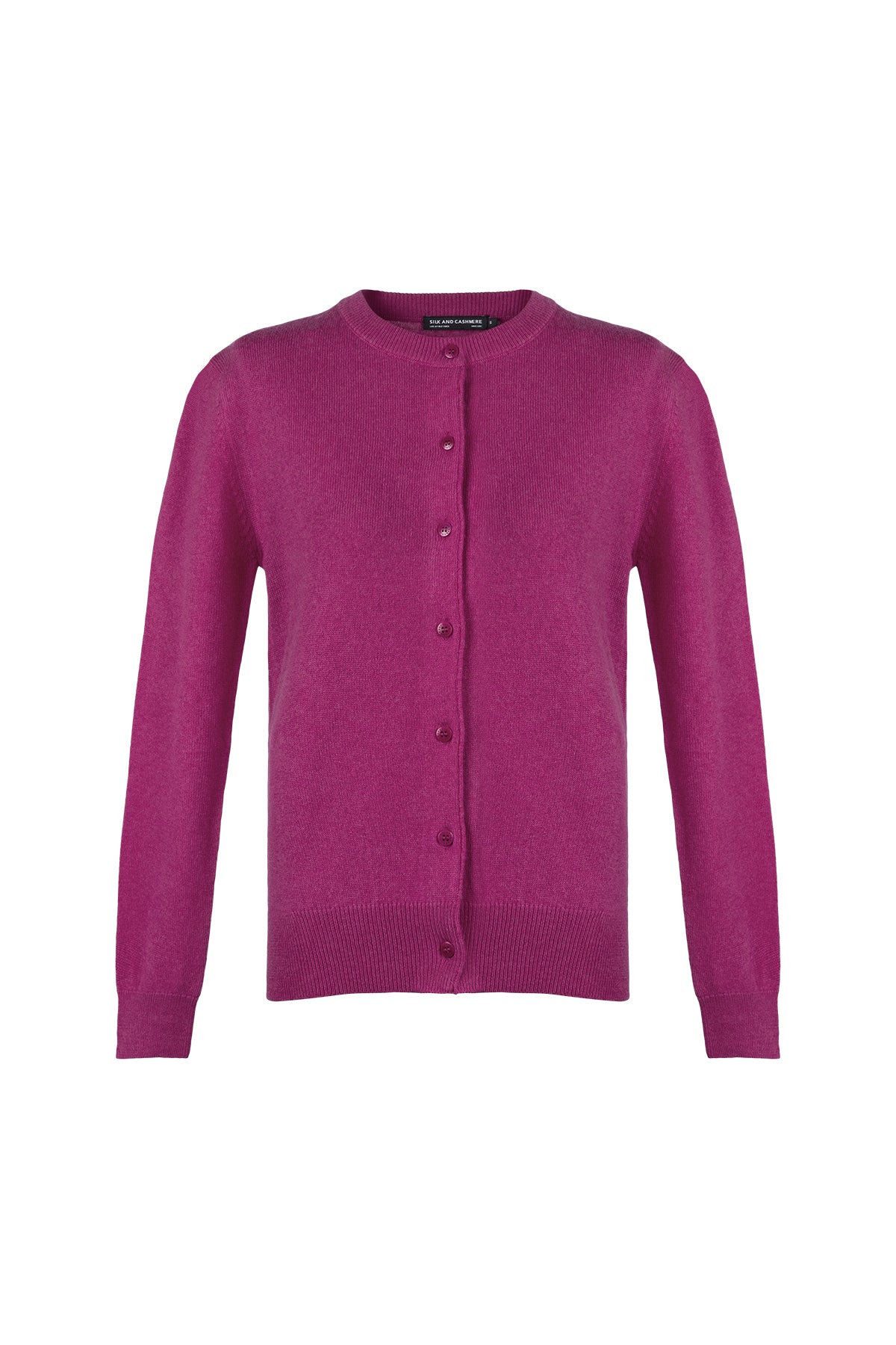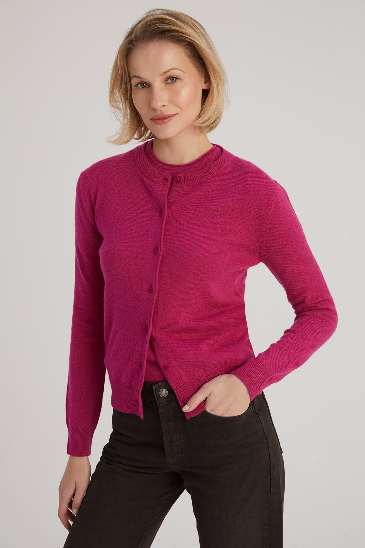Koyu Pembe Lilly Saf Kaşmir Bisiklet Yaka Hırka