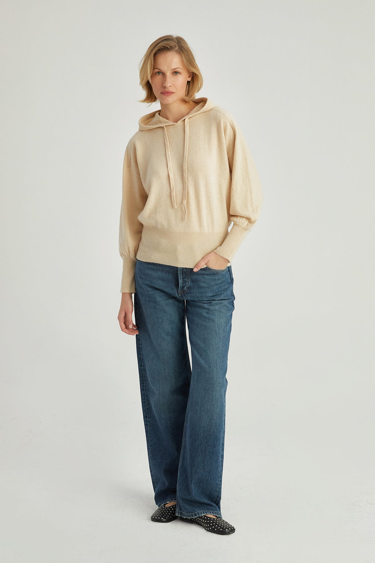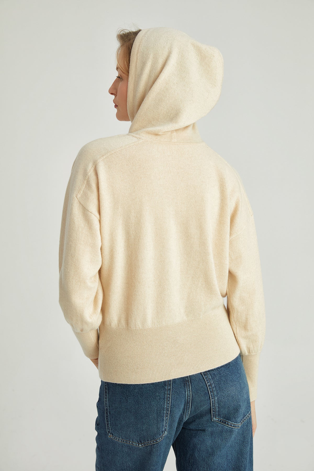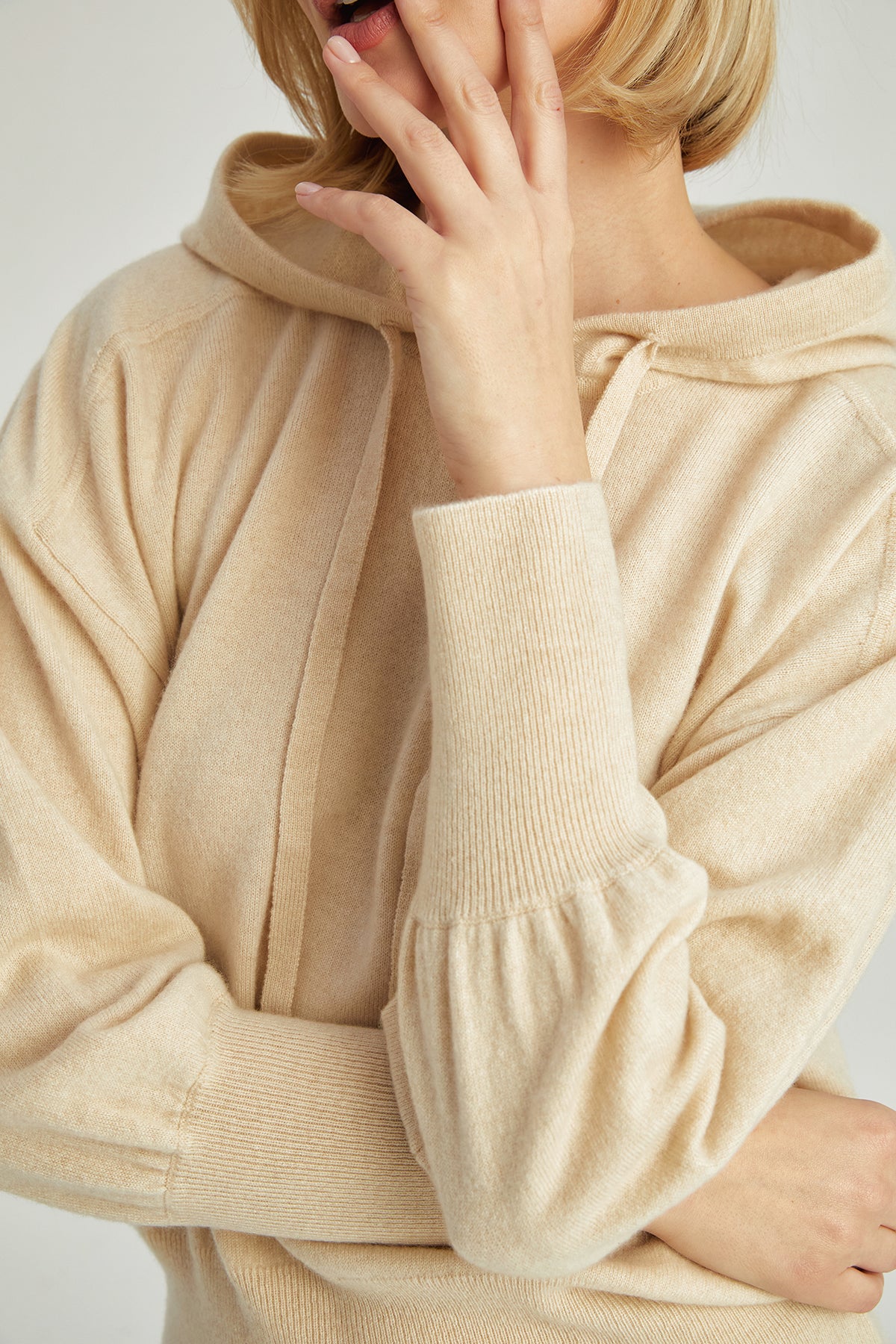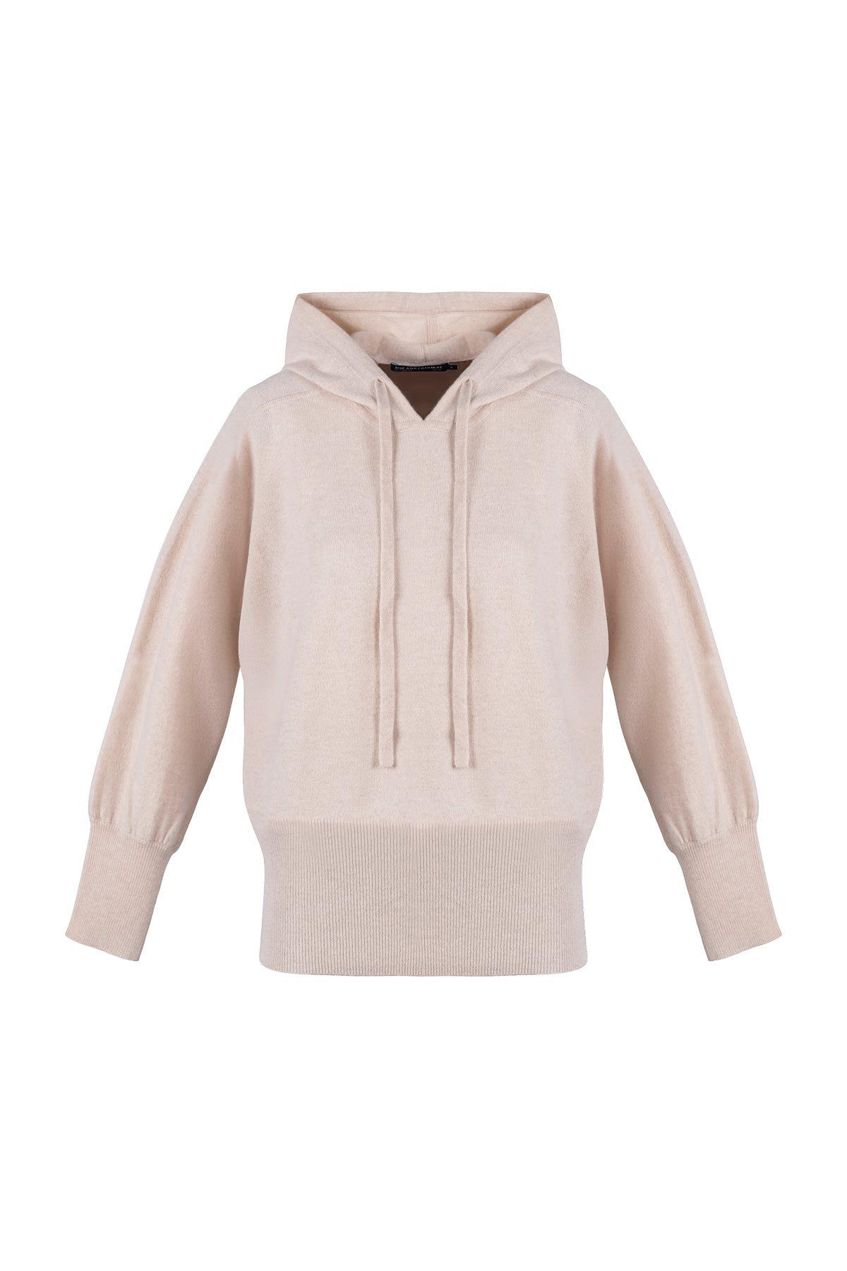 Kum Beji Agata Saf Kaşmir Kapüşonlu Kazak