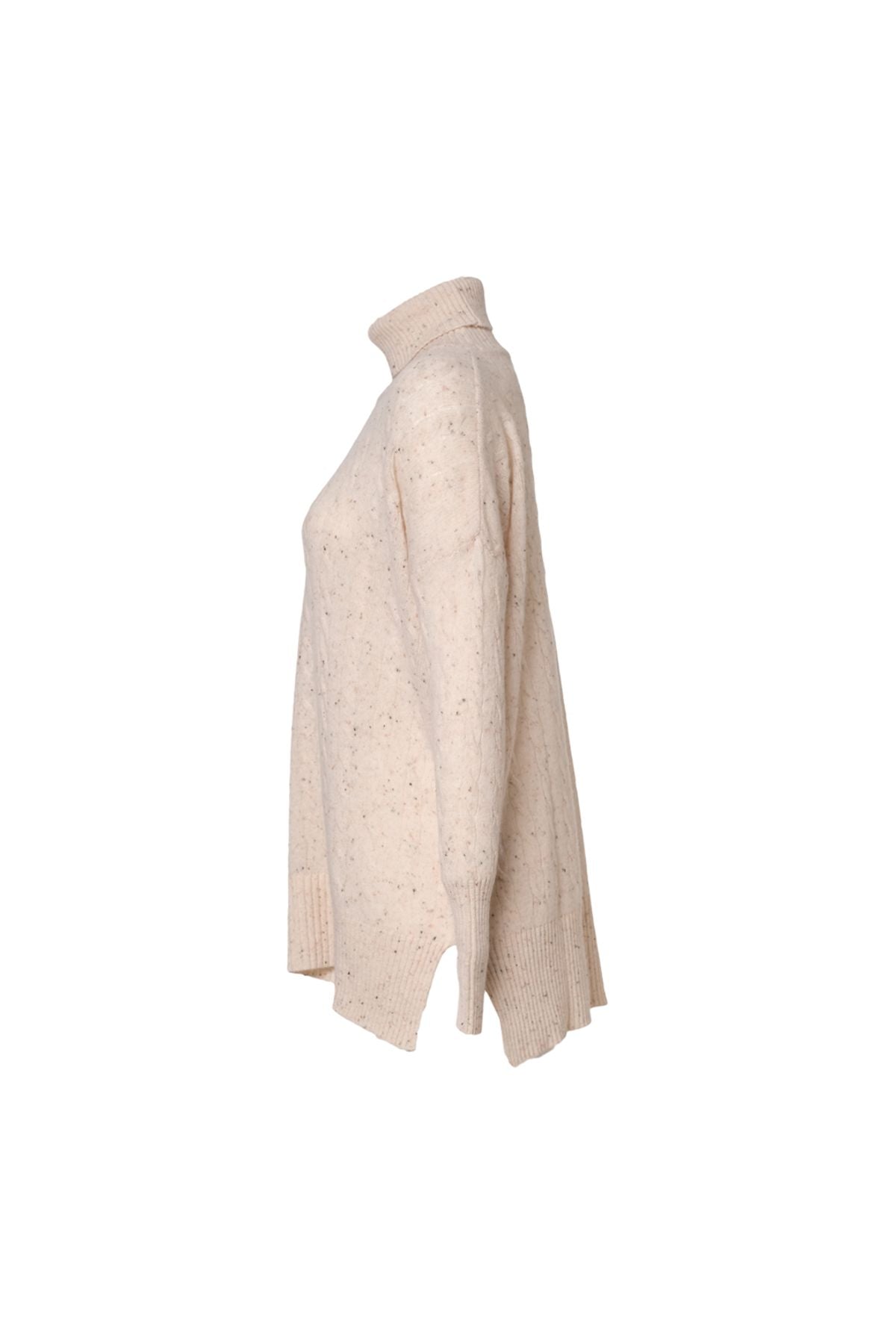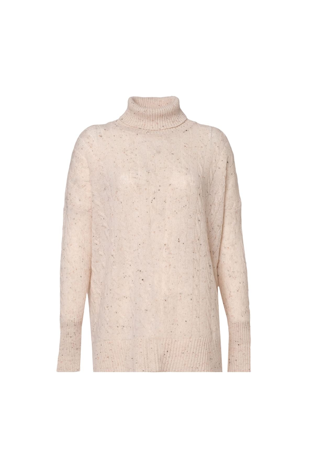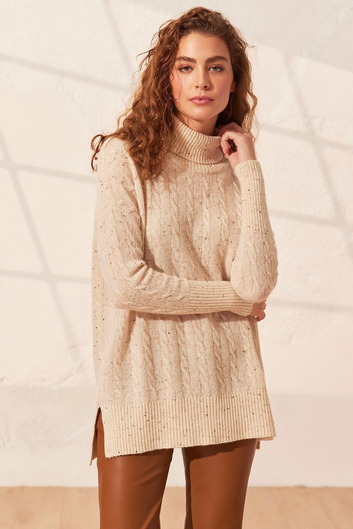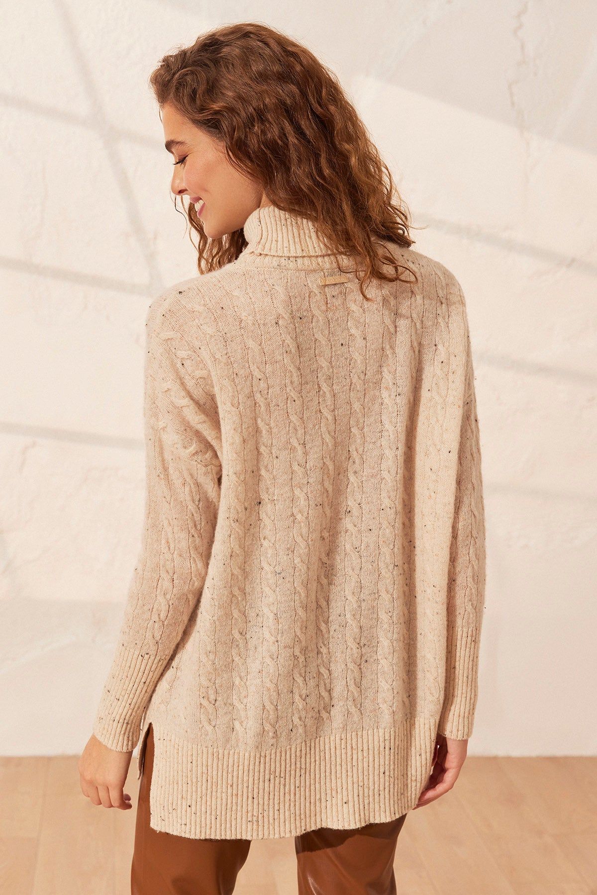 Kum Beji Amelia Avustralya Yünü Kaşmir Saç Örgülü Balıkçı Yaka T Kollu Kadın Tunik Kazak