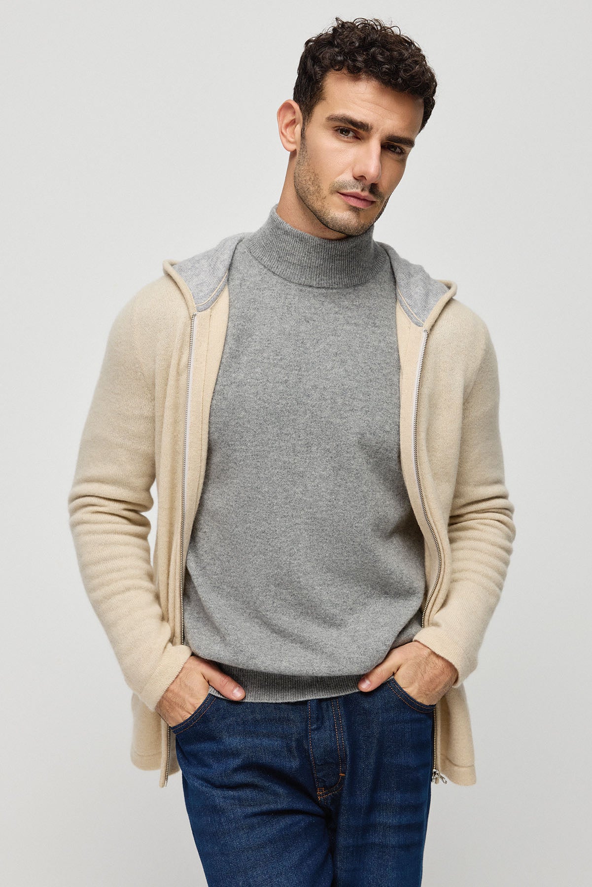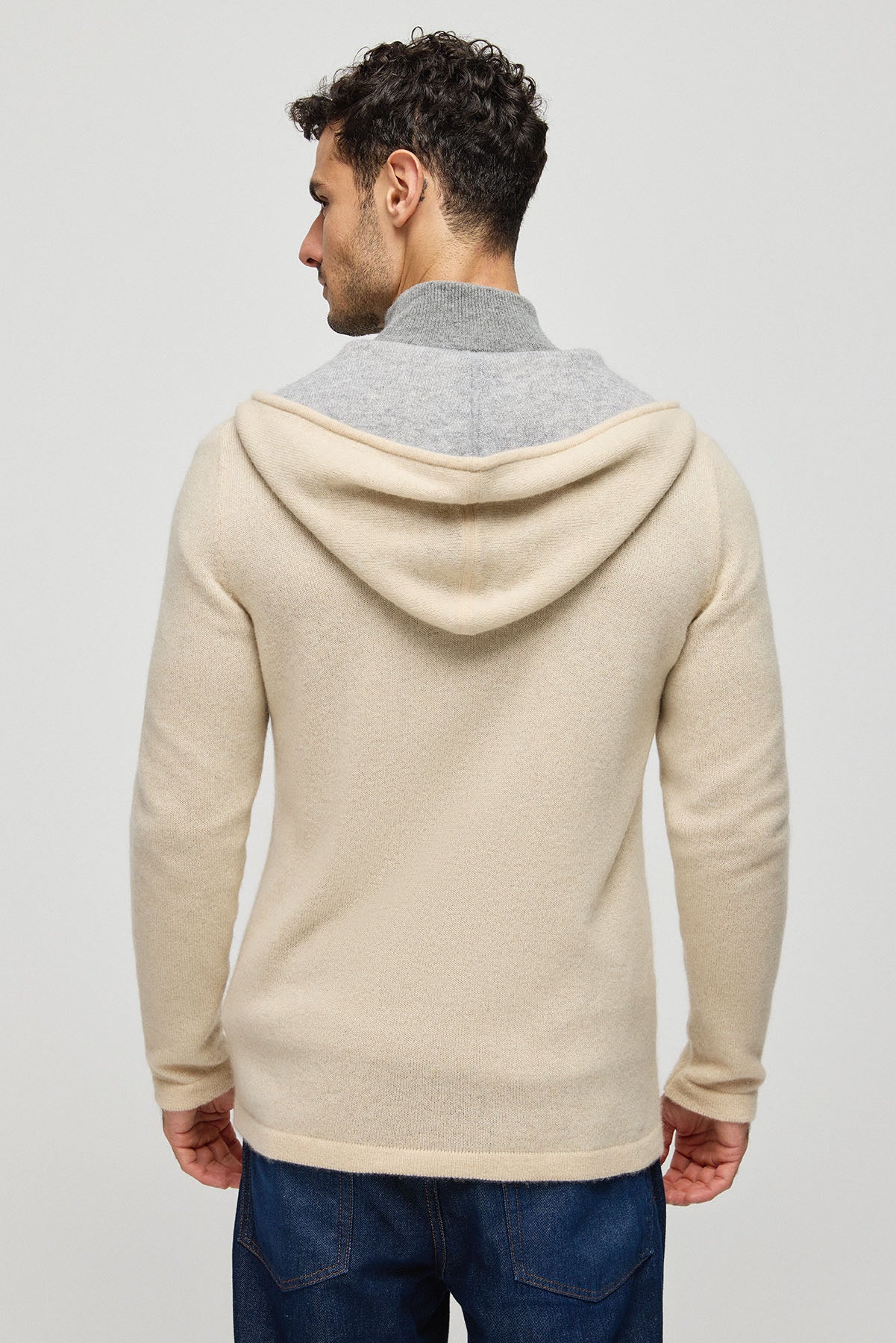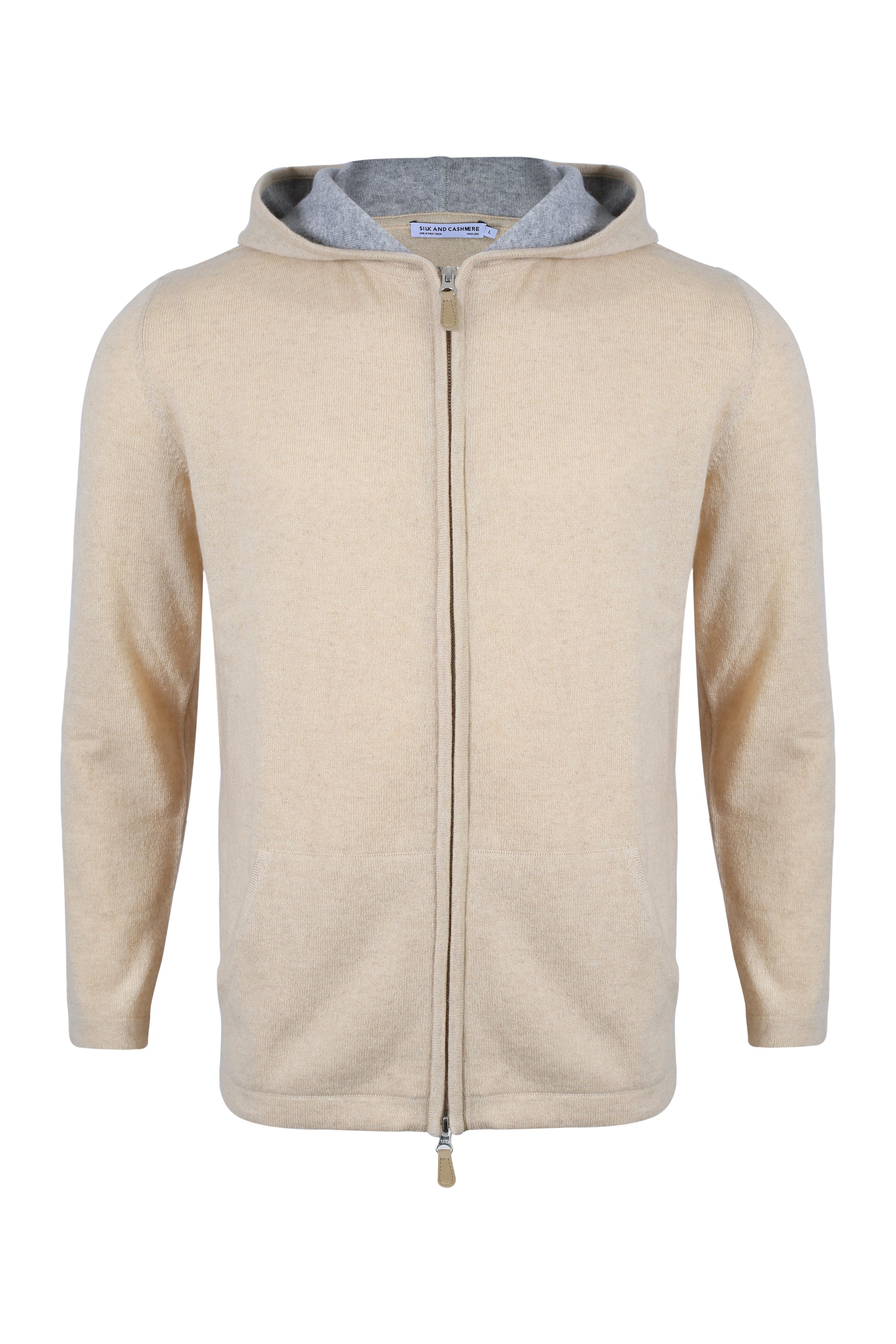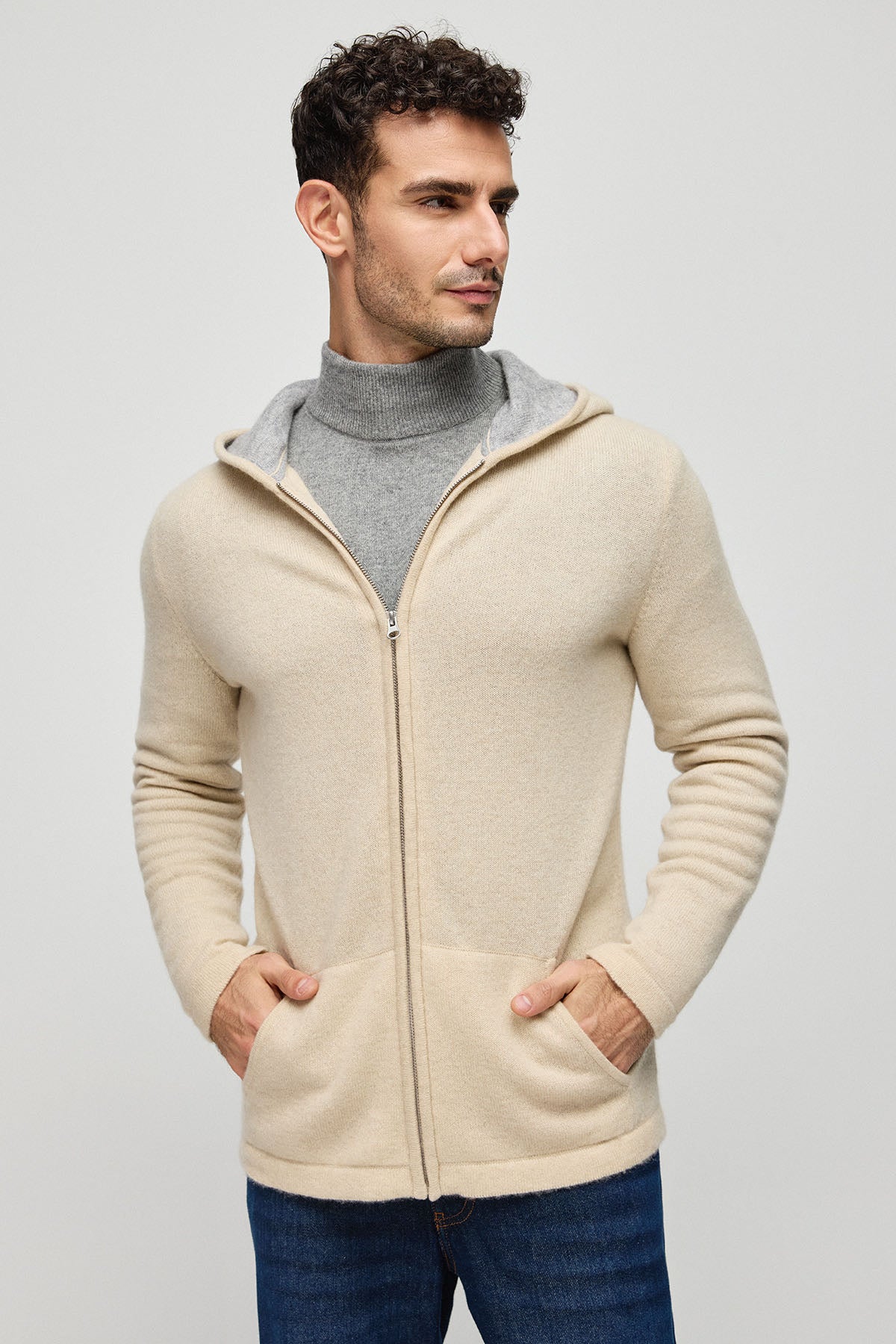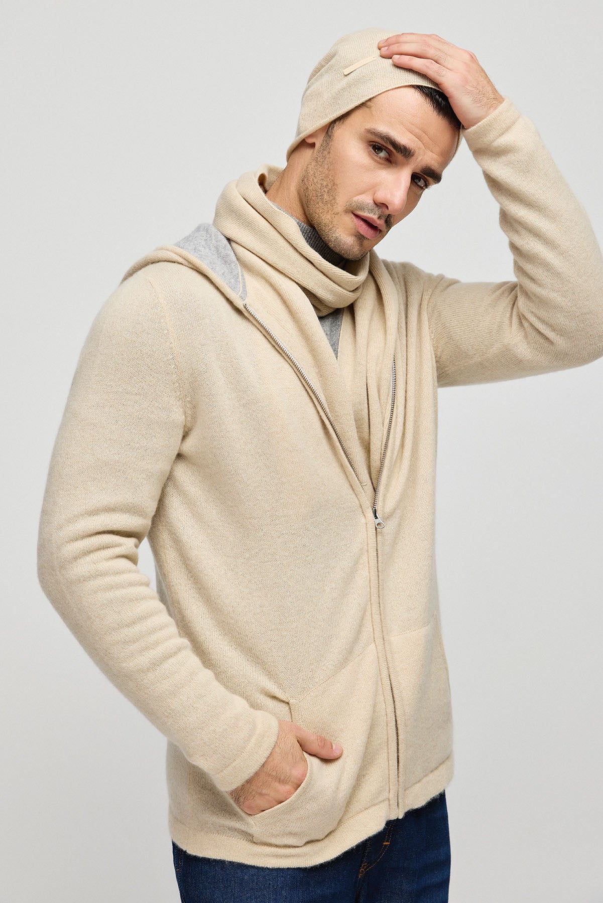 Kum Beji Saf Kaşmir Scott Erkek Kapüşonlu Hırka