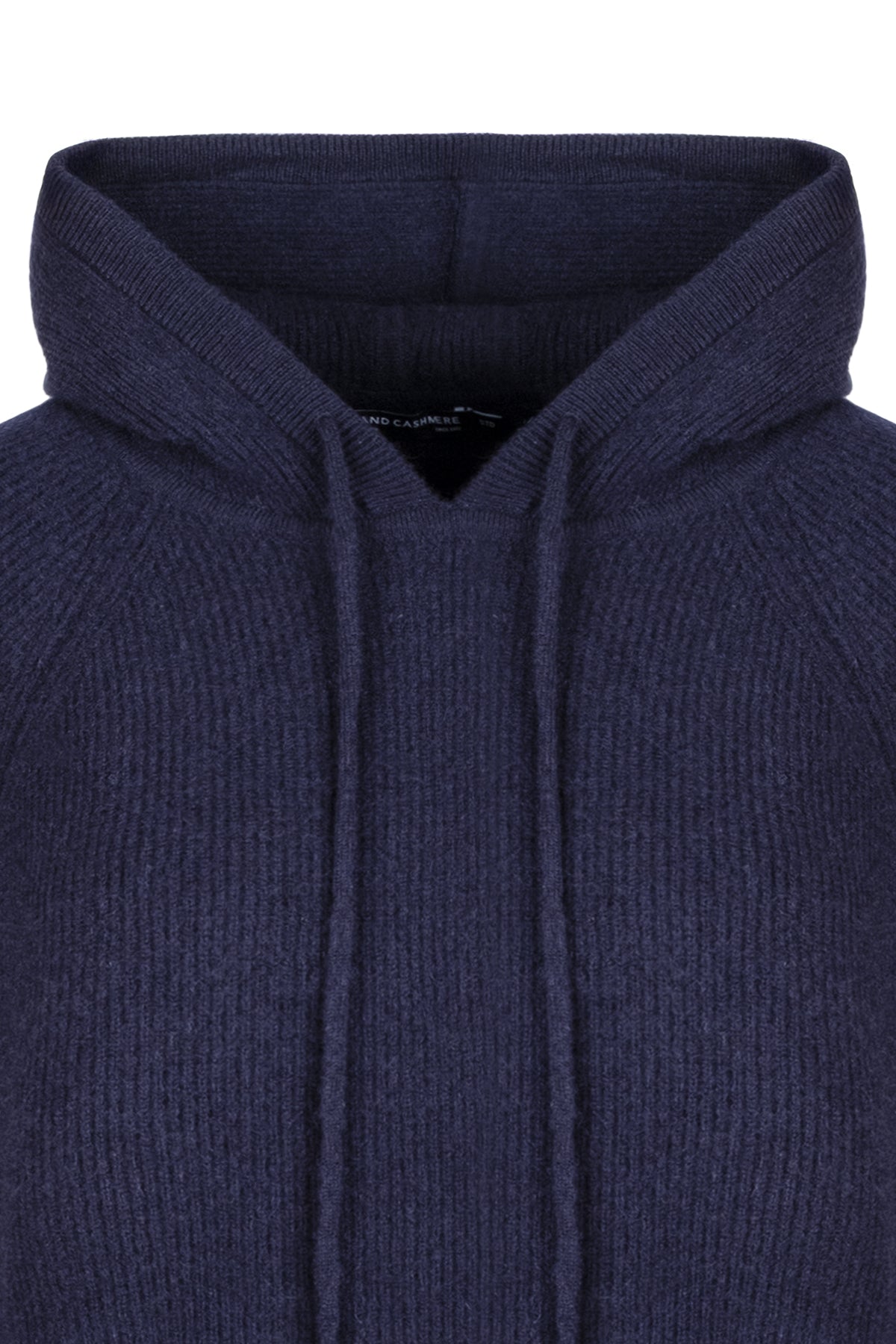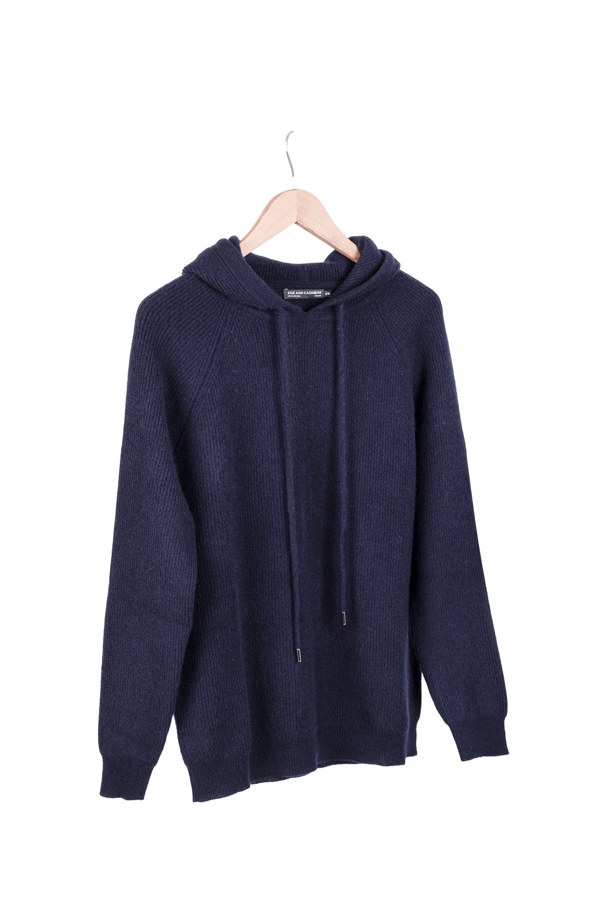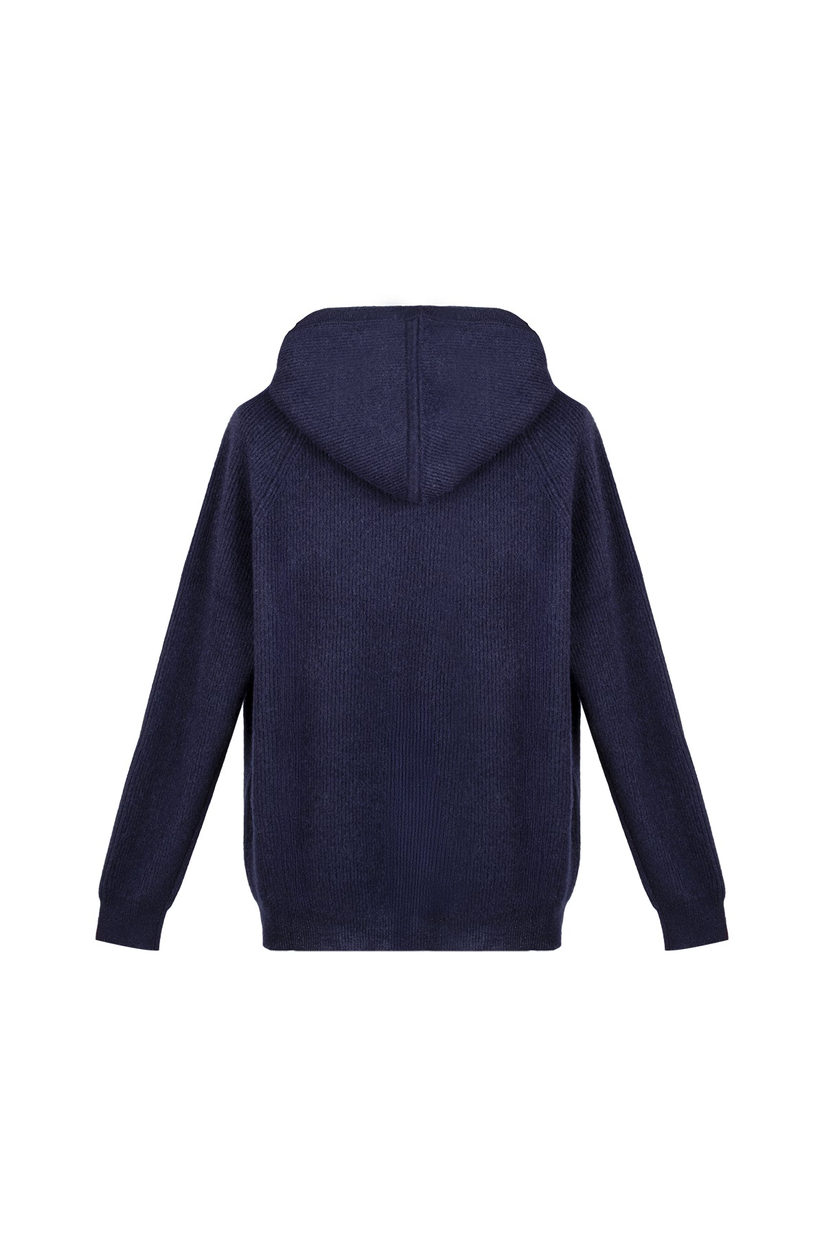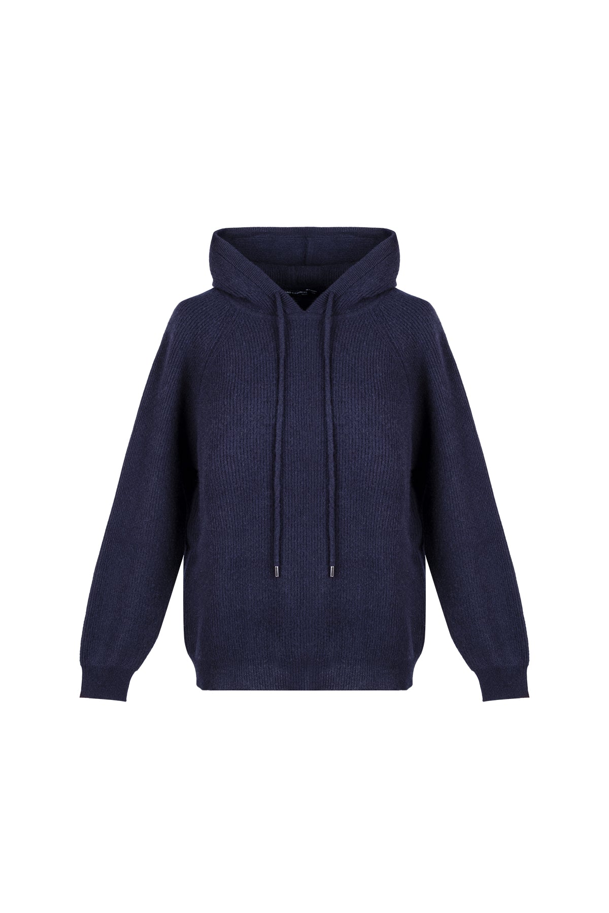 Lacivert Alexia Saf Kaşmir Ribana Kapüşonlu