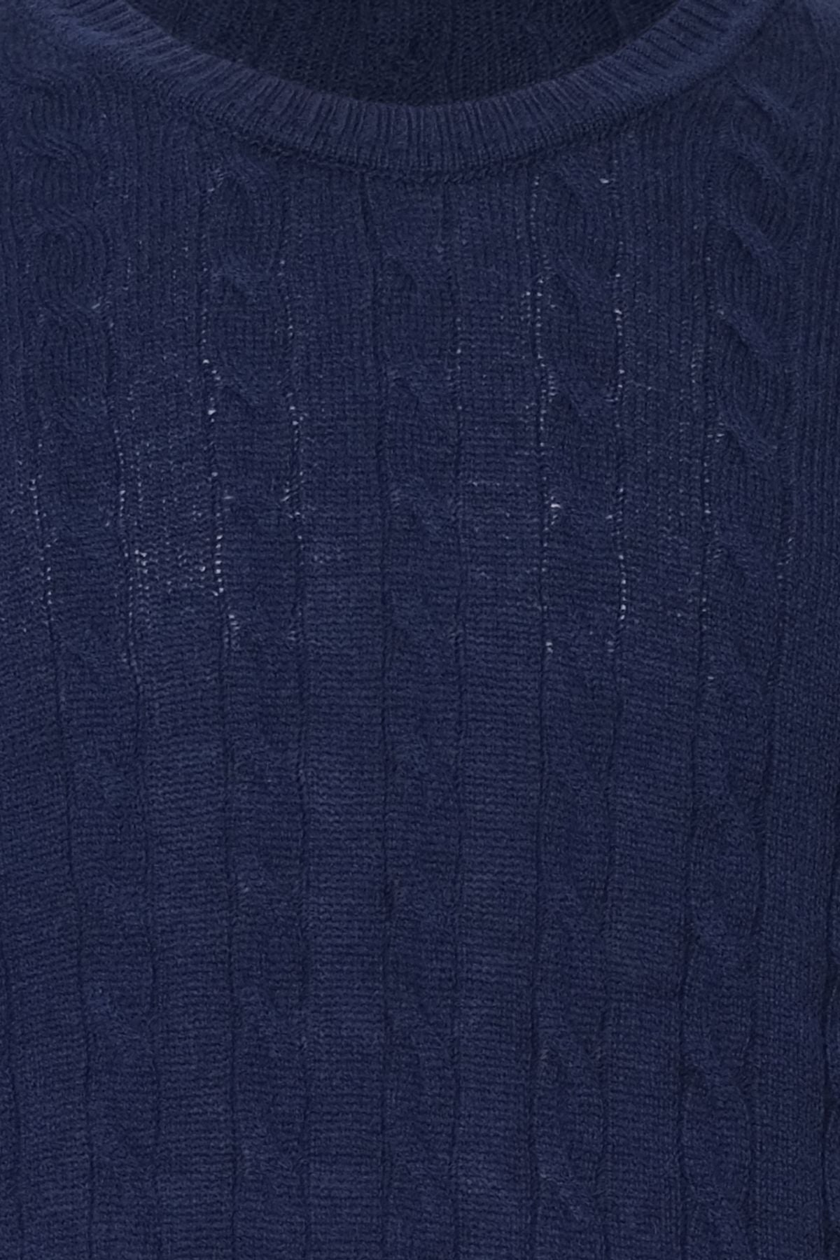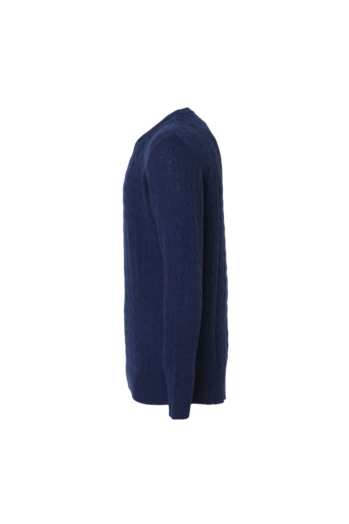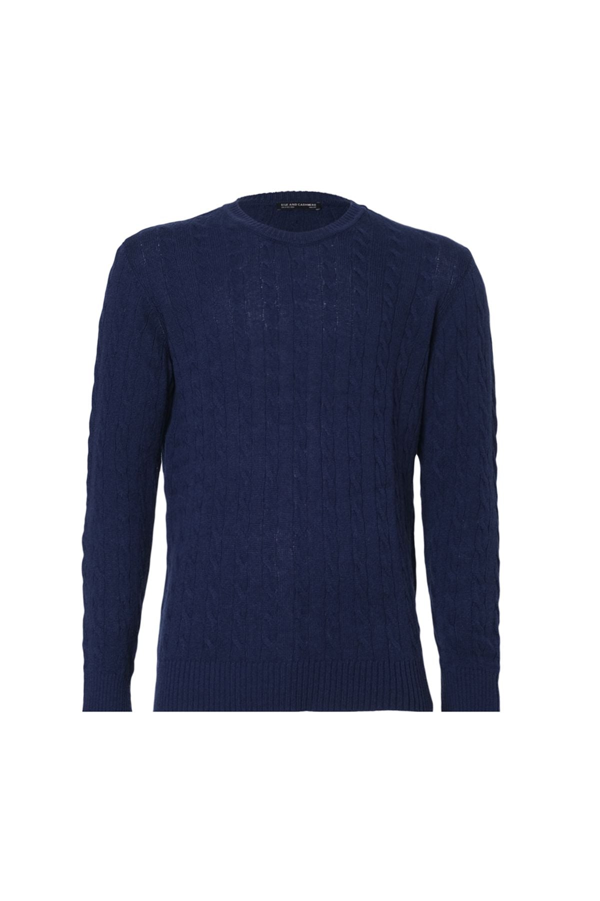 Lacivert Amerigo Avustralya Yünü Kaşmir Saç Örgülü Yuvarlak Yaka Uzun Kollu Erkek Kazak