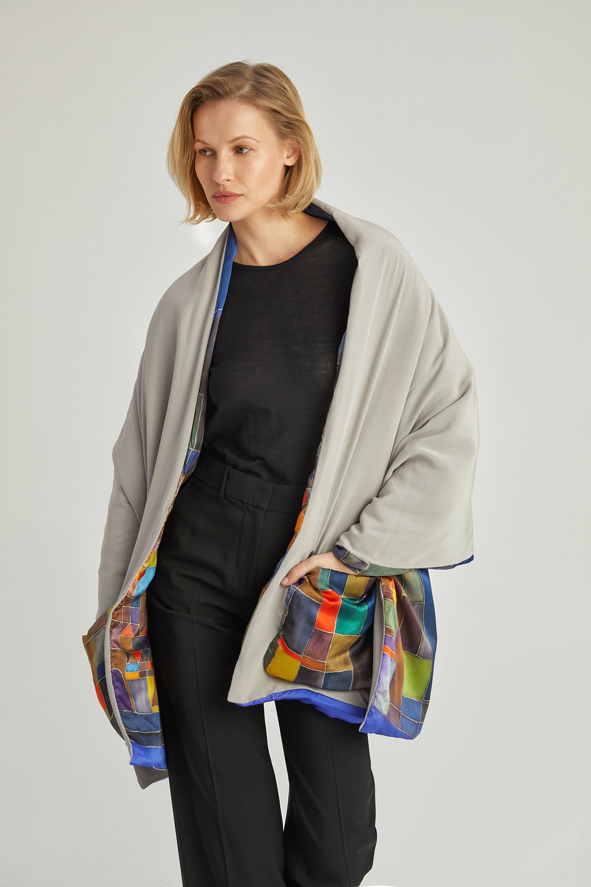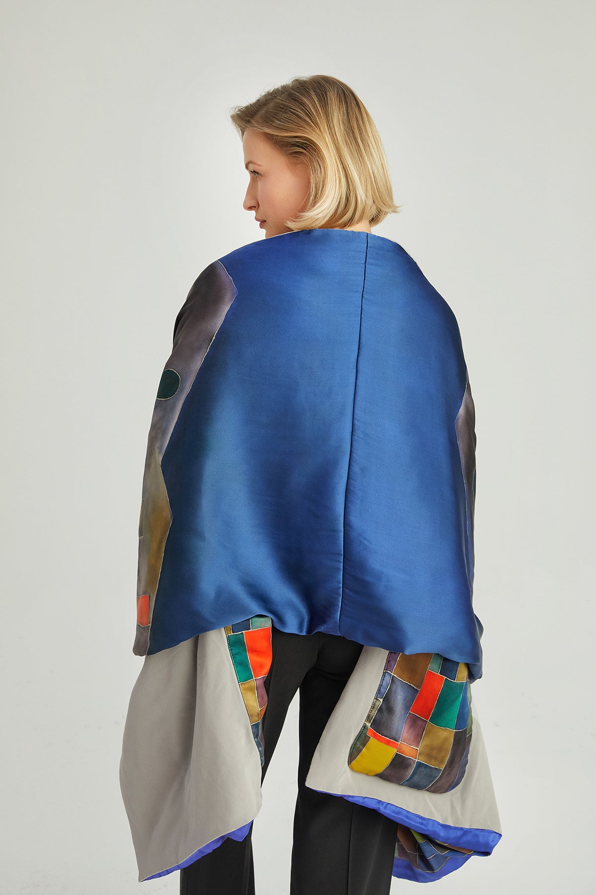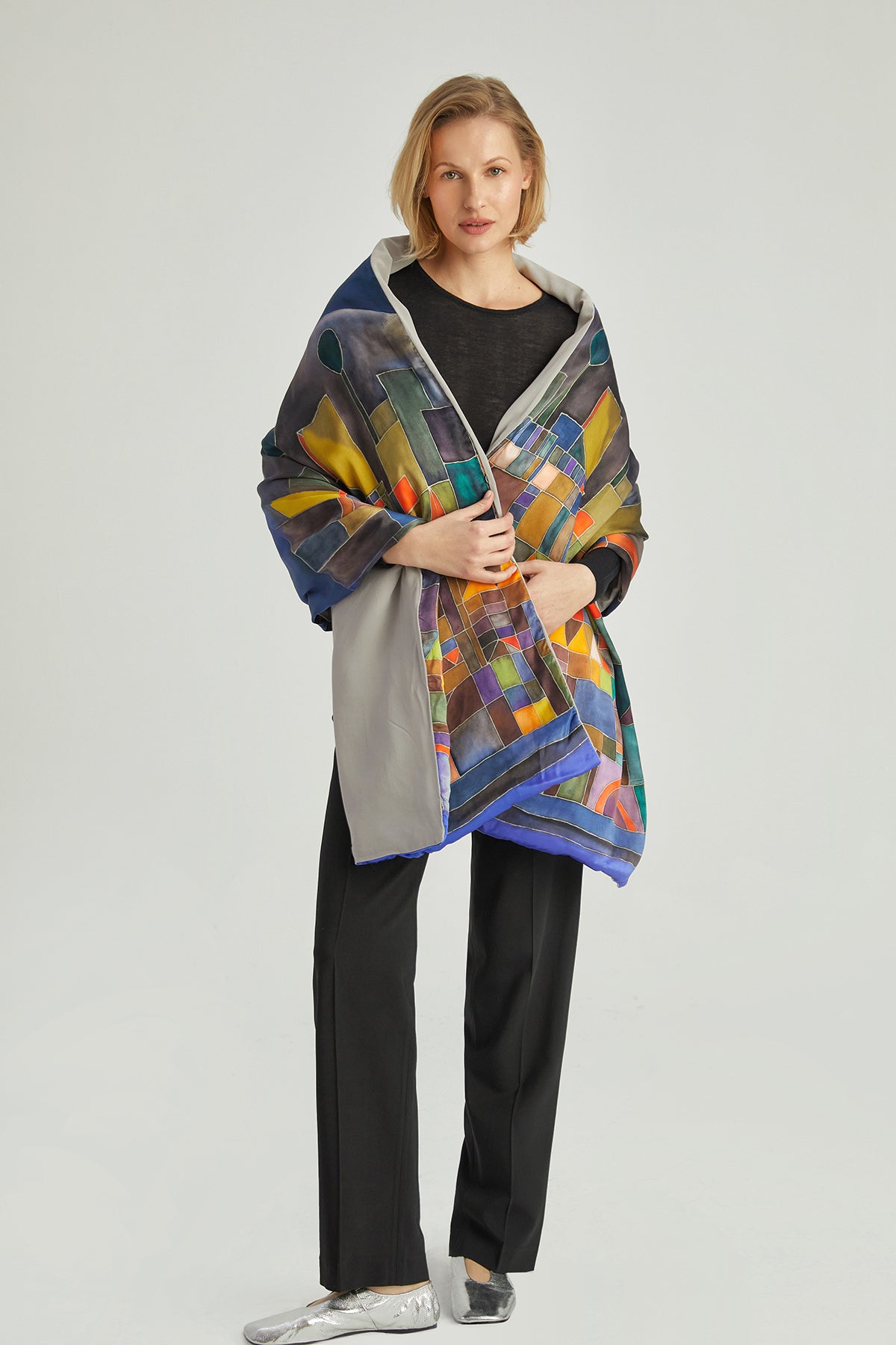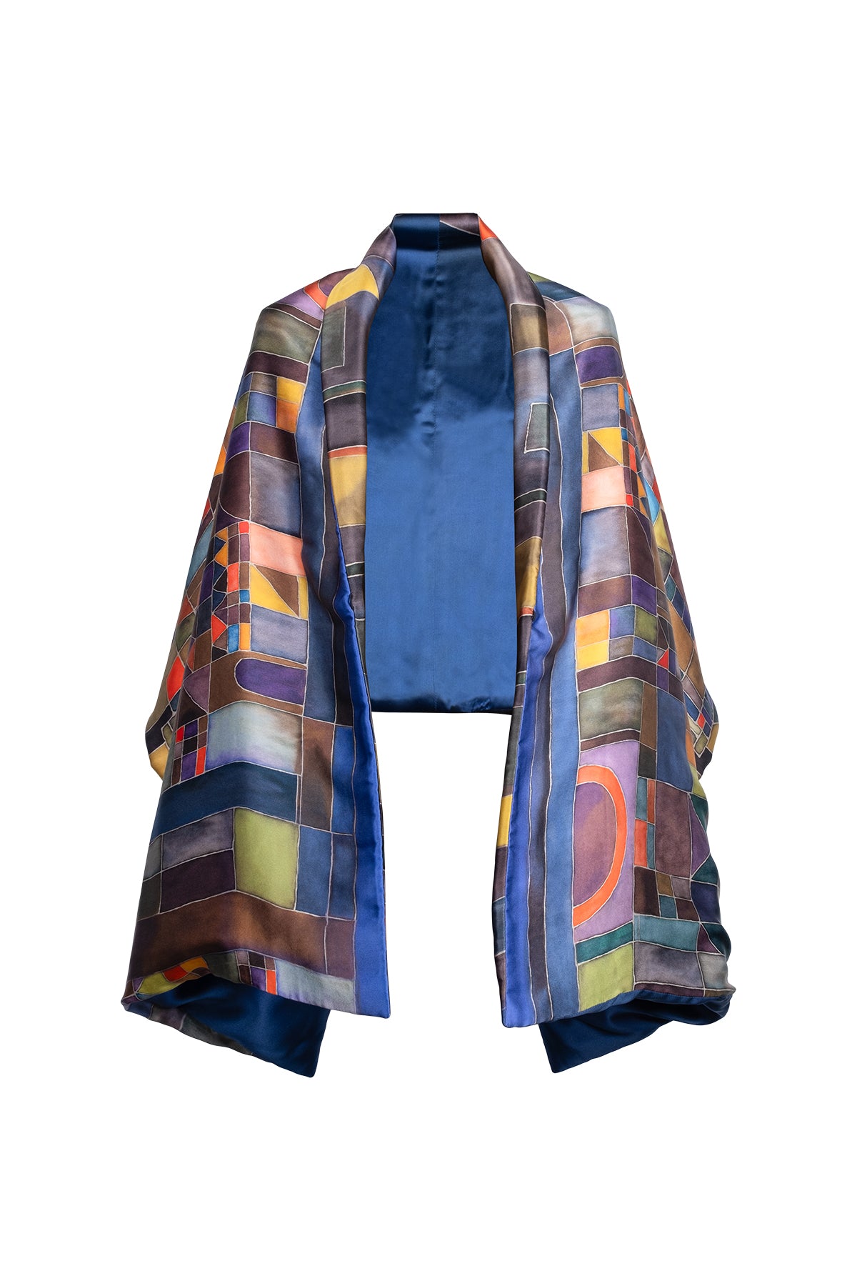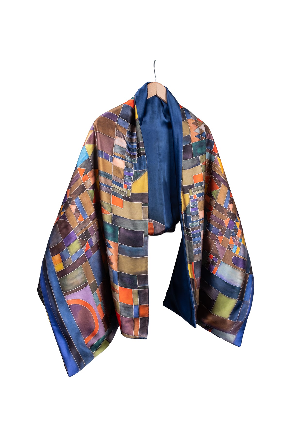 Lacivert Astrid İpek Şal, doğal ipeğin zarif dokusunu canlı ve geometrik desenlerle birleştiriyor. 64 x 210 cm ölçülerindeki bu şal, geniş ebatlarıyla farklı şekillerde kullanım imkanı sunarken, ince ve hafif yapısıyla yılın her döneminde tercih edilebilir. Lacivert tonun üzerine modern dokunuşlarla eklenen renkli desenler, şalınıza benzersiz bir derinlik katar ve her kombinle kolayca uyum sağlar.