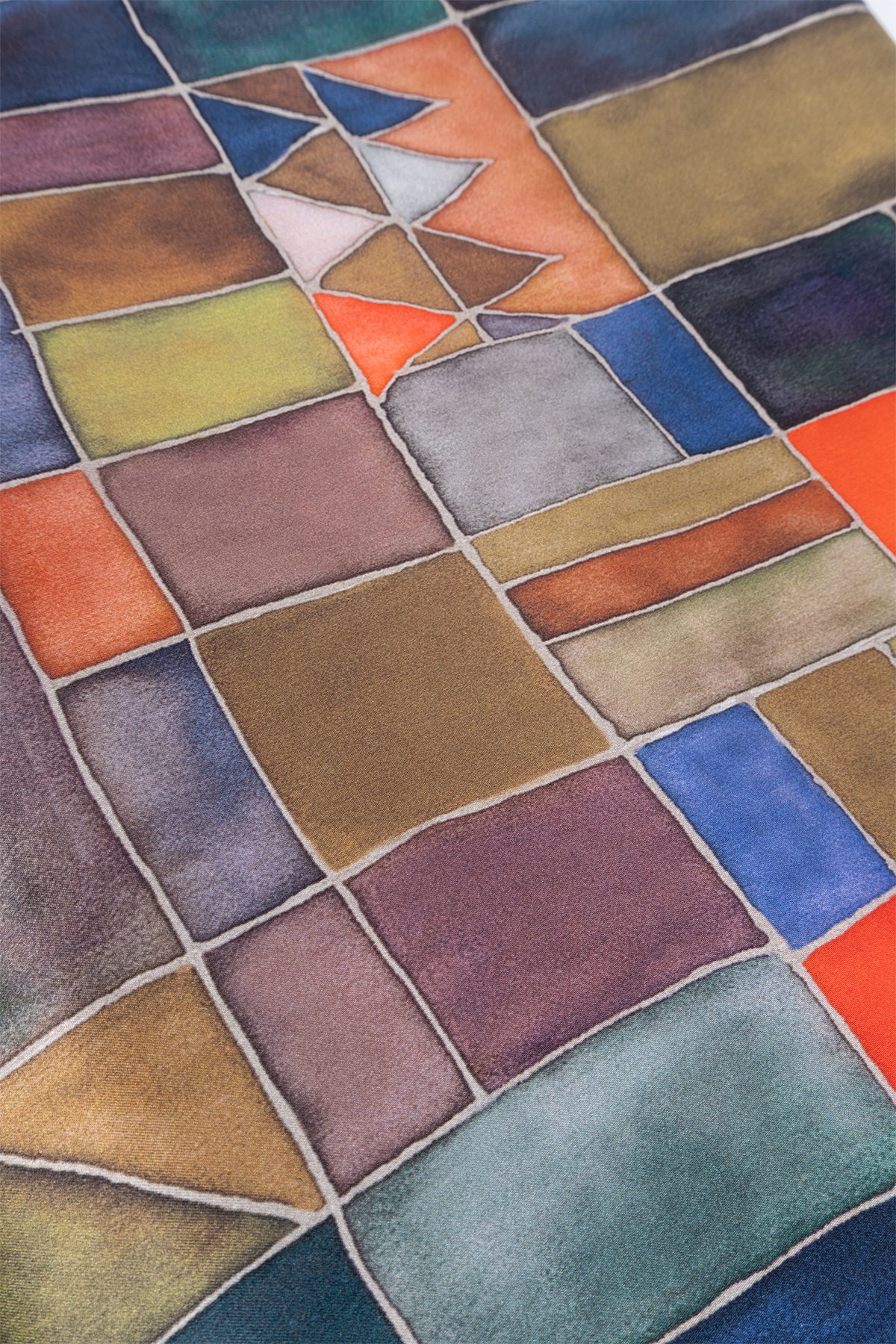 - Renk: Lacivert zemin üzerine renkli geometrik desenler