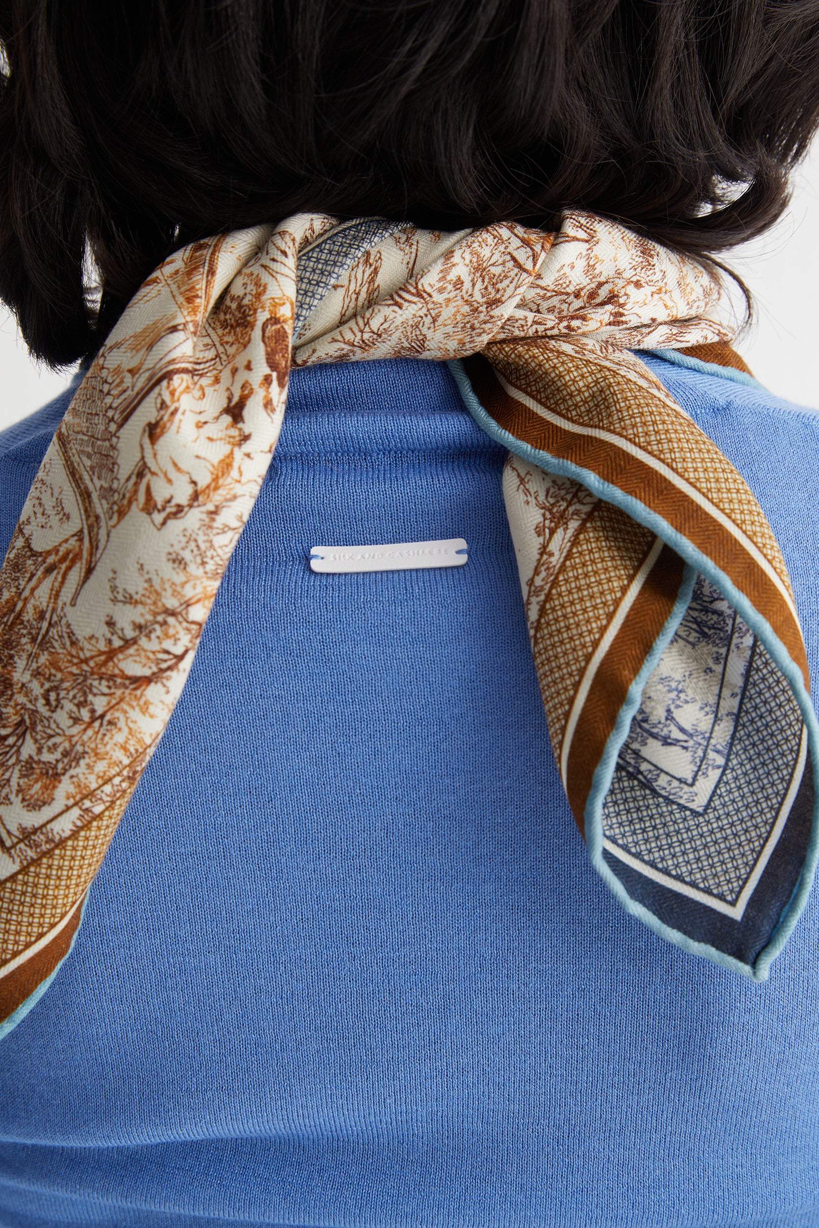 Zamansız desenleri ve yumuşak dokusuyla öne çıkan Lea kaşmir eşarp, lacivertin derin tonlarını beyaz detaylarla birleştirerek güçlü bir duruş sergiler. Hafif yapısı sayesinde gün boyu rahat bir kullanım sunarken, ince işçiliği her detayında kendini hissettirir.