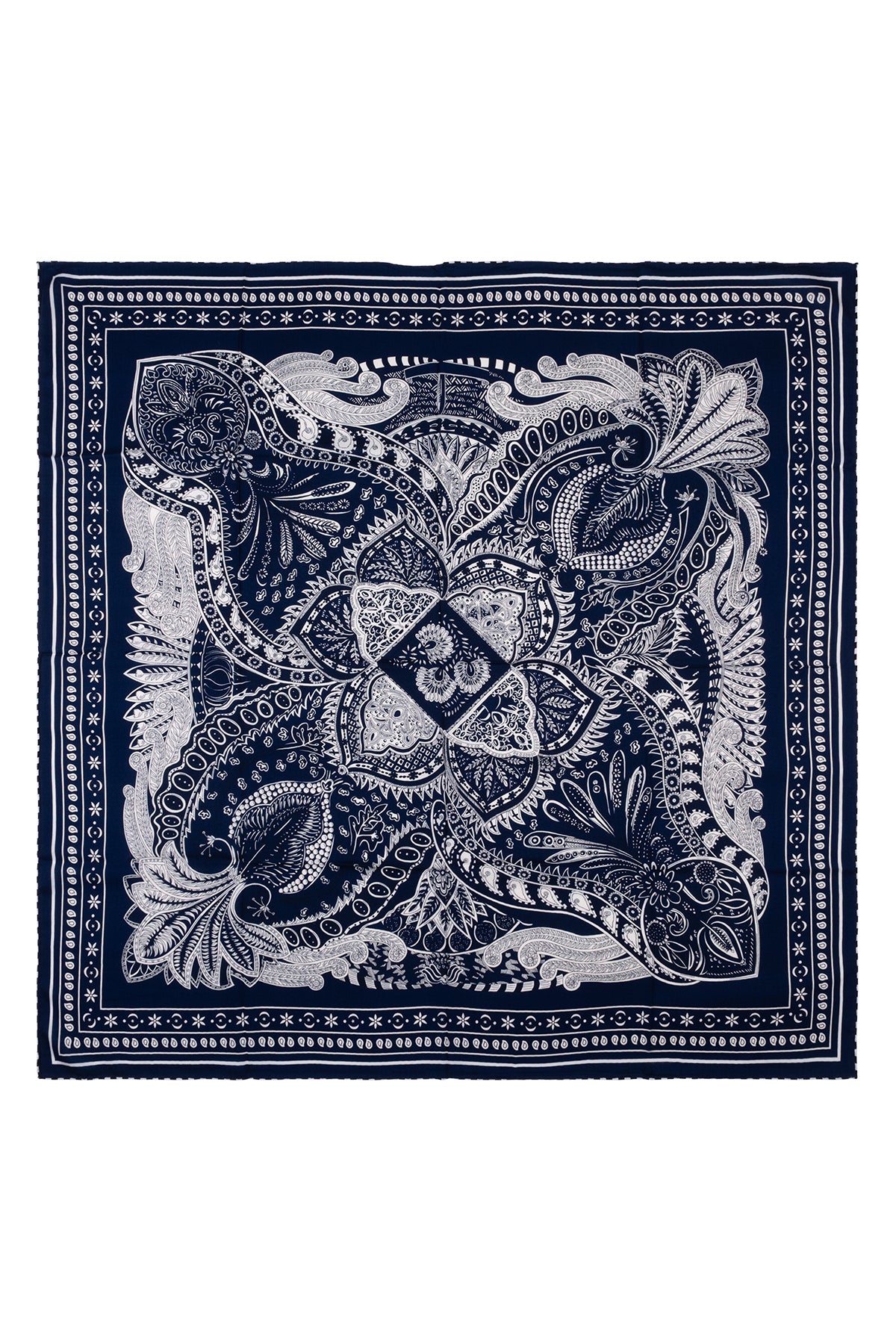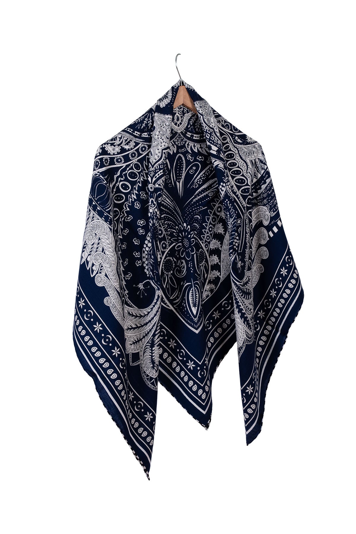 Lacivert Beyaz Linda Kaşmir Desenli Kare Eşarp 140x140 cm