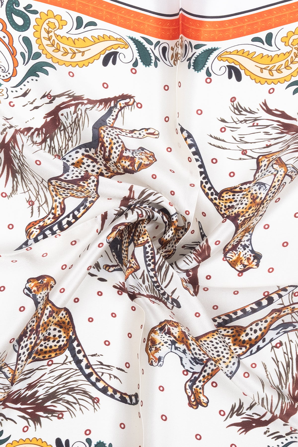 Lacivert Ekru Laila Saf İpek Kare Eşarp 50x50 cm