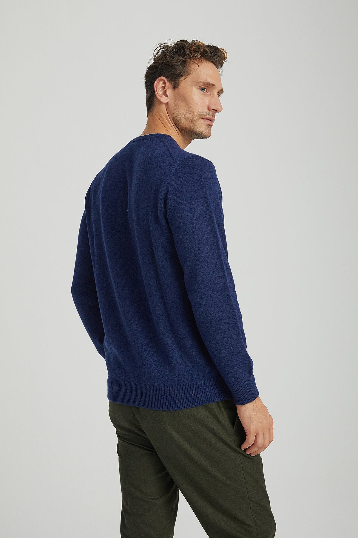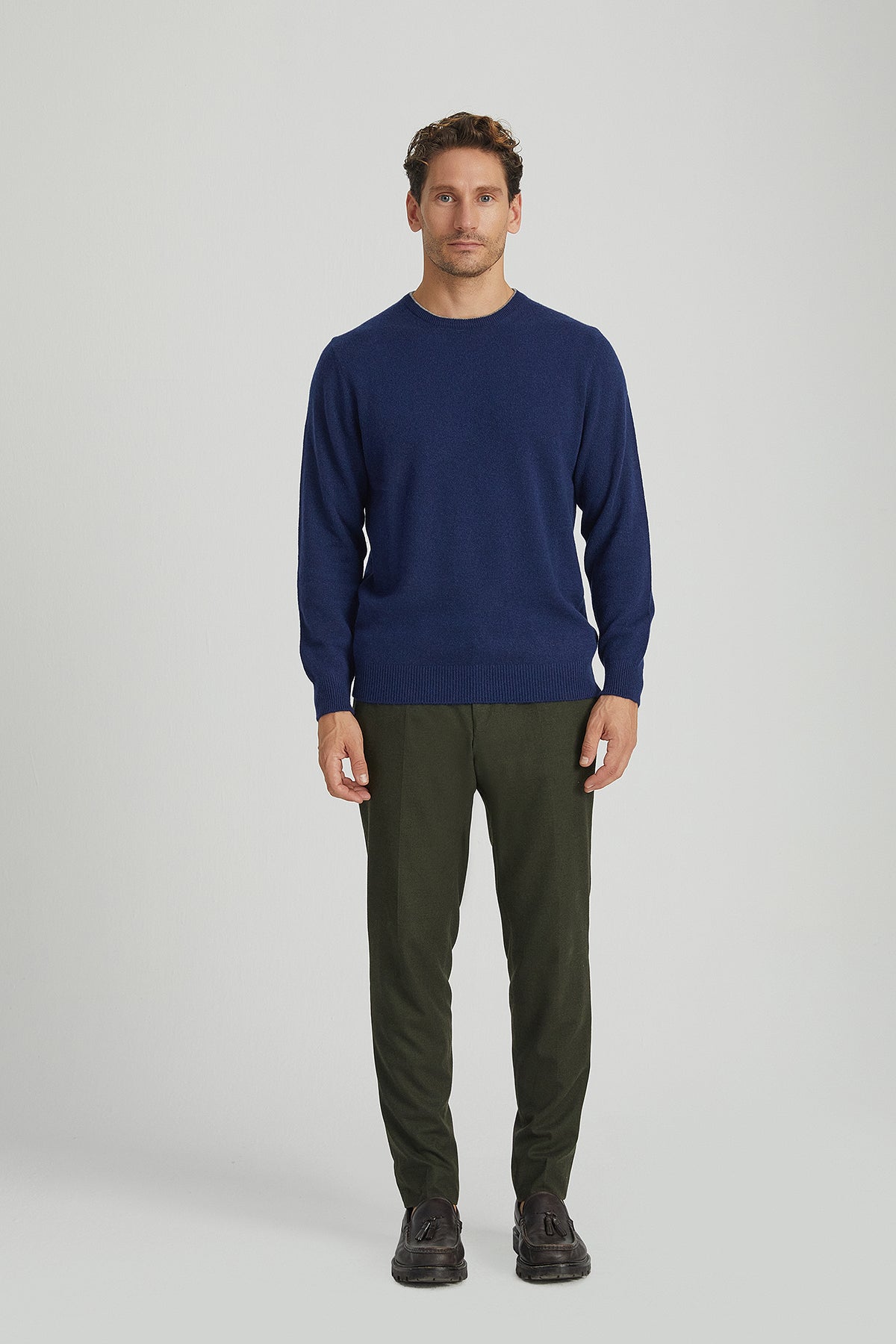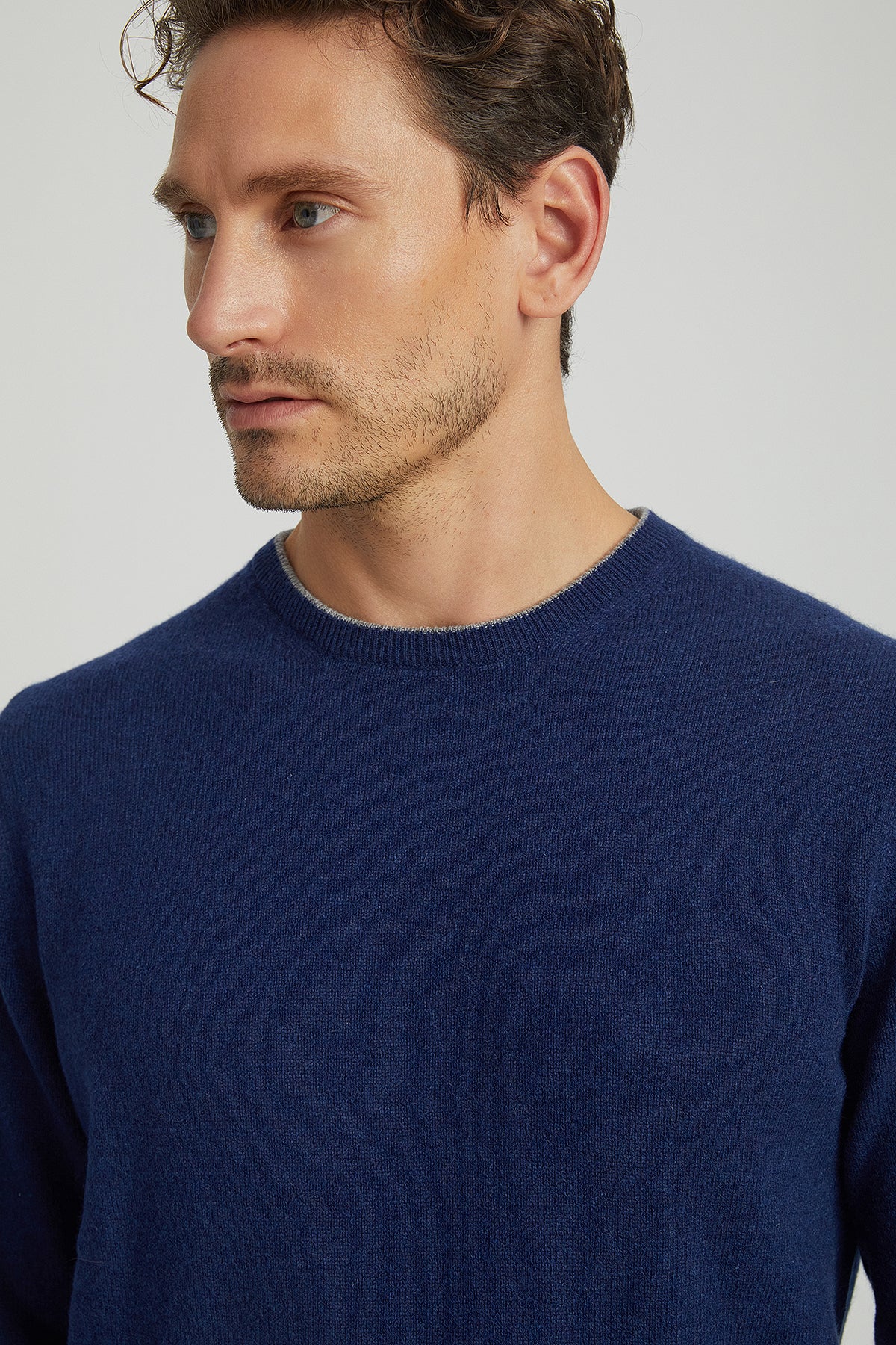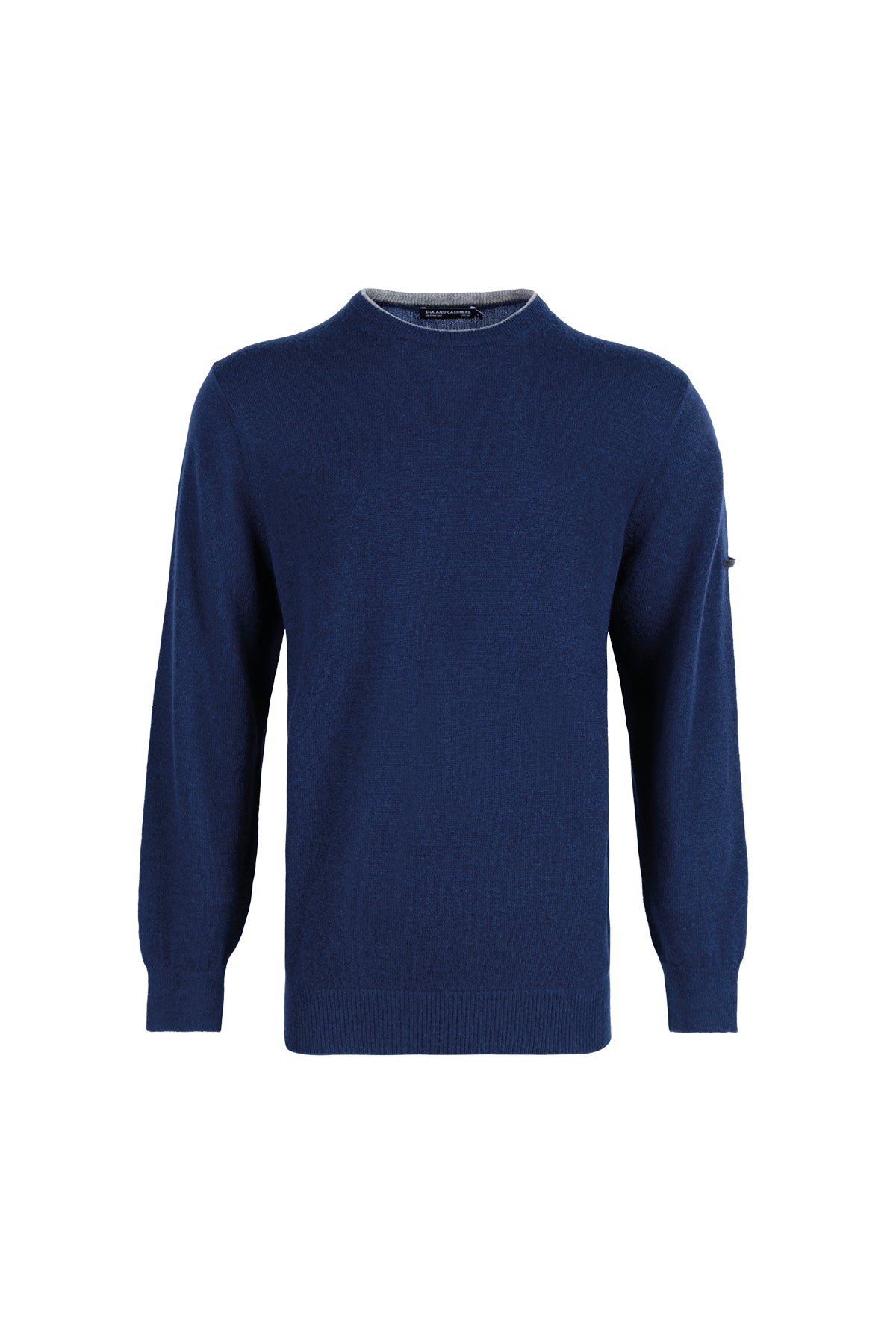 Lacivert Franco Saf Kaşmir Bisiklet Yaka Kazak