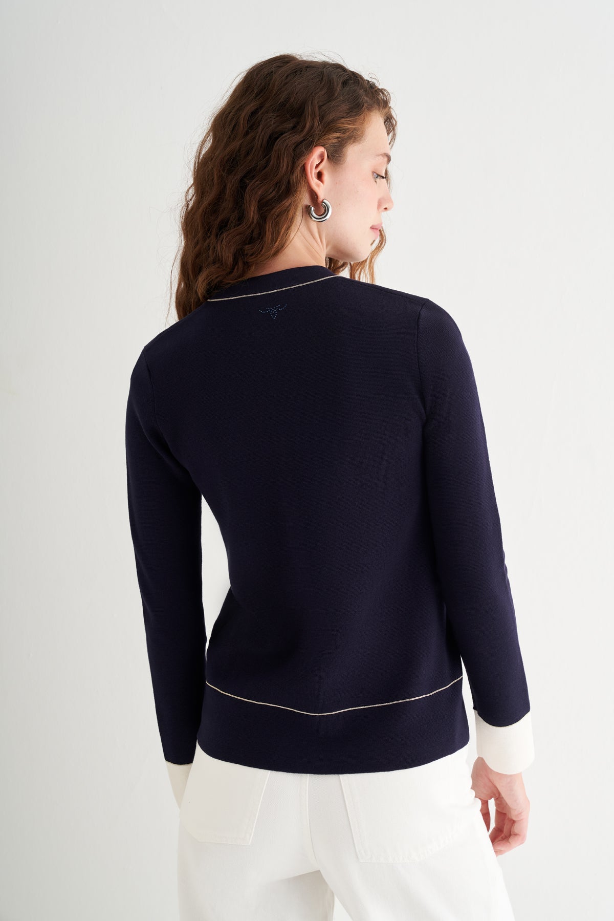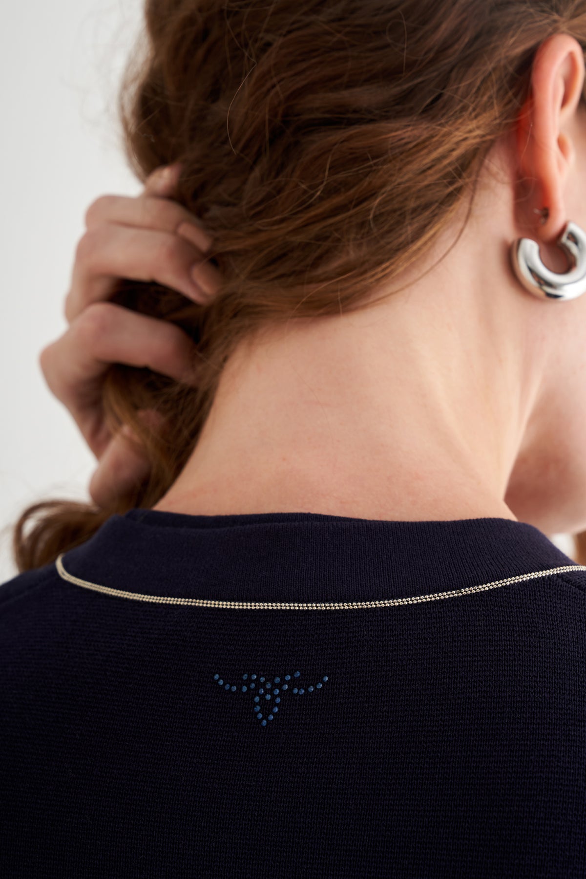 Lacivert Grace İpekli Zincirli Hırka