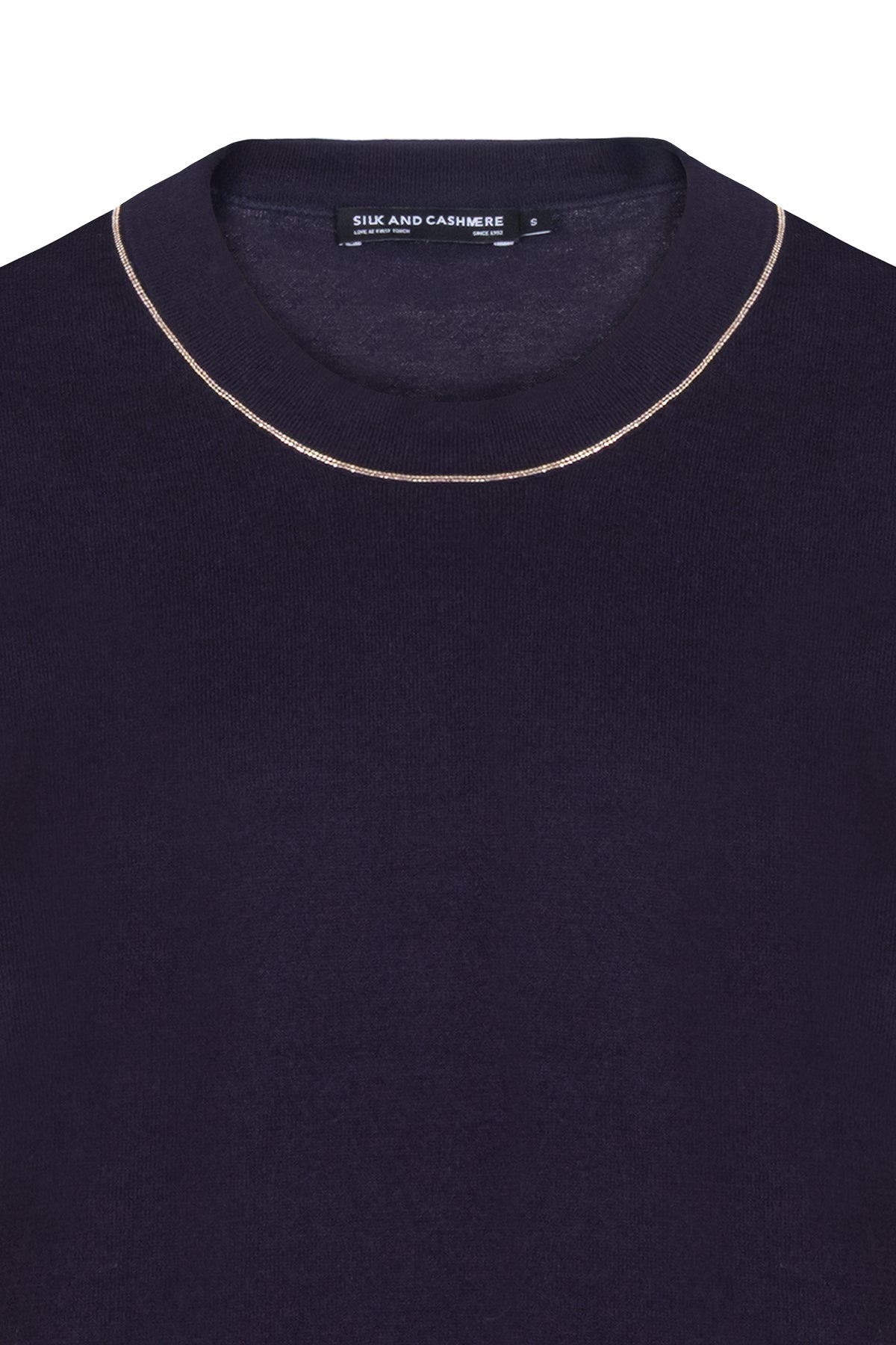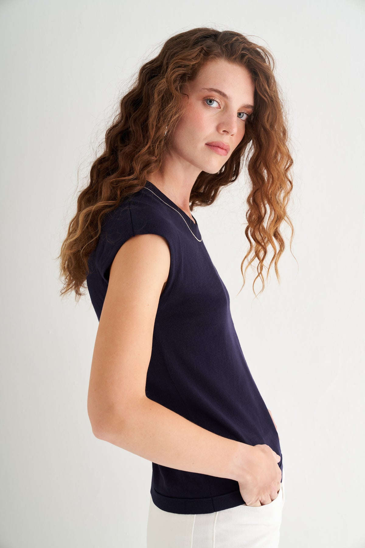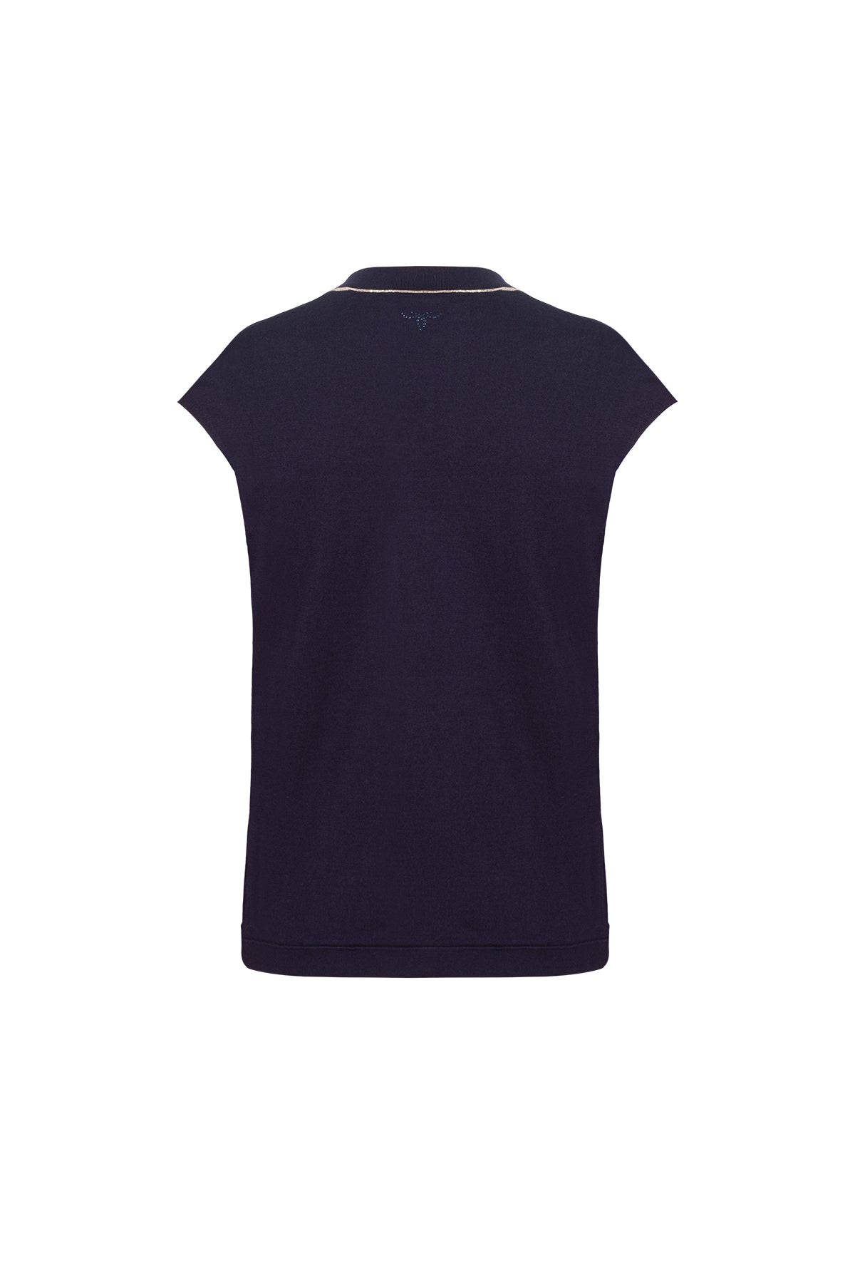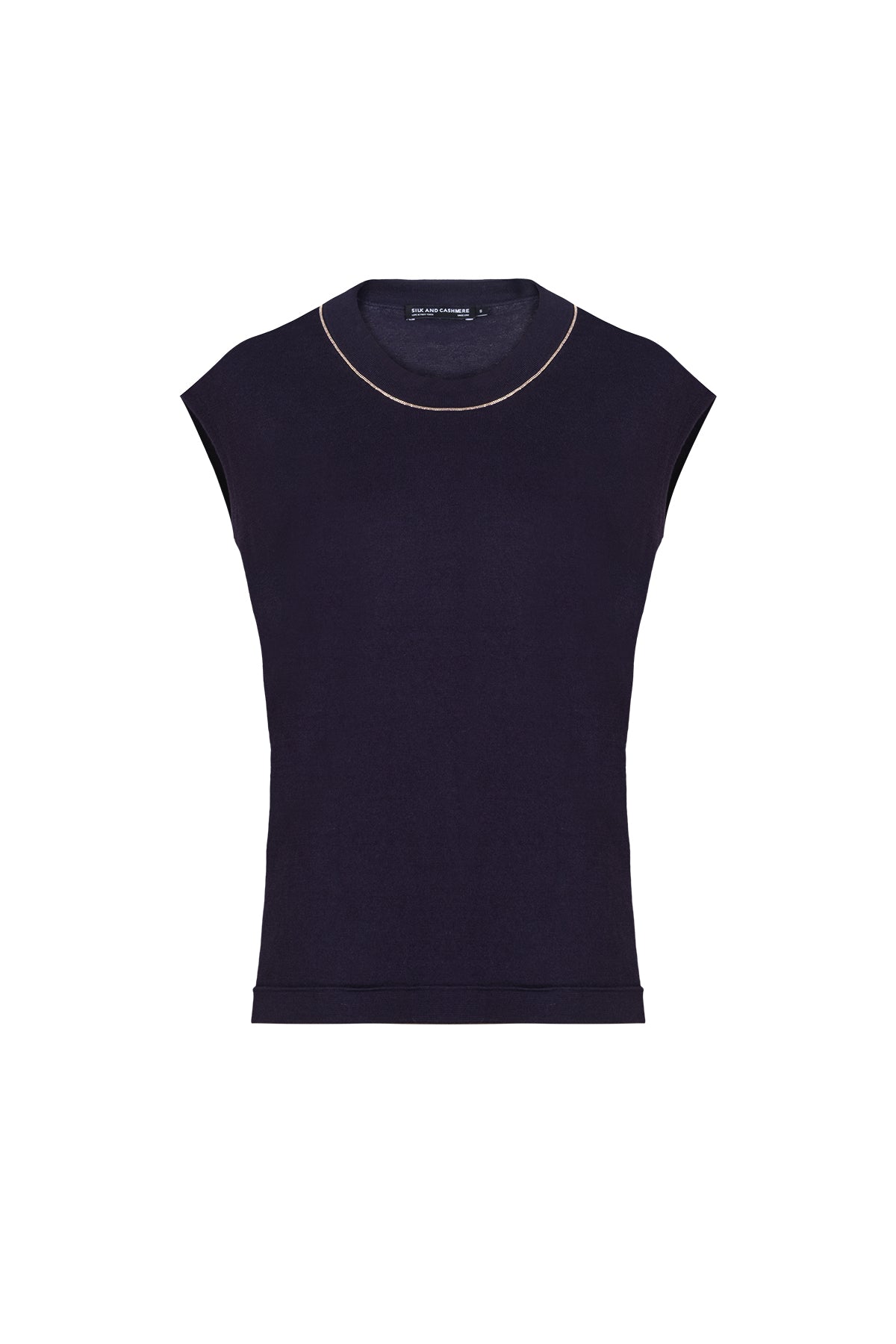 Lacivert Grace İpekli Zincirli Yuvarlak Yaka Kolsuz Triko
