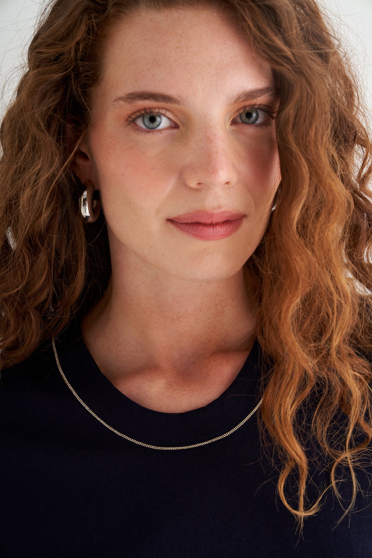 Grace İpekli Kolsuz Triko, yalın çizgilerle şekillenen güçlü bir duruşu temsil eder. Ipeğin zarif dokunuşuyla bütünleşen pamuk içeriği, nefes alabilir ve yumuşak bir konfor sunarken; ince zincir detayı, görünümünüze imza niteliğinde bir vurgu katar.