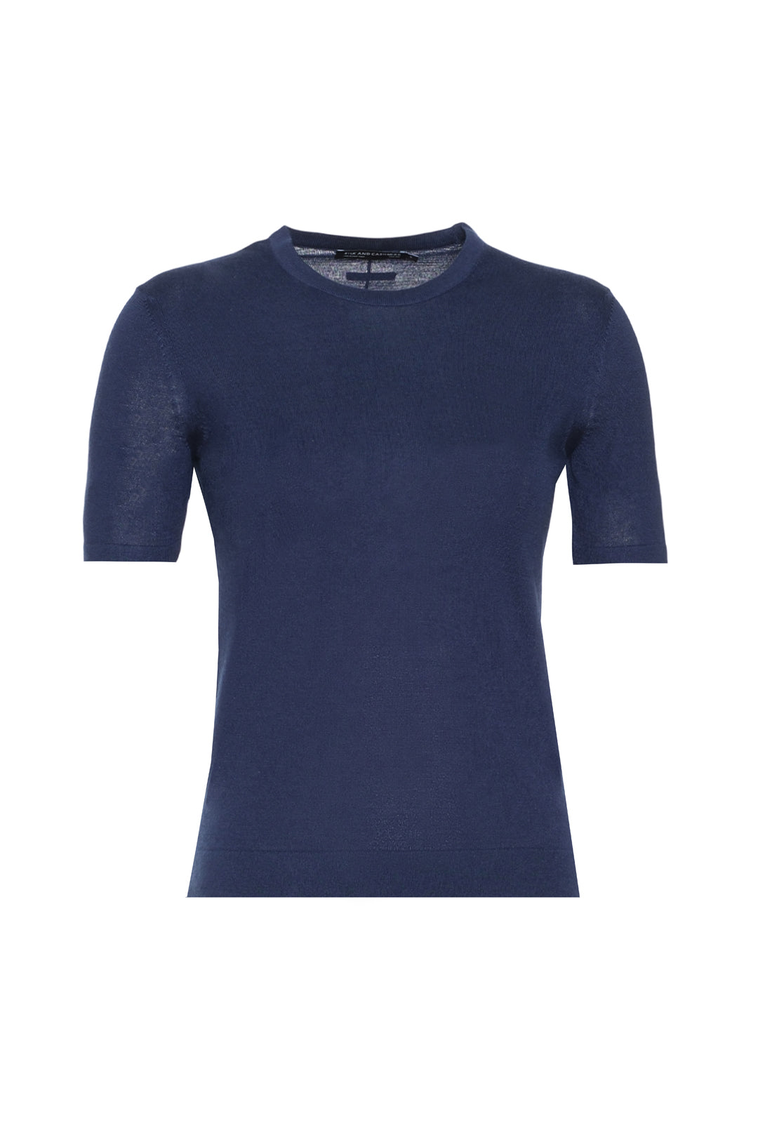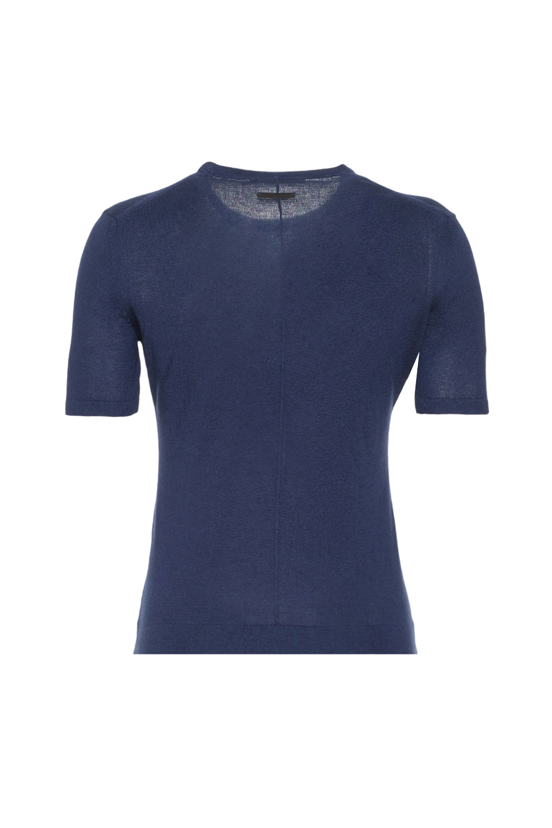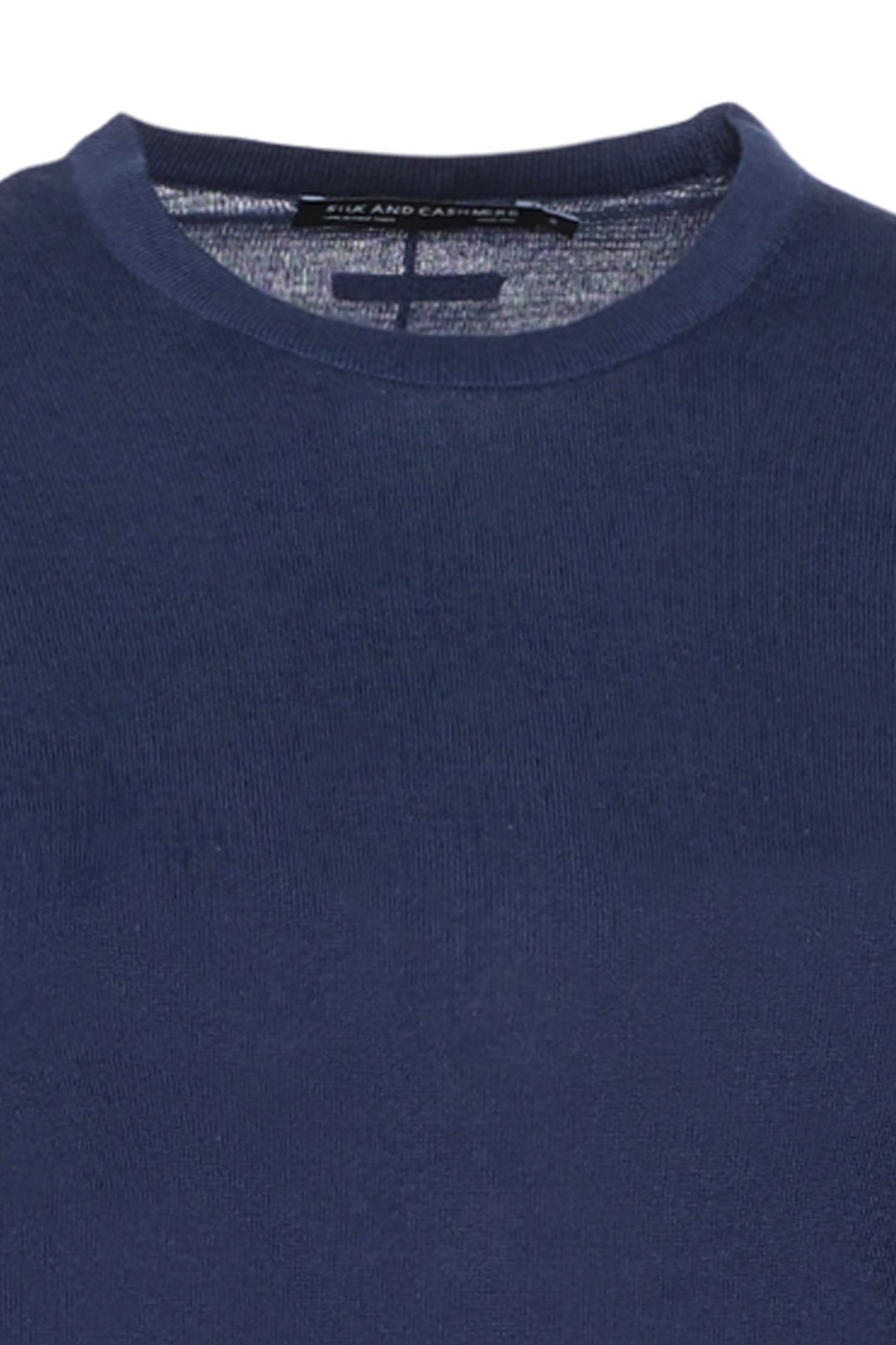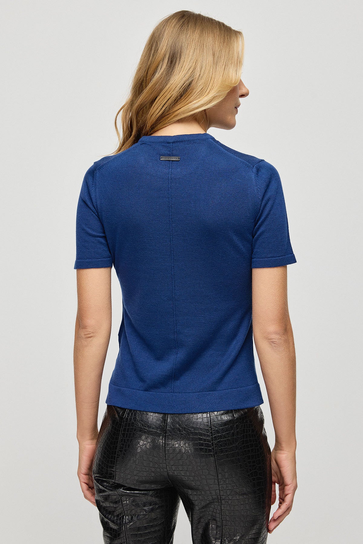 Lacivert İpek Kaşmir Aleyna Yuvarlak Yaka Kısa Kollu Kadın Triko