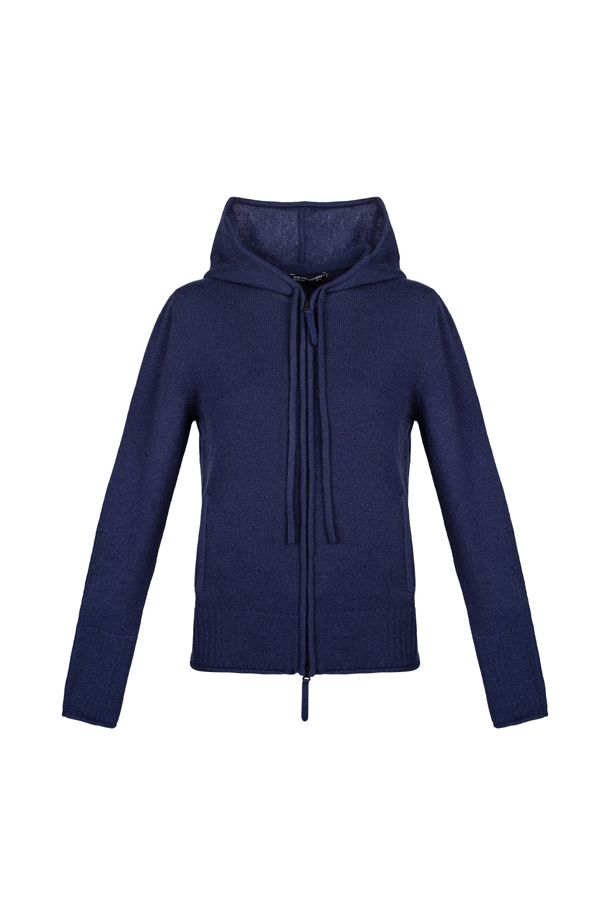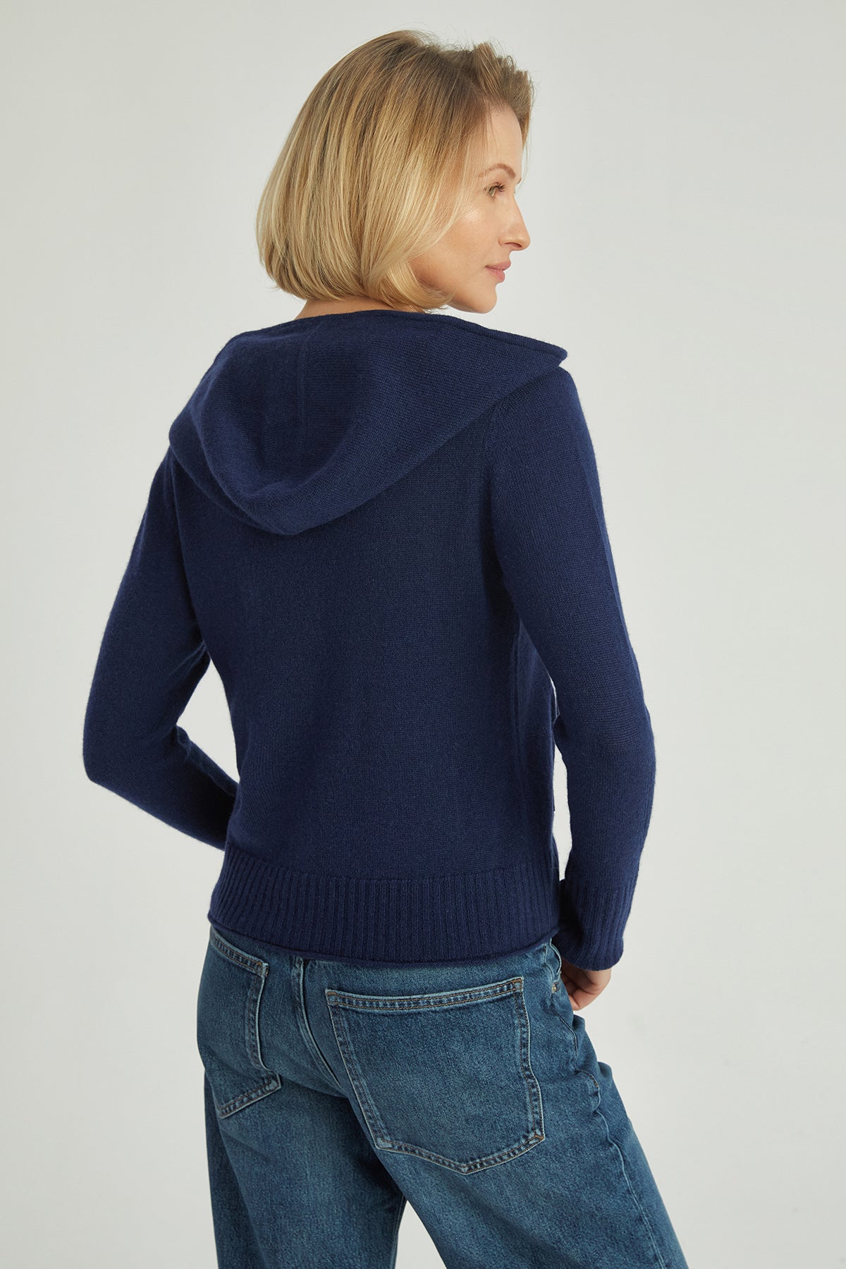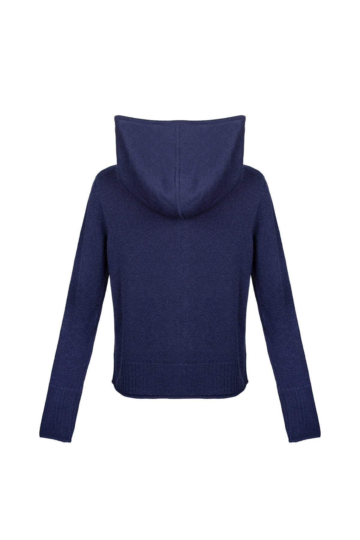 Lacivert Isabella Saf Kaşmir Kapüşonlu Hırka