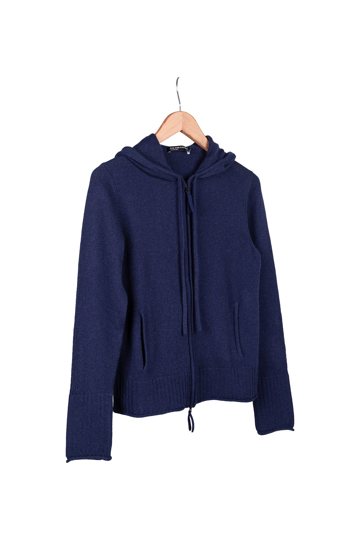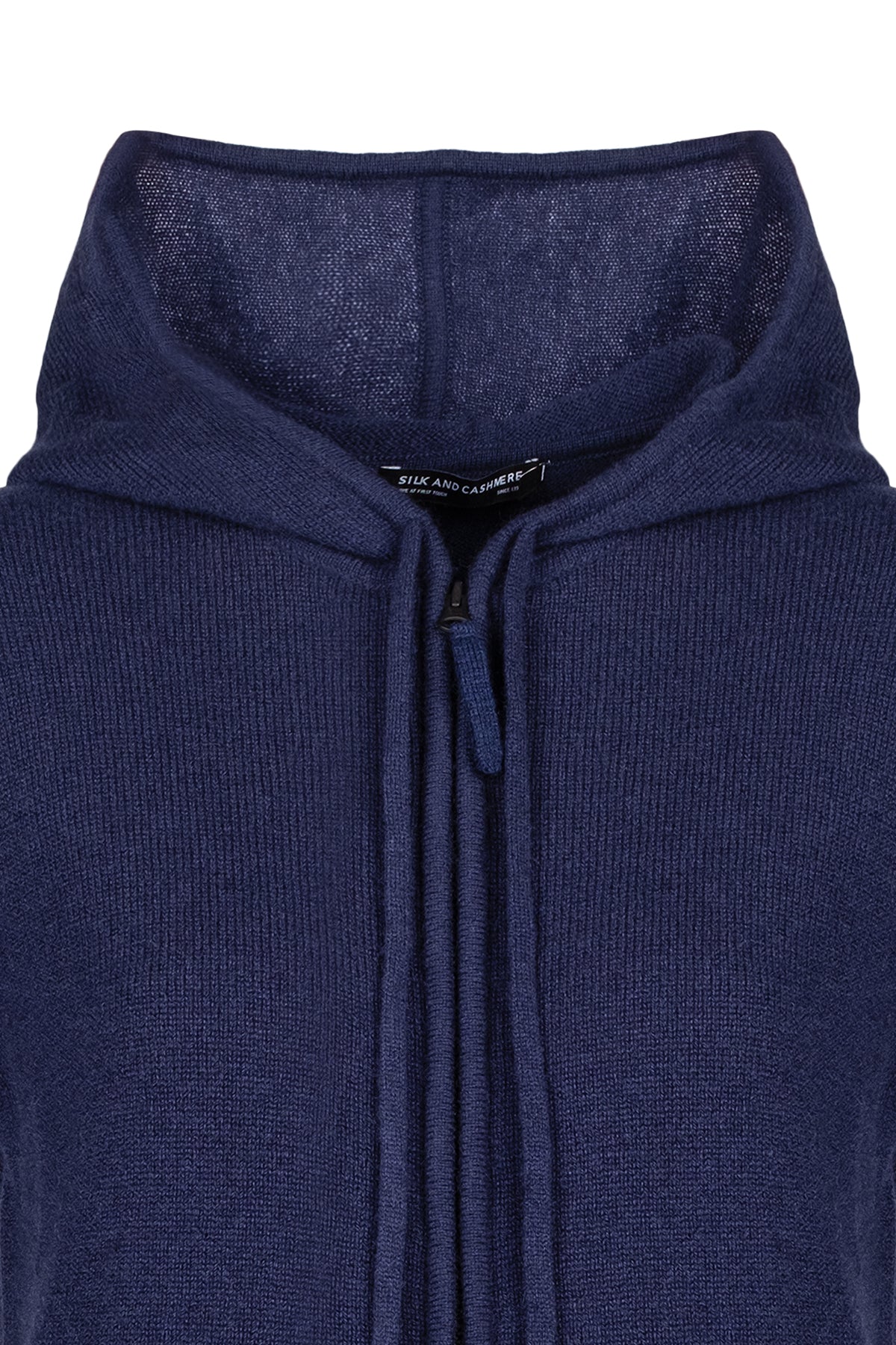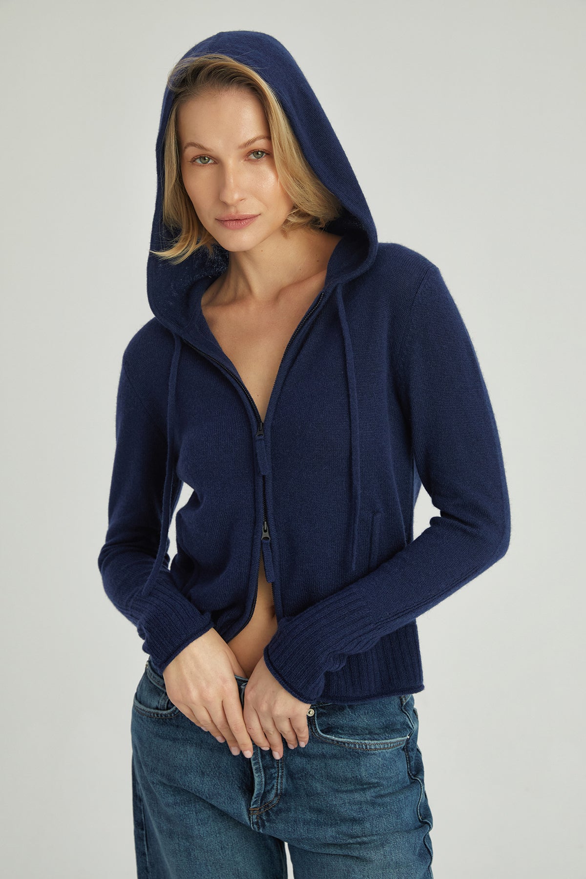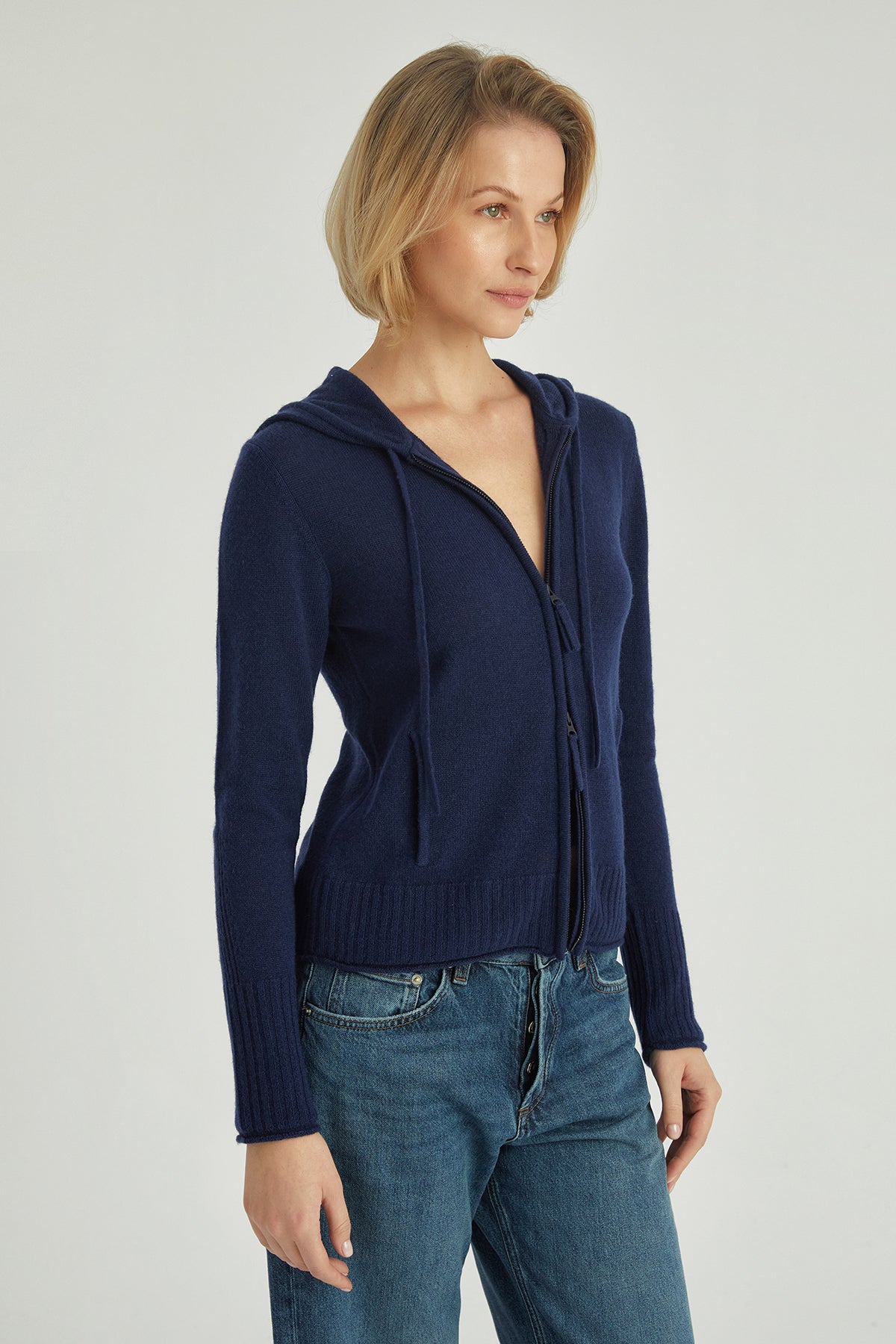 Lacivert Isabella Saf Kaşmir Kapüşonlu Hırka