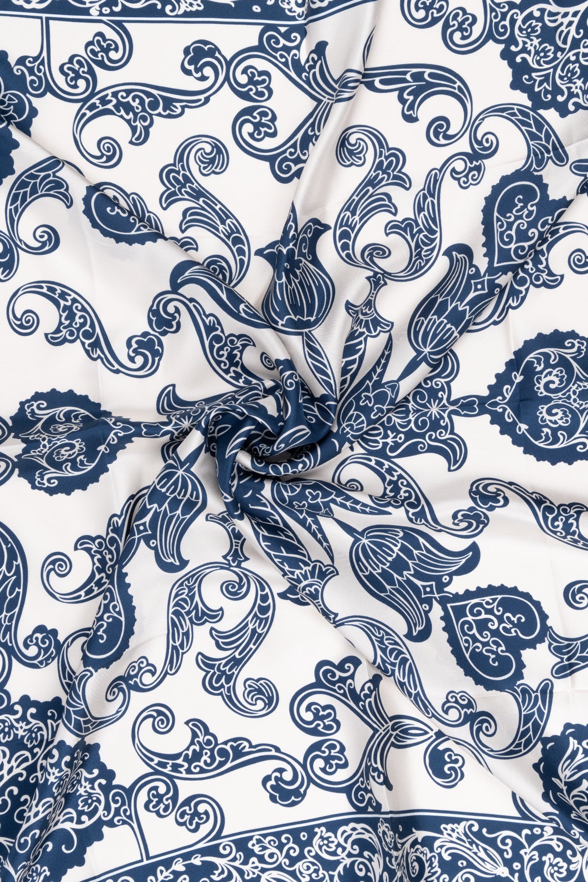 Lacivert Lara İpek Desenli Kare Eşarp 90x90