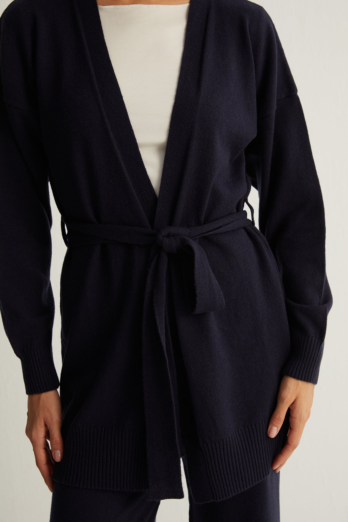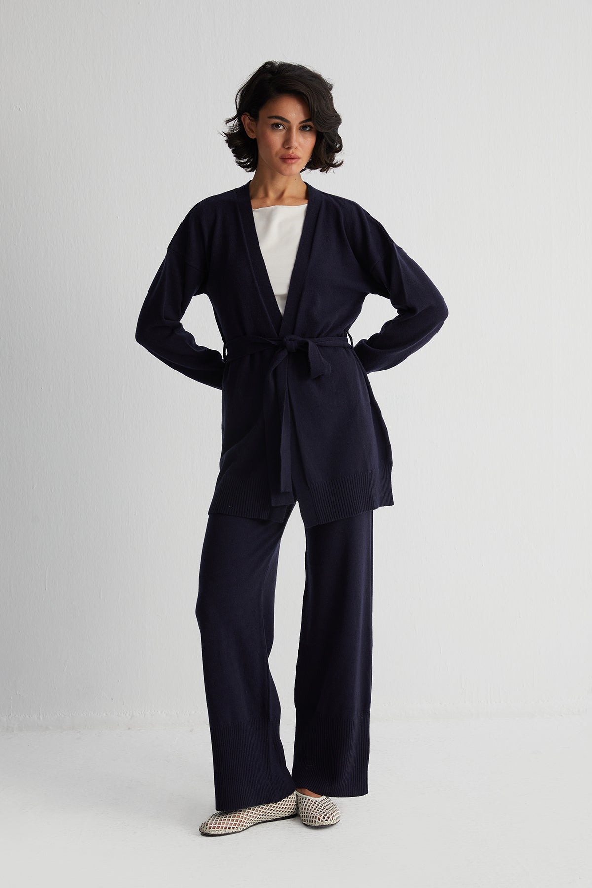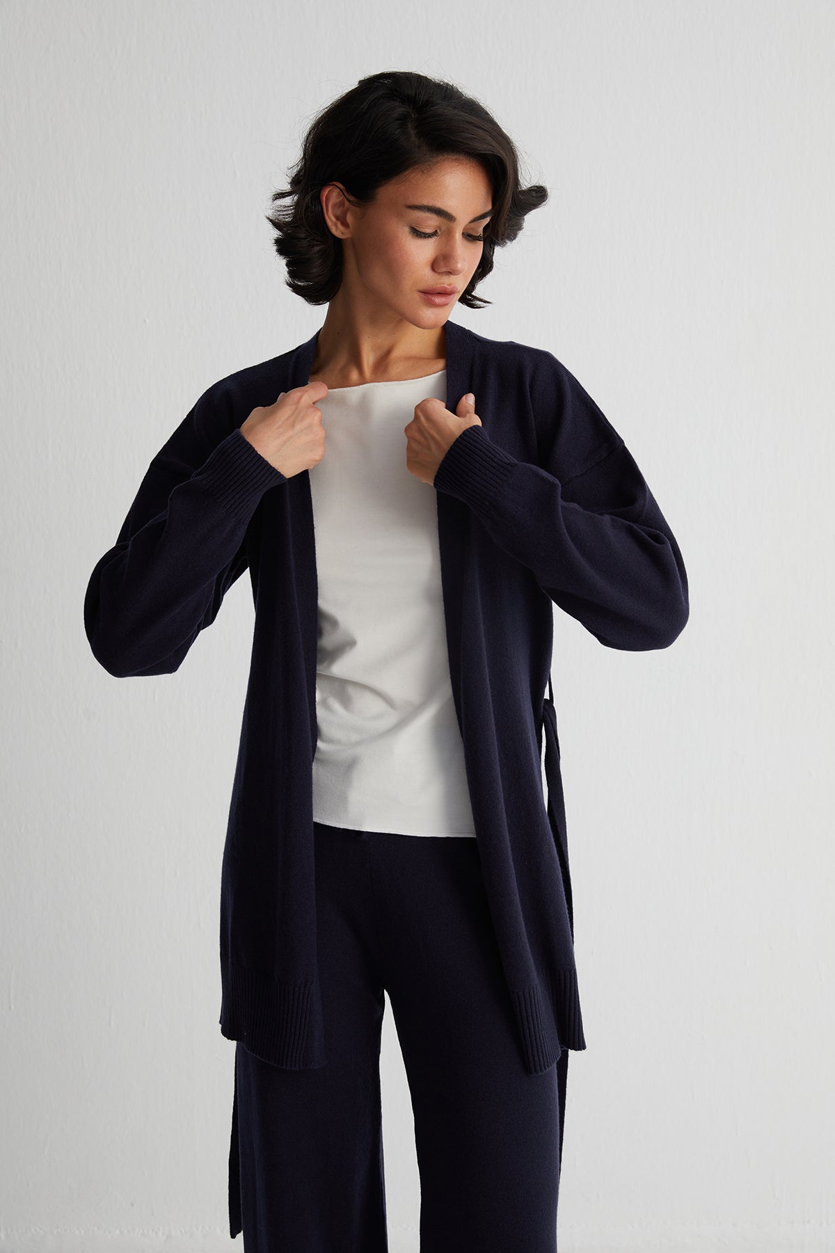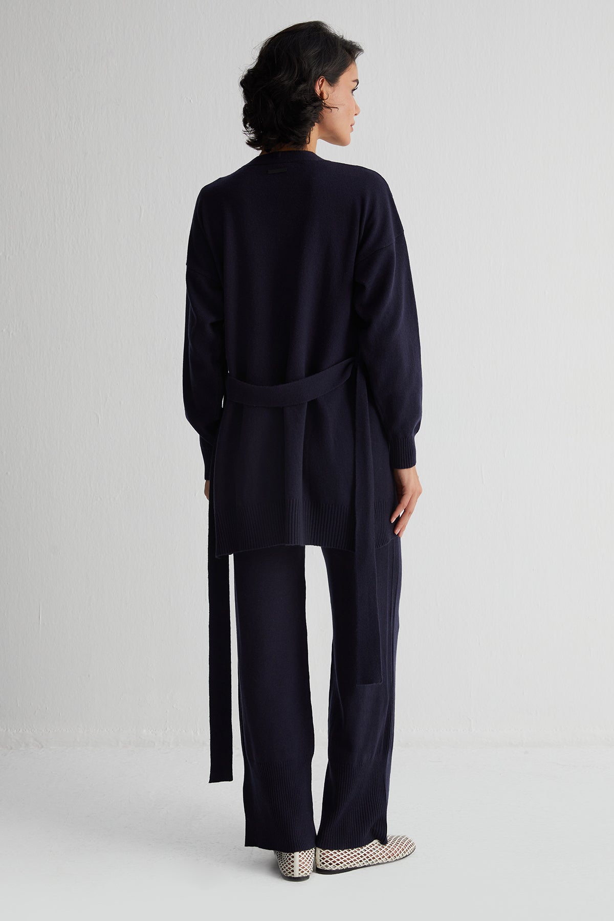 Lacivert Laura Yün Kaşmir Kuşaklı Hırka