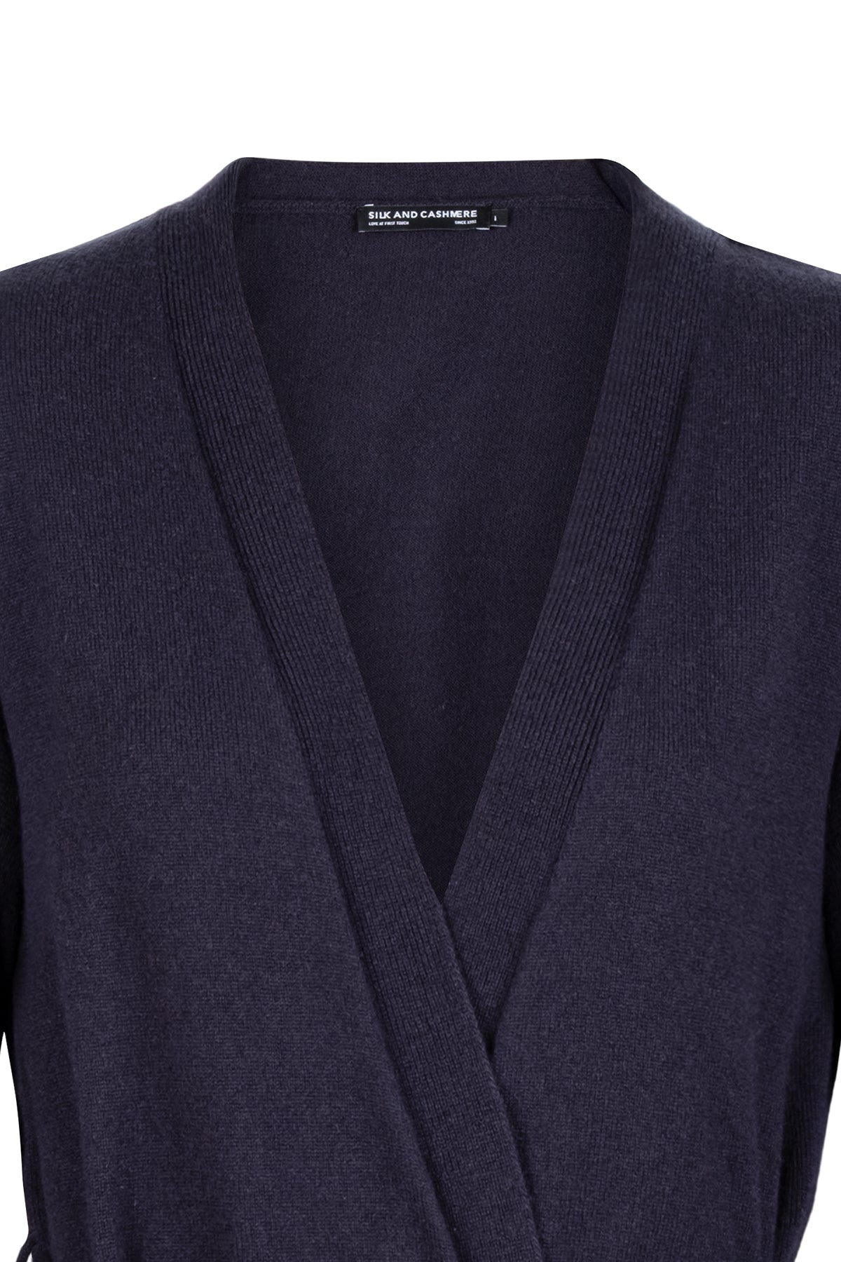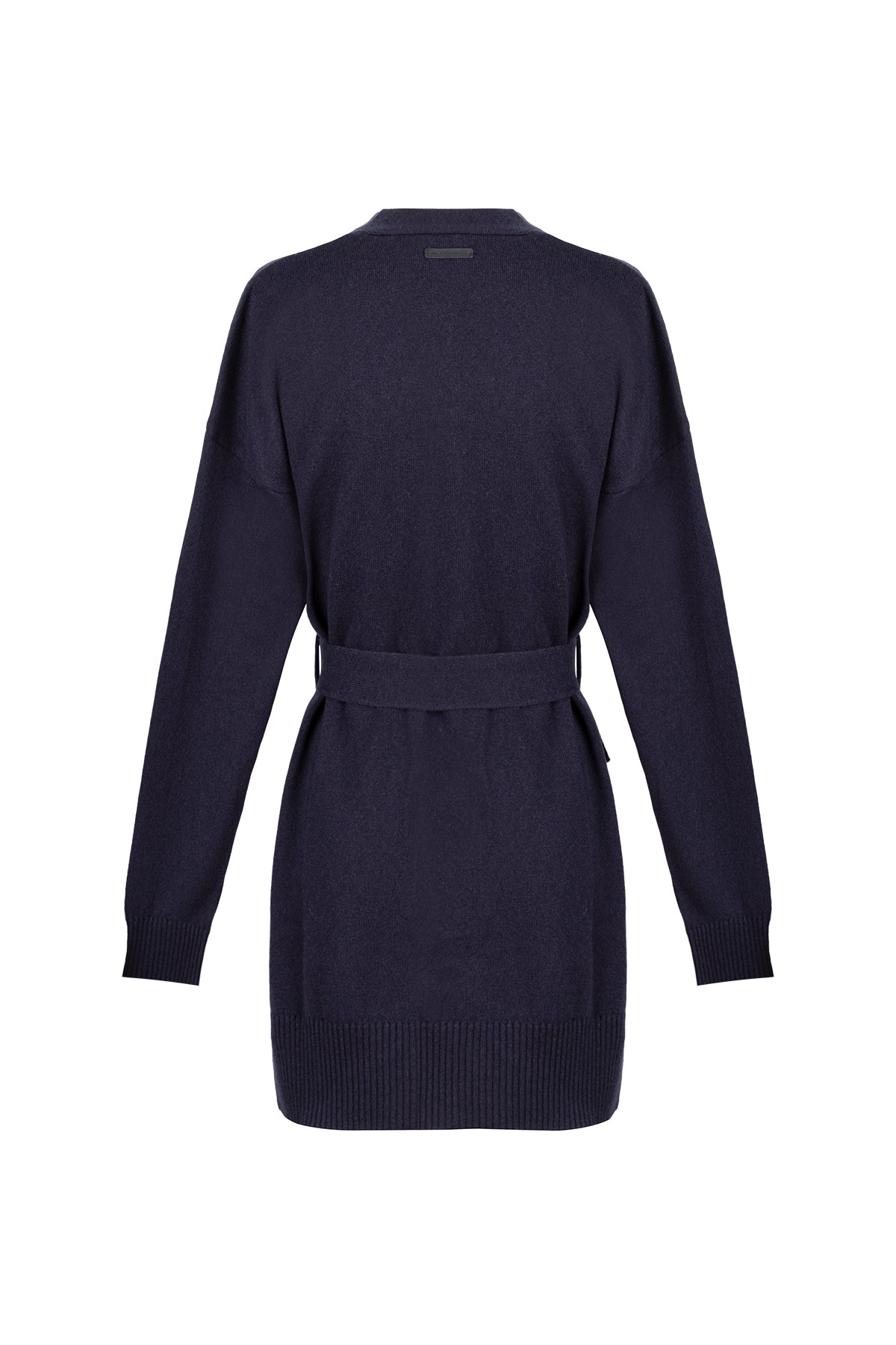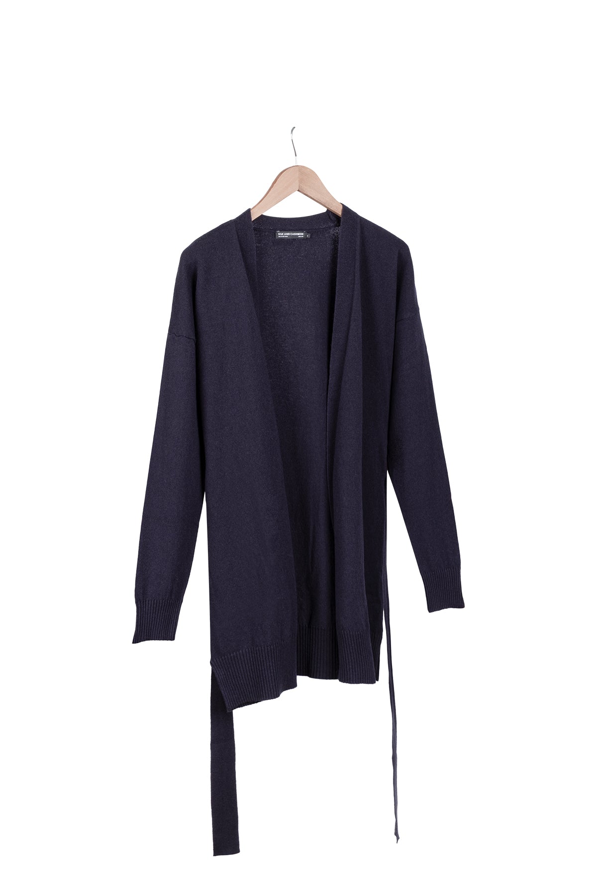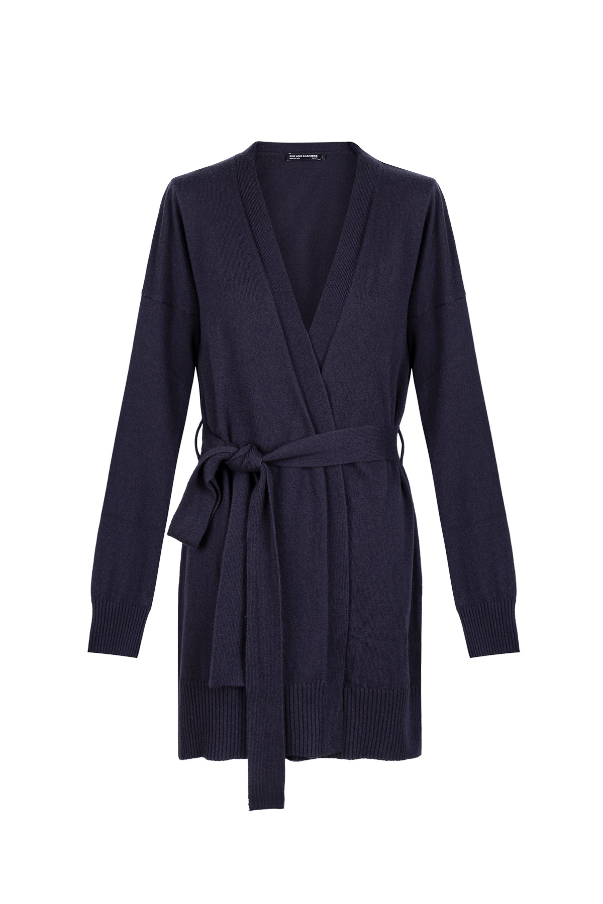 Lacivert Laura Yün Kaşmir Kuşaklı Hırka