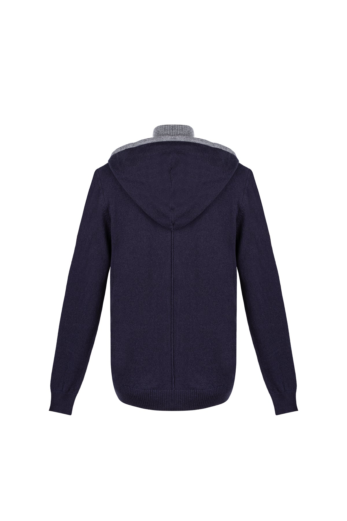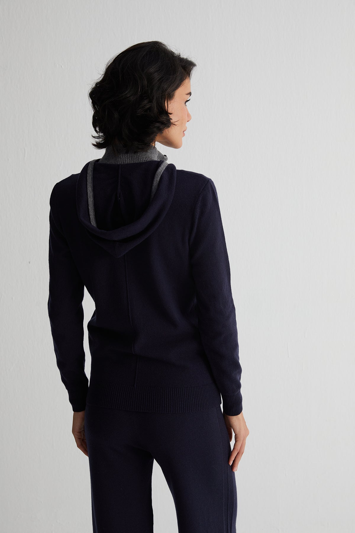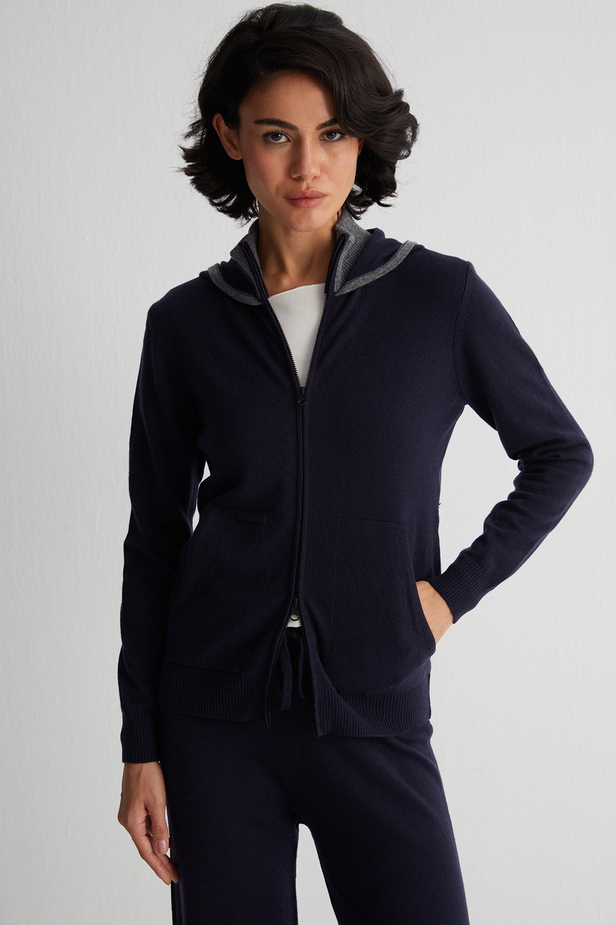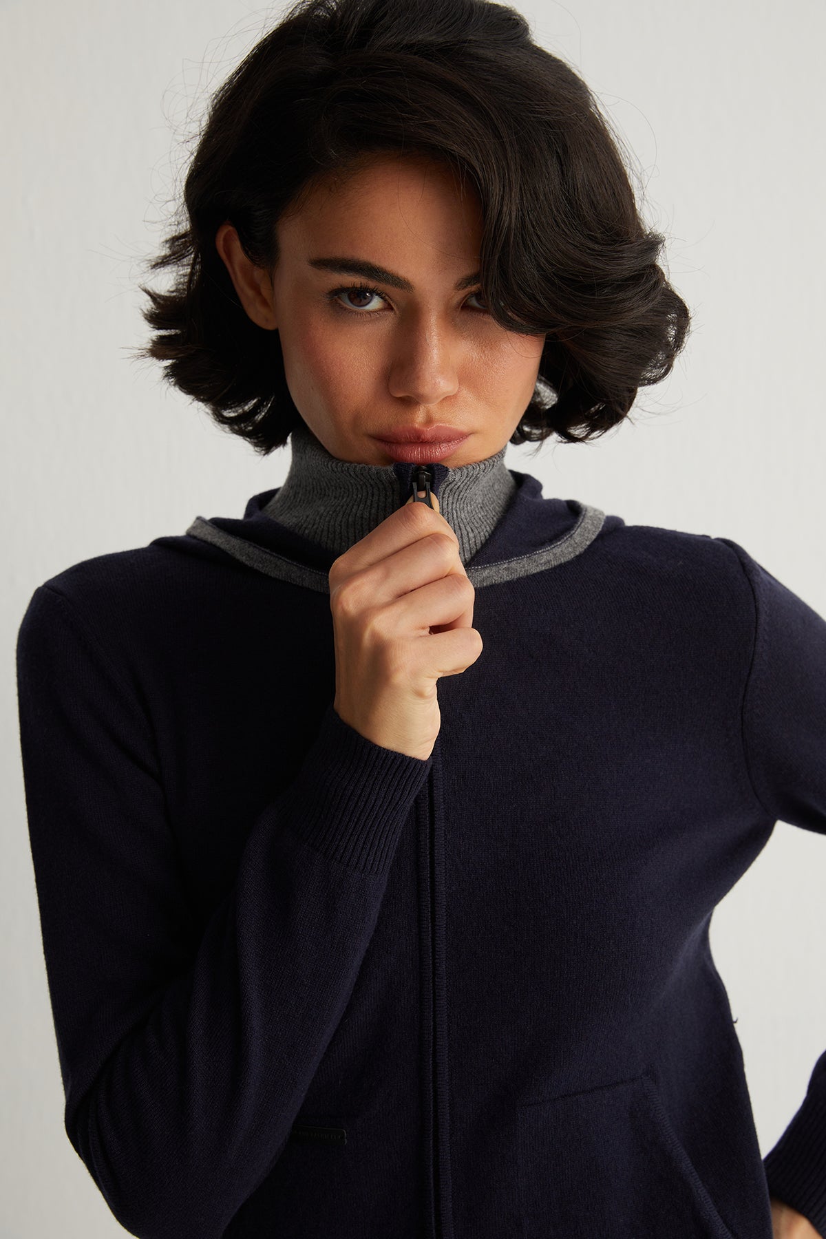 Lacivert Laura Yün Kaşmir Yüksek Yaka Kapüşonlu Hırka