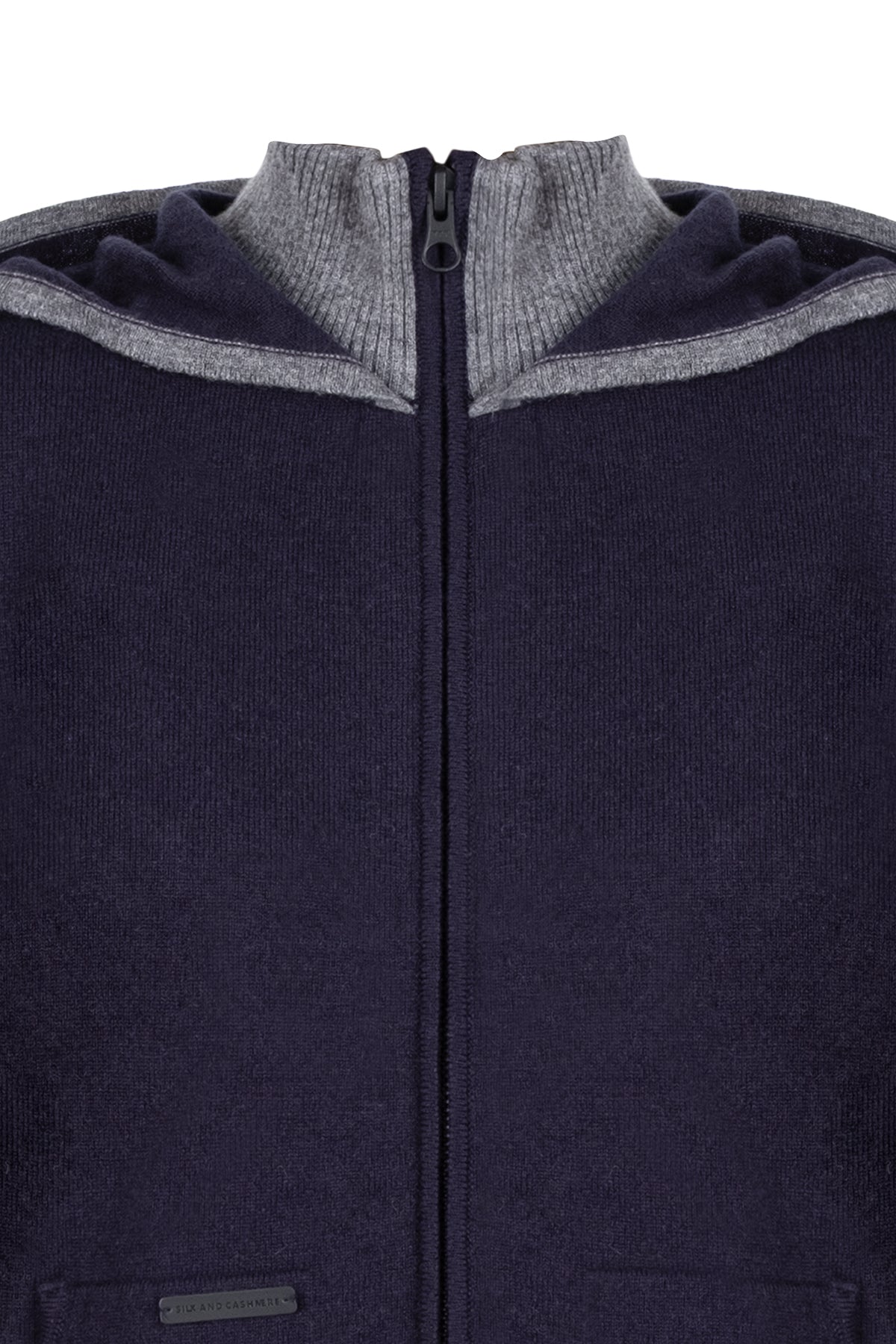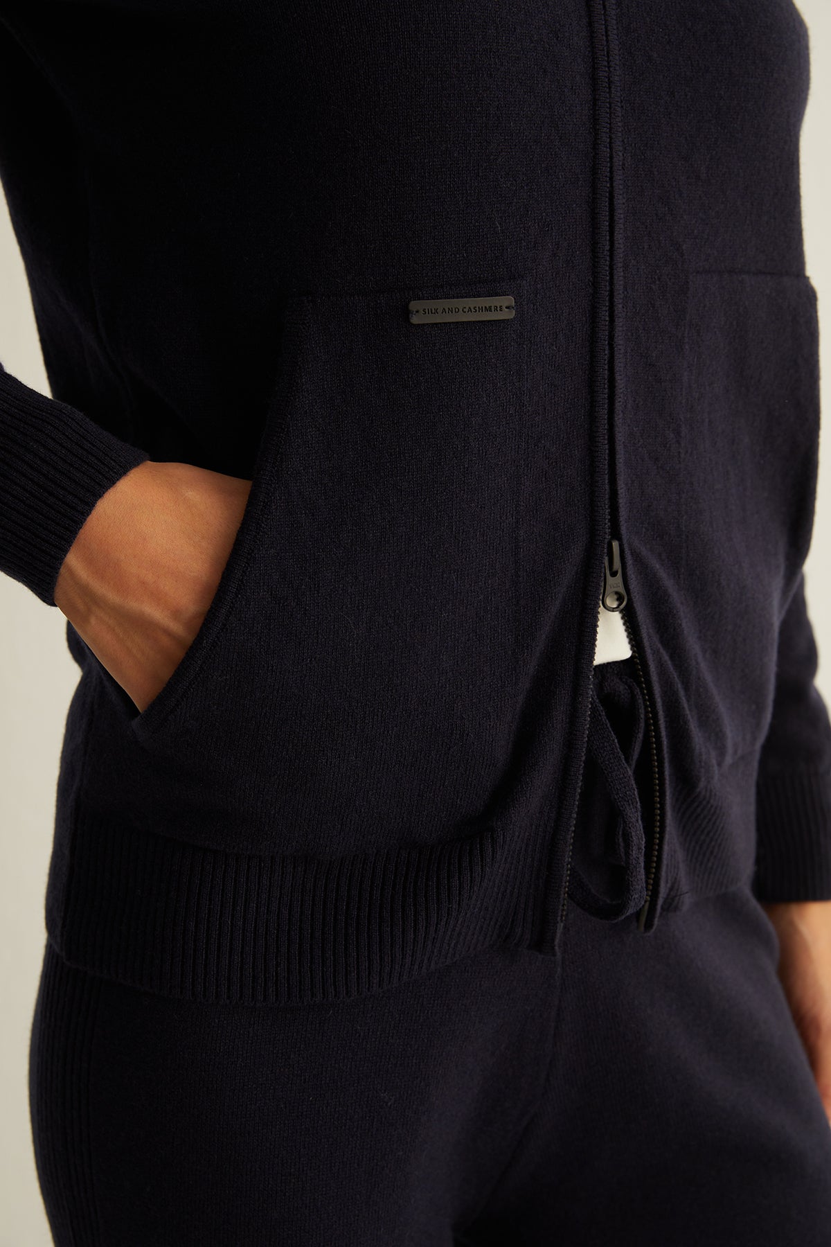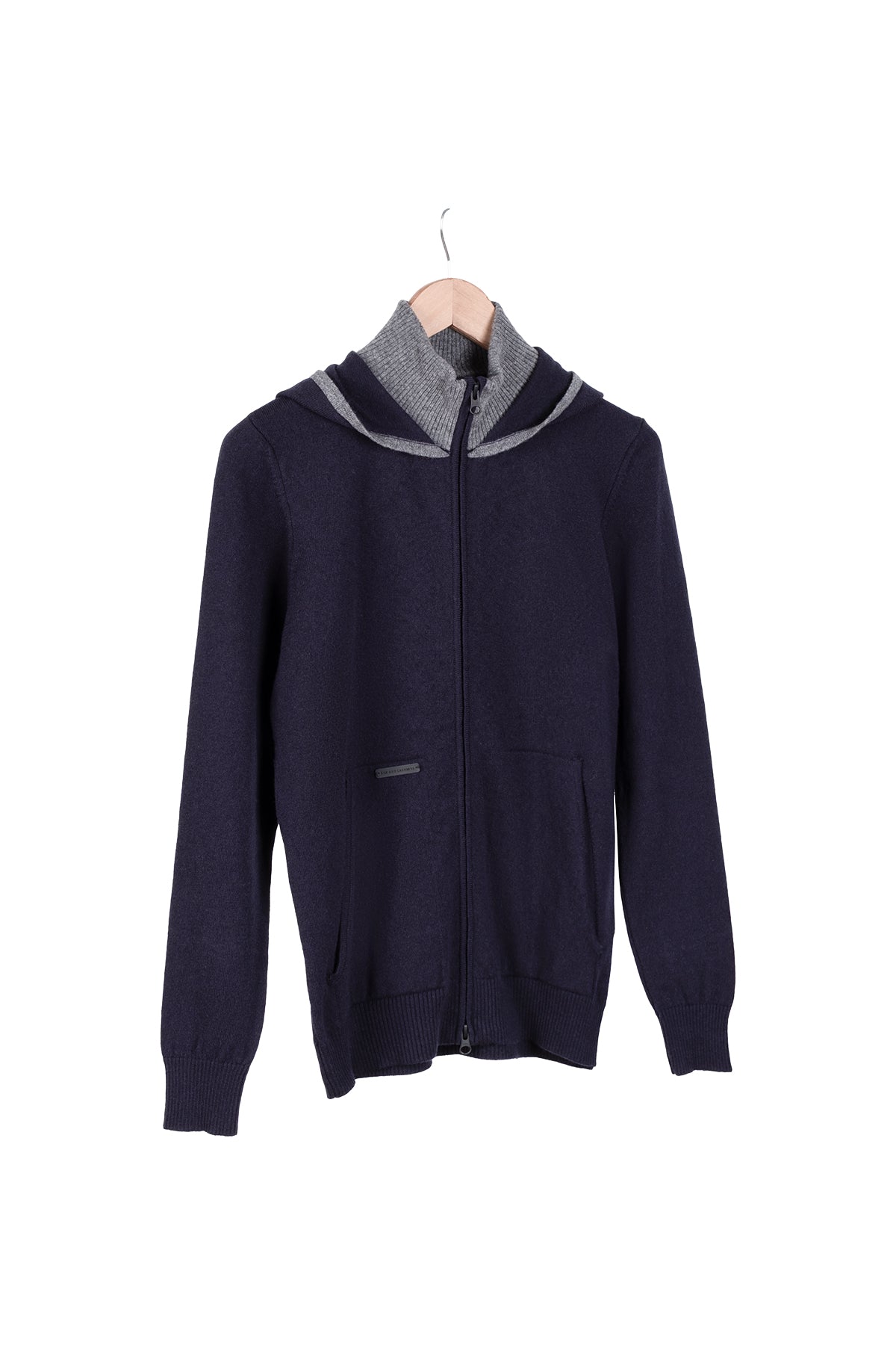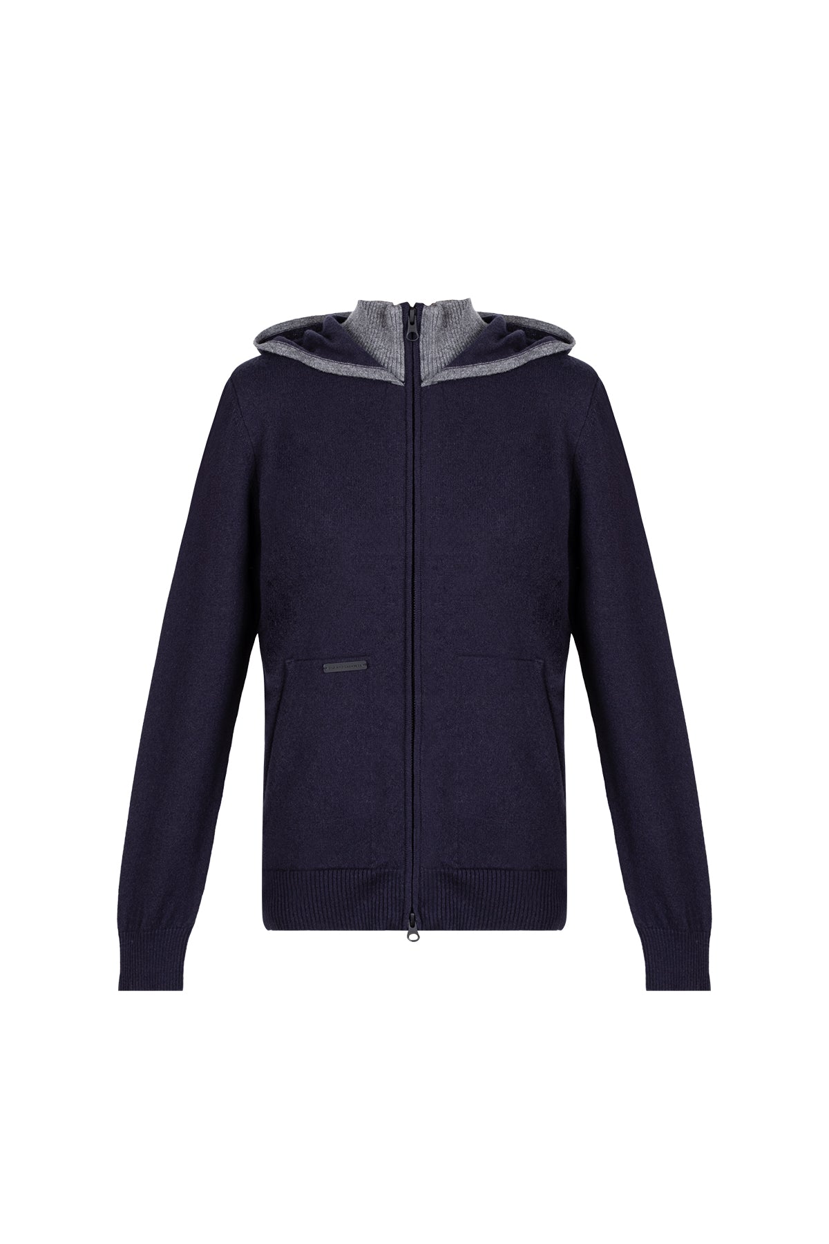 Lacivert Laura Yün Kaşmir Yüksek Yaka Kapüşonlu Hırka