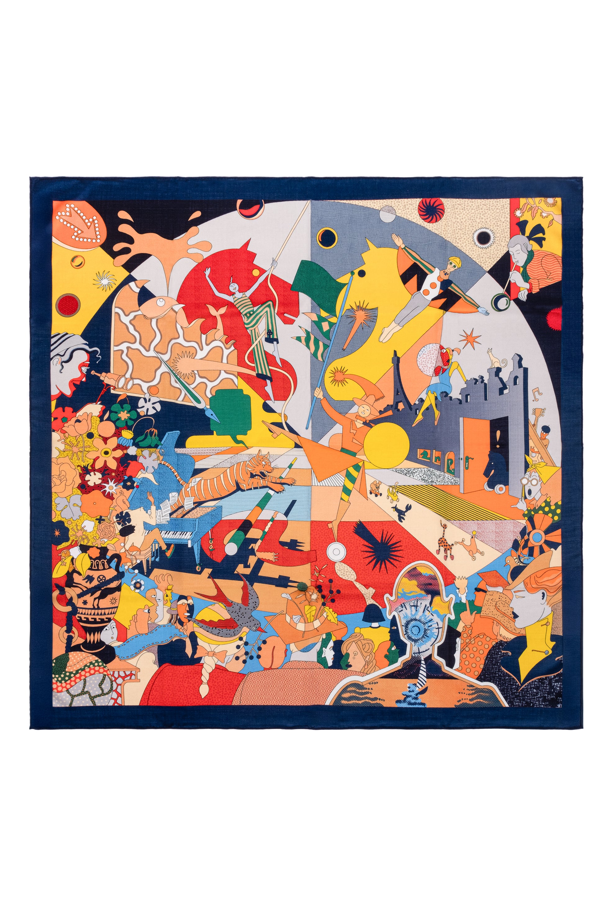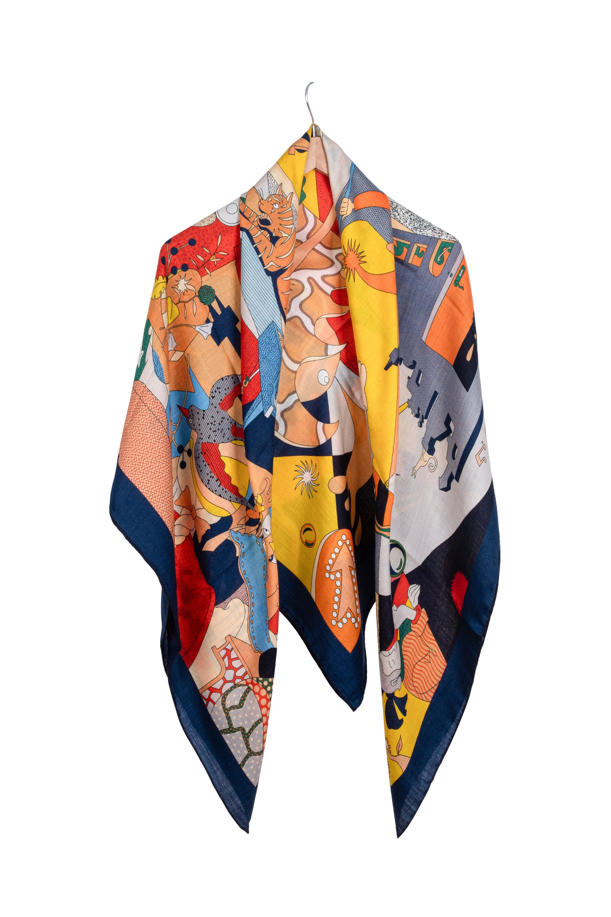 Lacivert Linda Saf Kaşmir Desenli Kare Eşarp 140x140 cm