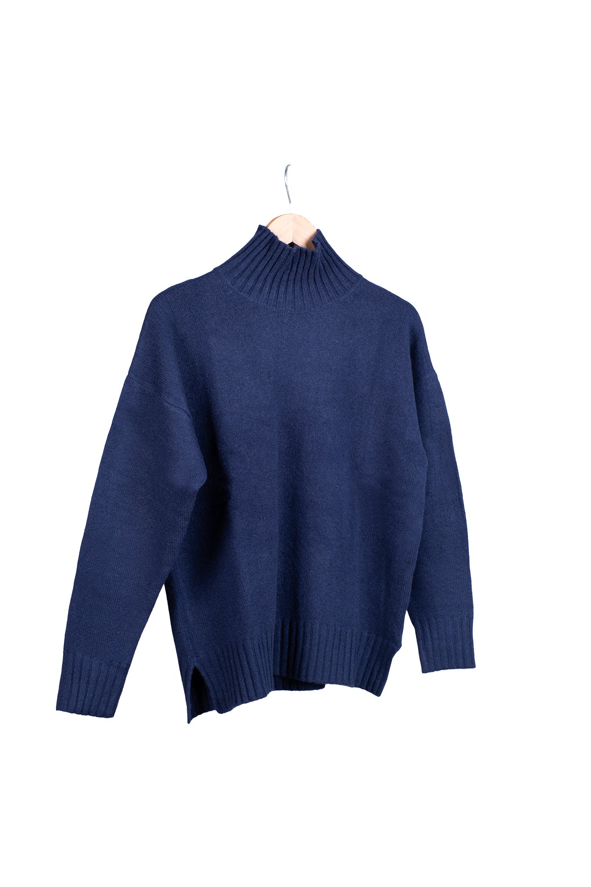 Lacivert tonuyla dikkat çeken bu kazak, %70 yün ve %30 kaşmir karışımı ile soğuk günlerde hem sıcaklık hem de konfor sunar. Balıkçı yaka tasarımı boyun kısmını nazikçe sararken, dökümlü ve rahat kesimi hareket özgürlüğü sağlar. Günlük kullanımdan iş kombinlerine kadar çok yönlü bir seçenek sunar.