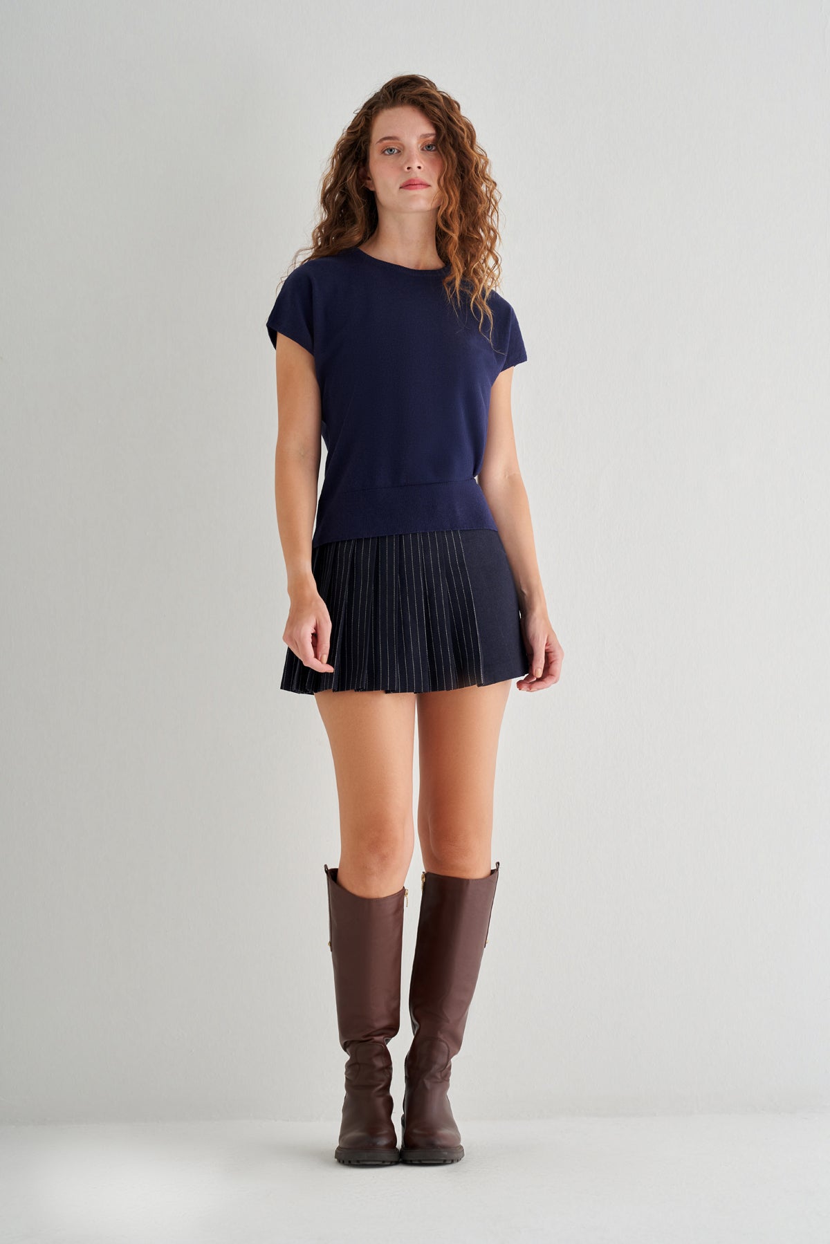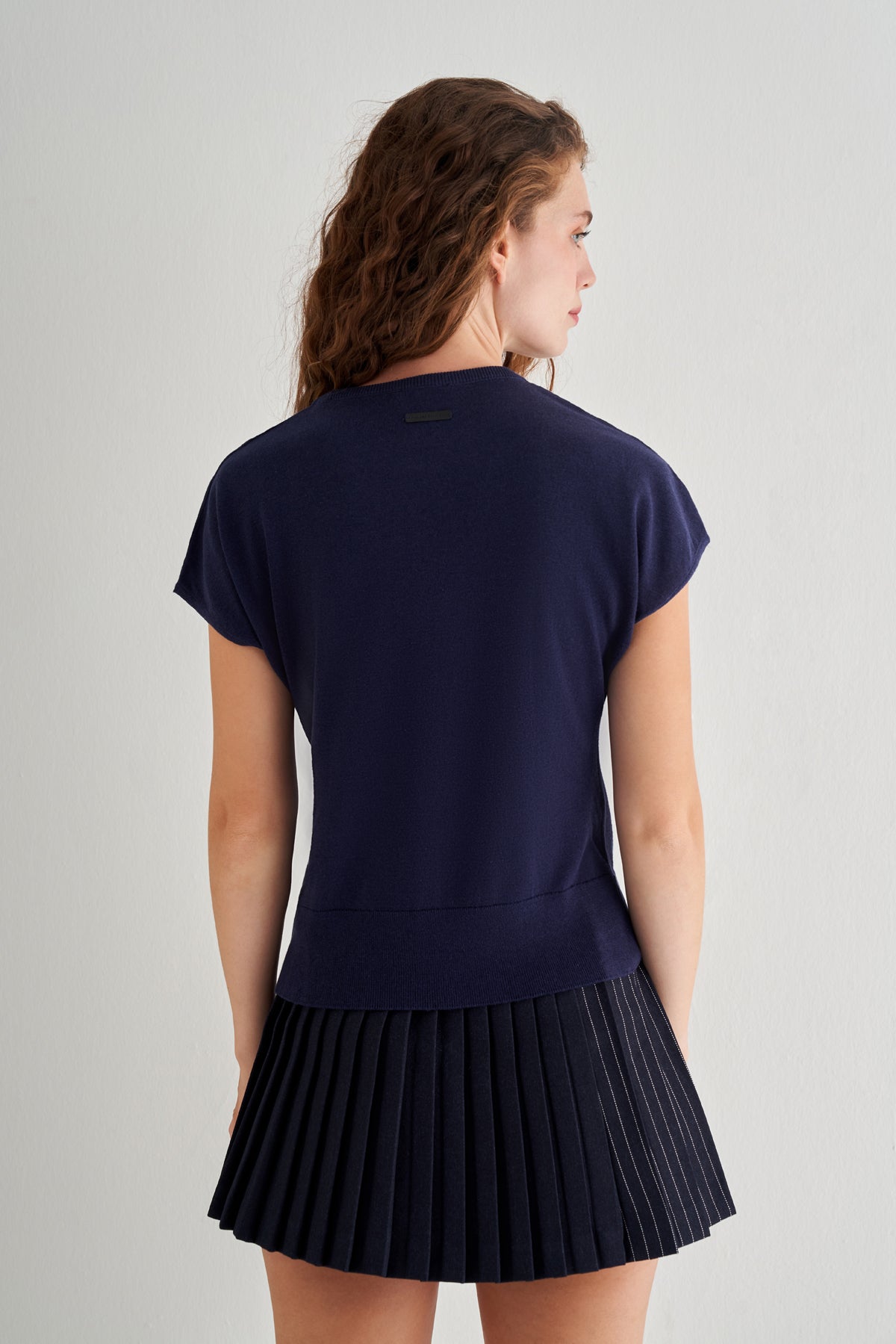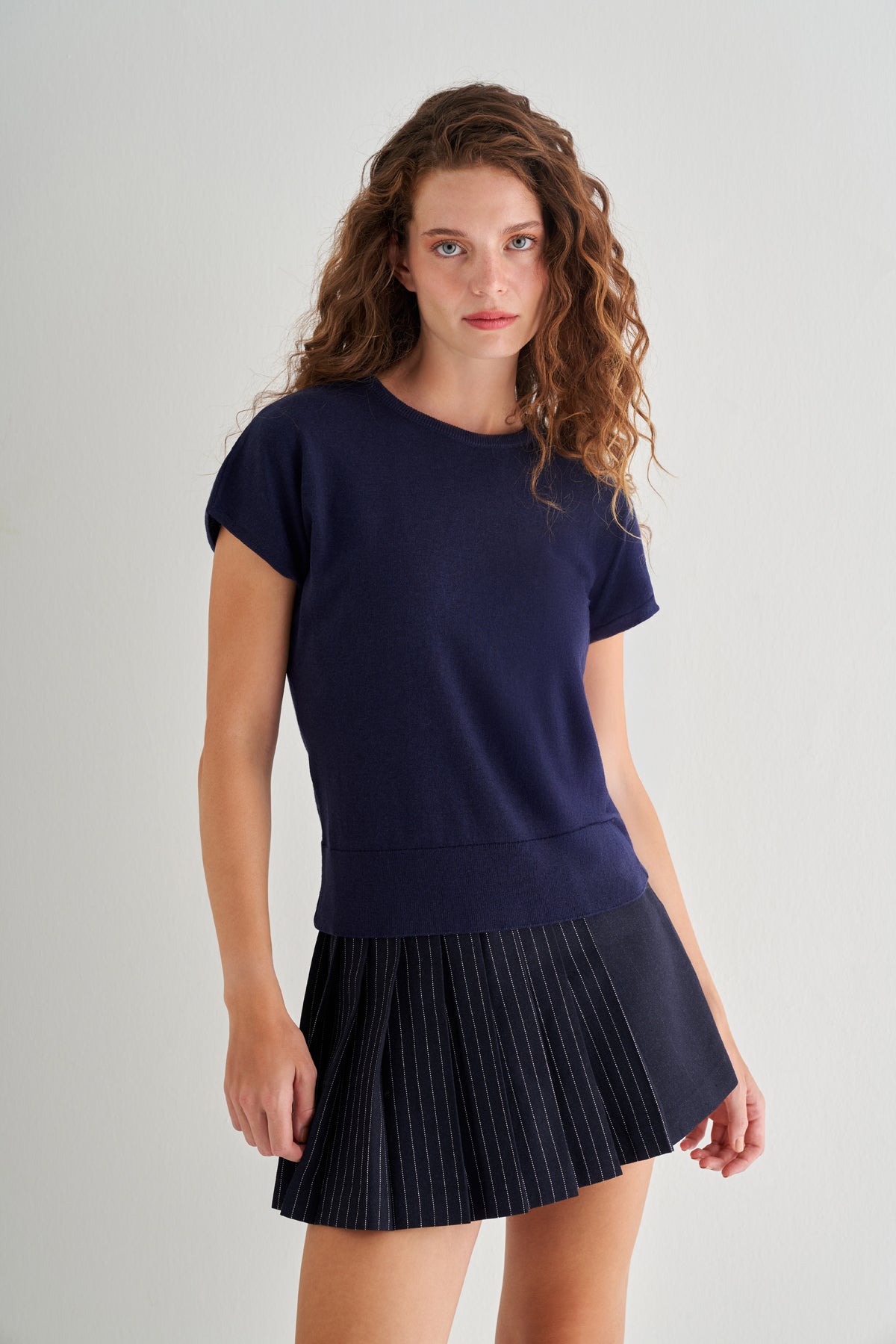 Lacivert Mila Yuvarlak Yaka Kısa Kollu Triko