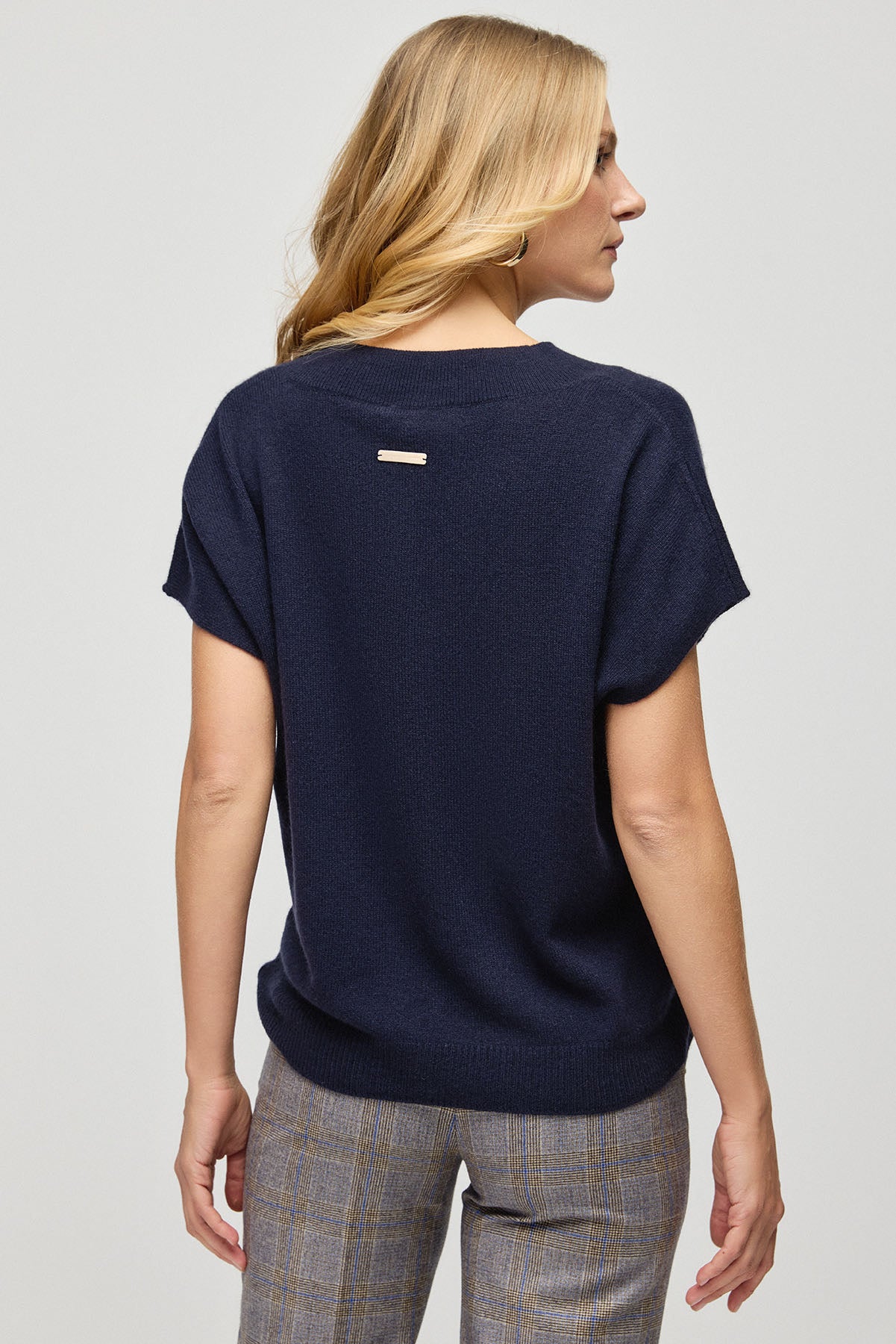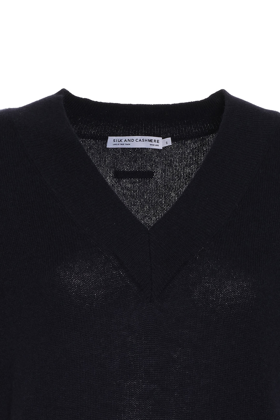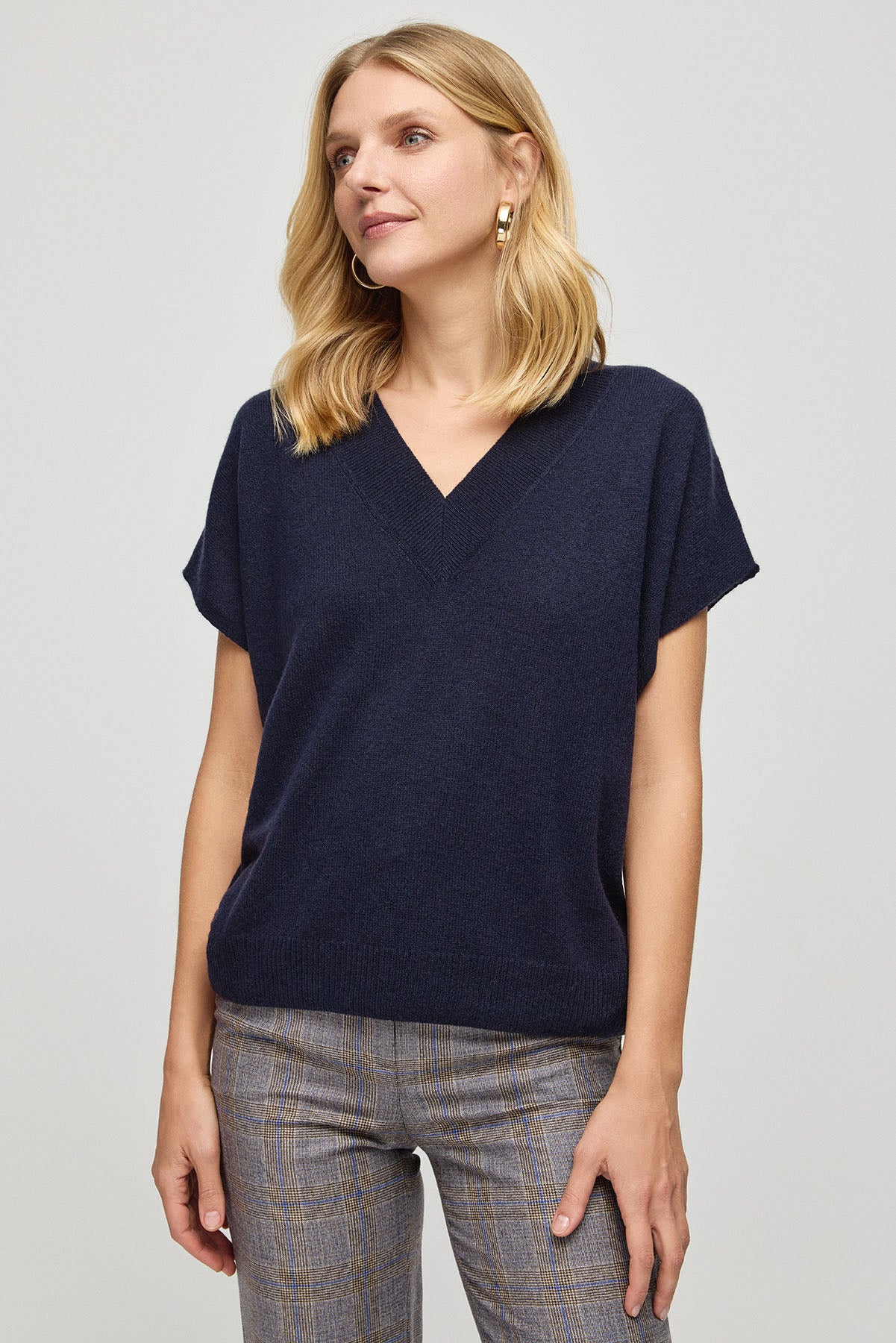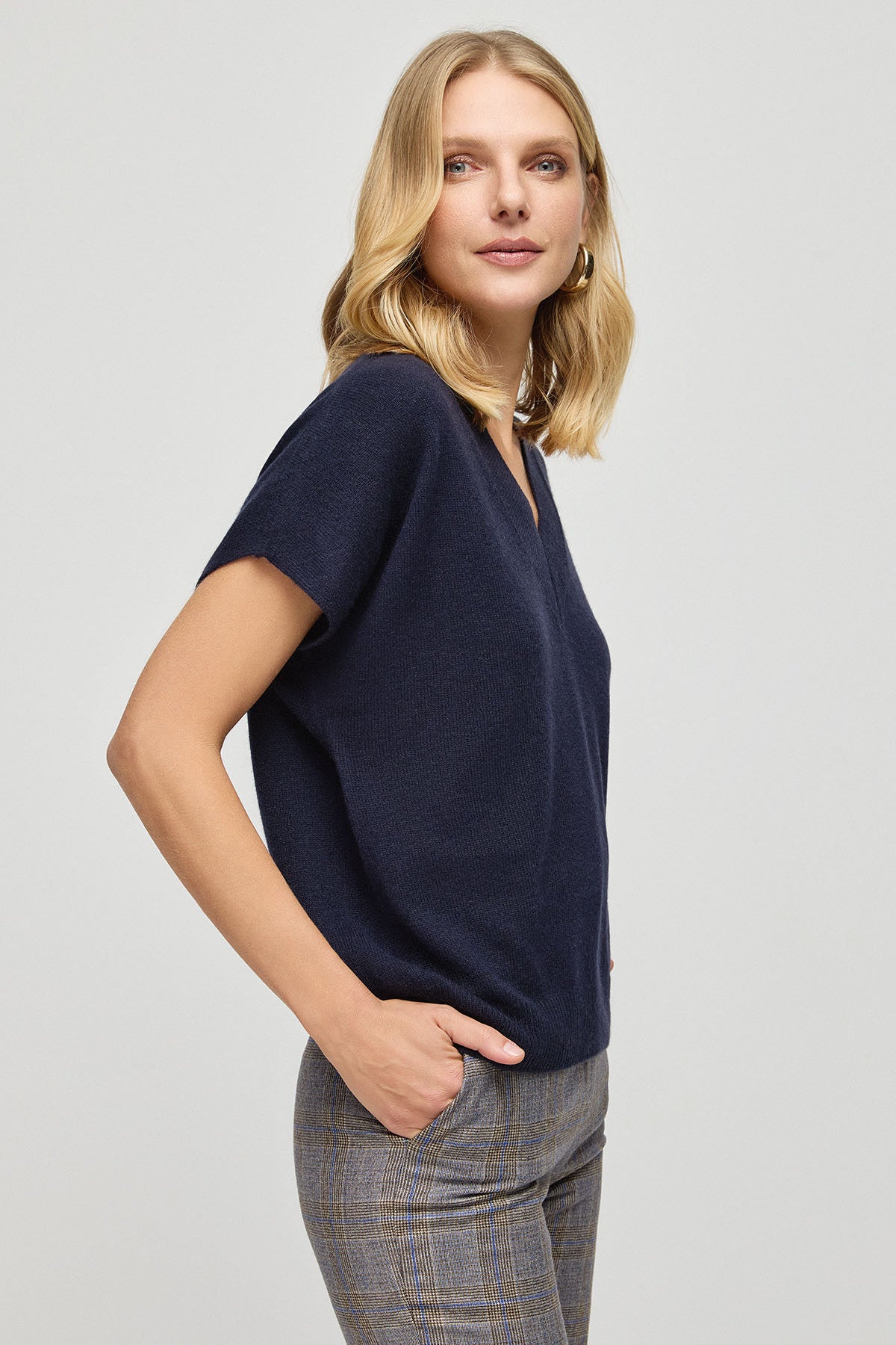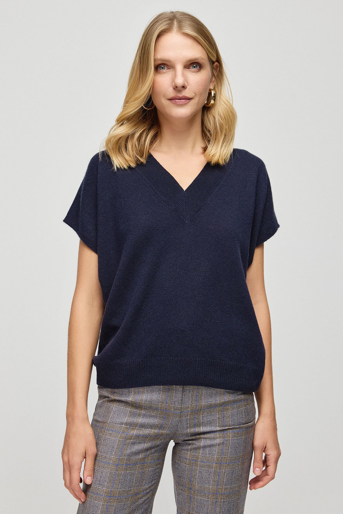 Lacivert Saf Kaşmir Kostir Derin V Yaka Rahat Kesim Kadın Triko