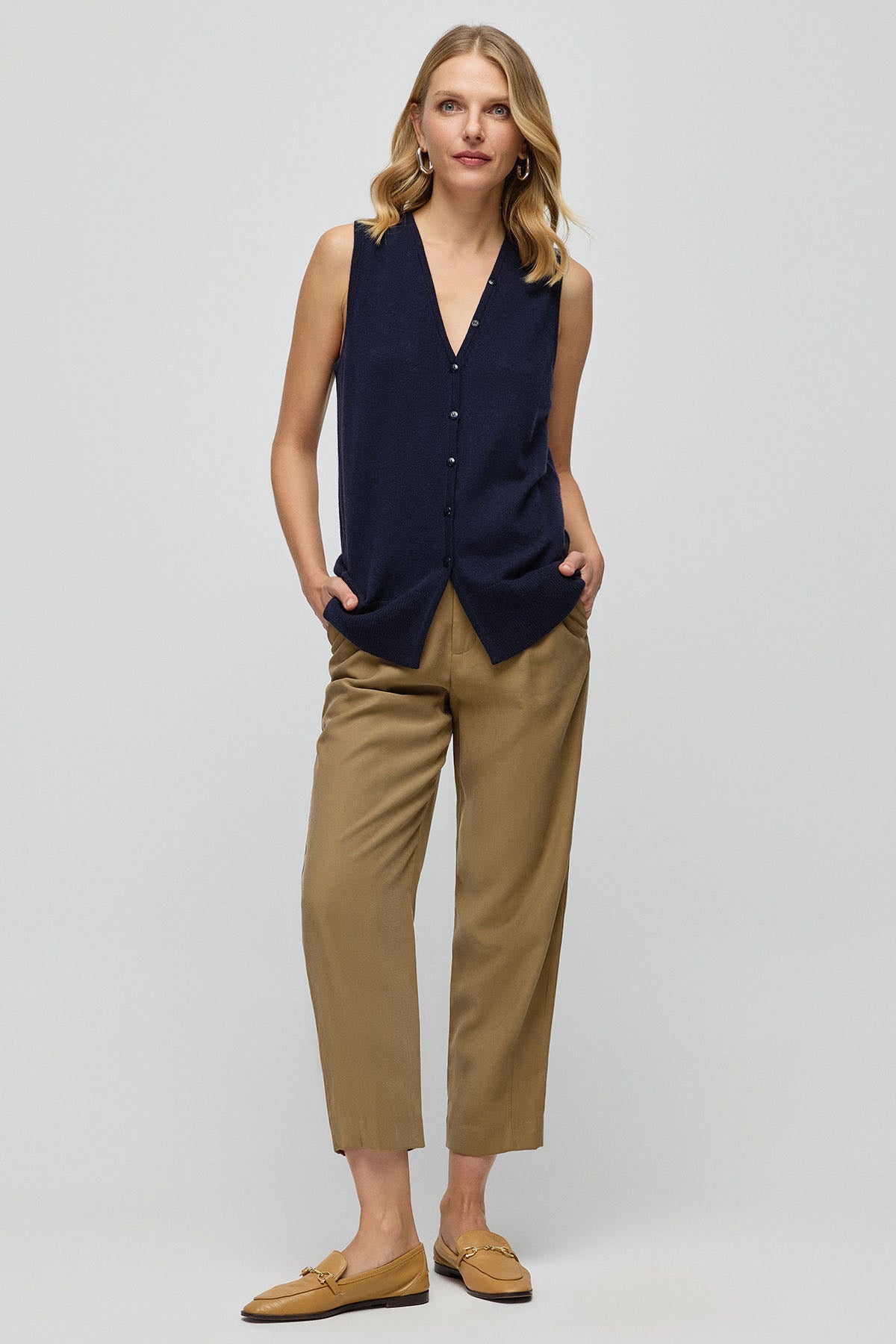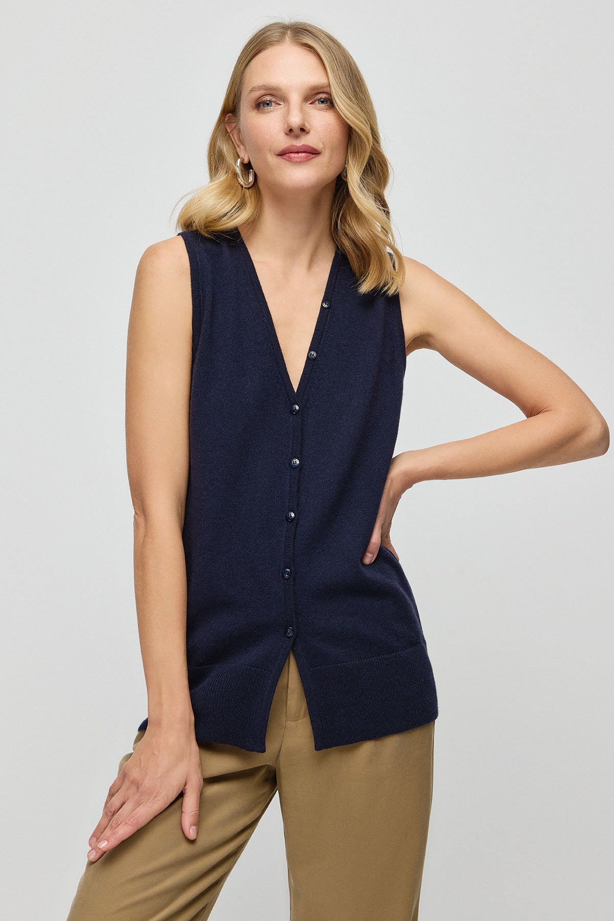 Lacivert Saf Kaşmir Kostir V Kadın Kolsuz Yelek