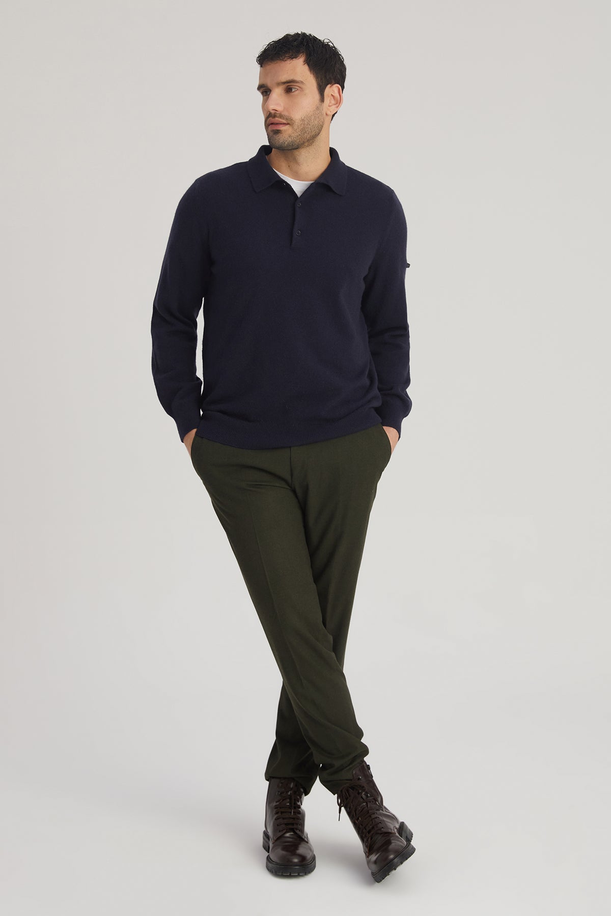 Doğal kaşmirin yumuşak dokusu ve lacivertin zamansız şıklığı, bu polo kazakta bir araya geliyor. %100 saf kaşmir ile üretilen bu kazak, hem hafifliğiyle sizi rahat ettirir hem de doğal ısısı sayesinde soğuk havalarda ideal bir seçenek olur. Her ortamda kolayca kombinlenebilir ve sofistike görünüm sağlar.