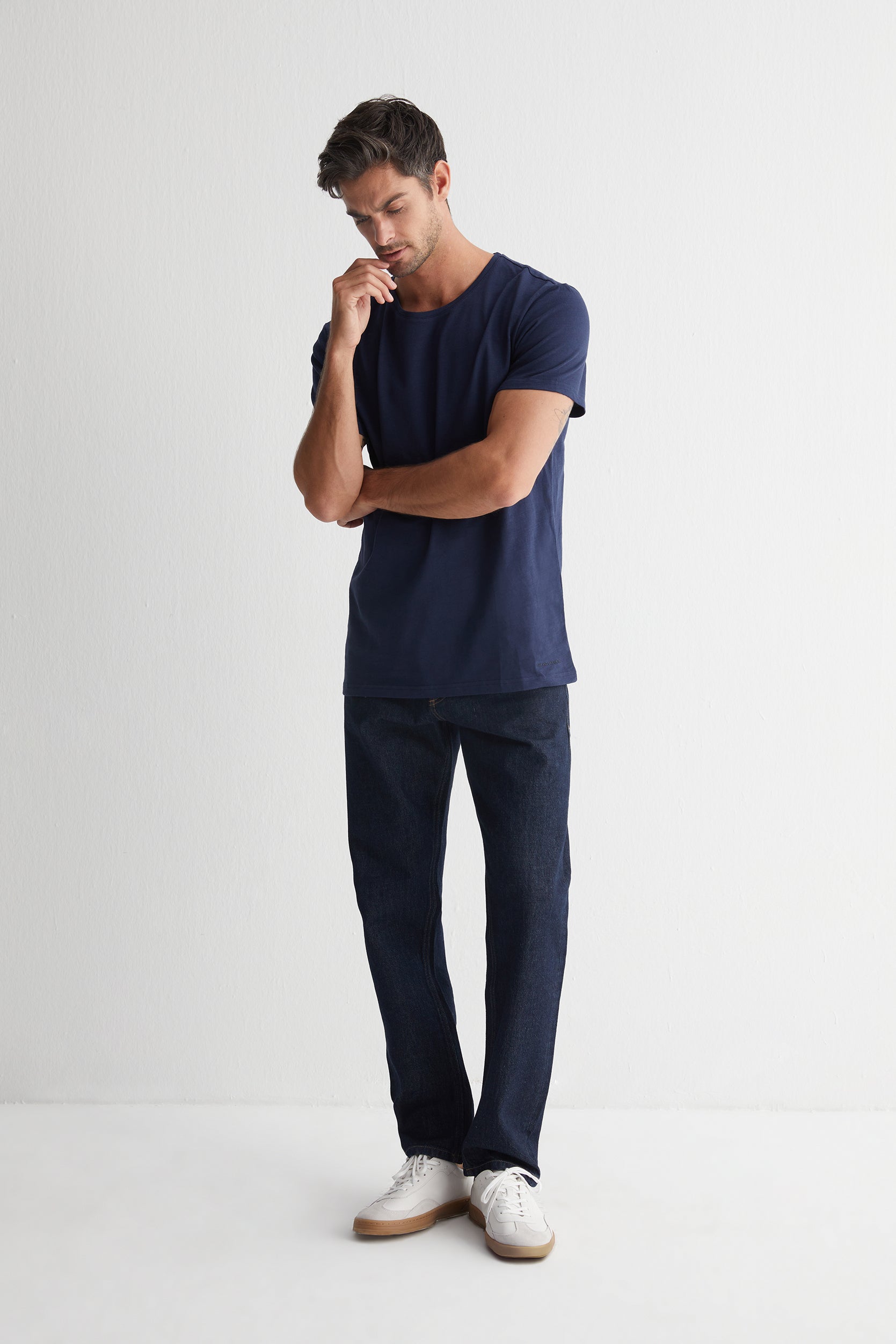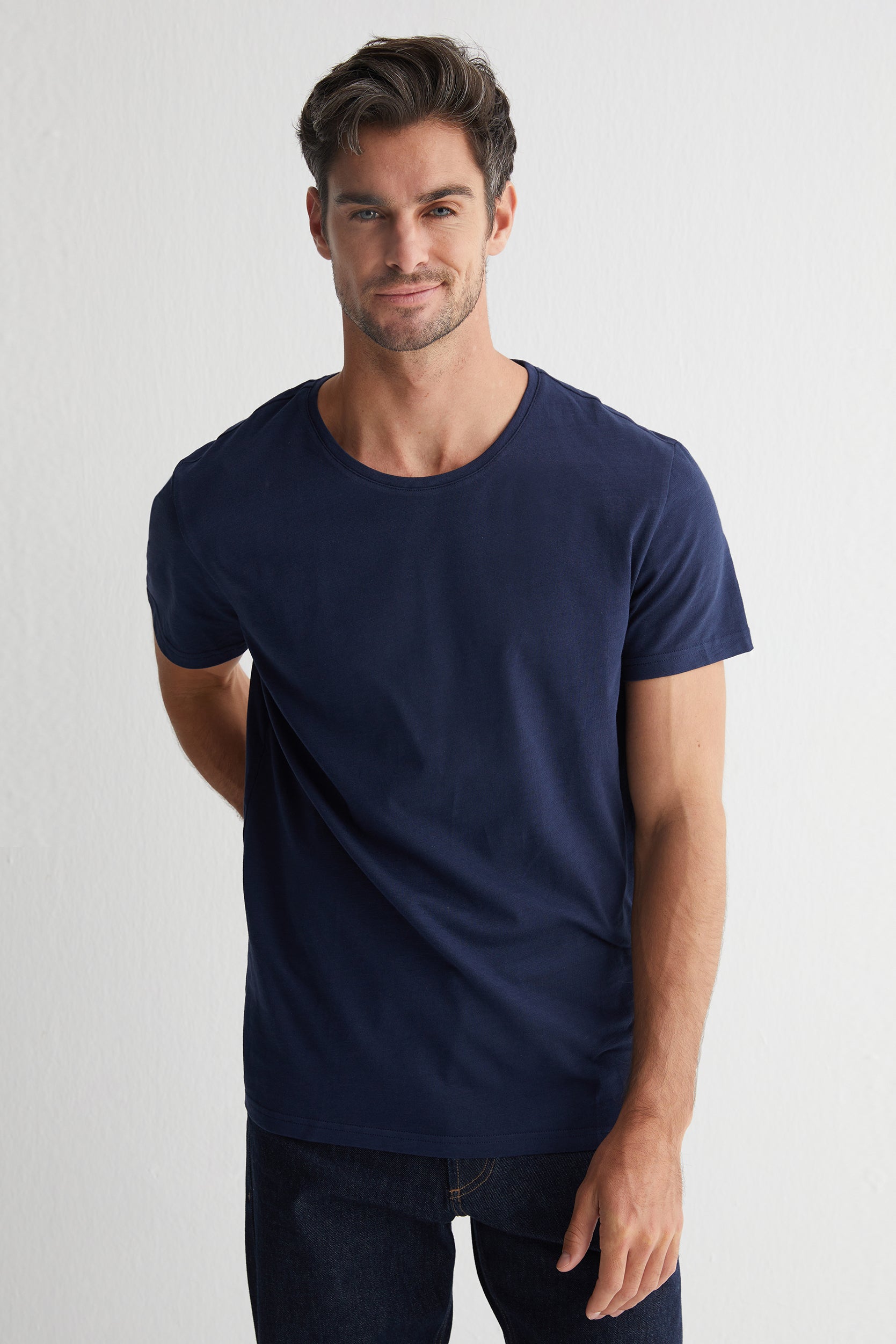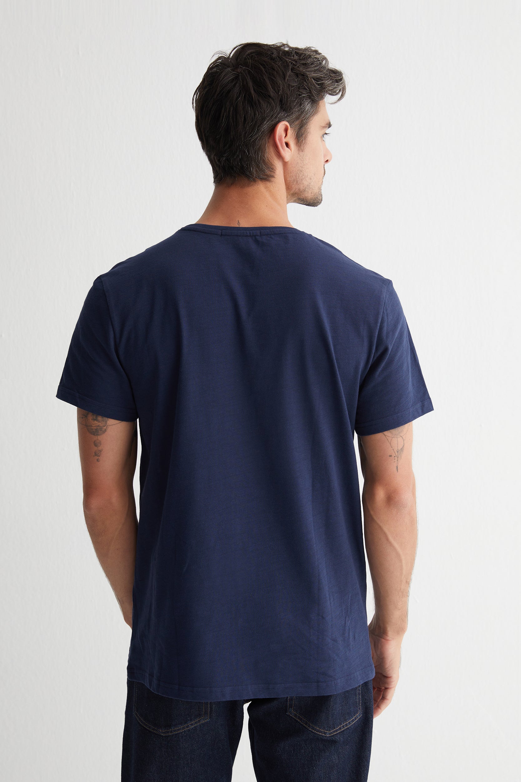Lacivert Saf Pamuk Marc Yuvarlak Yaka Erkek Basic Tişört