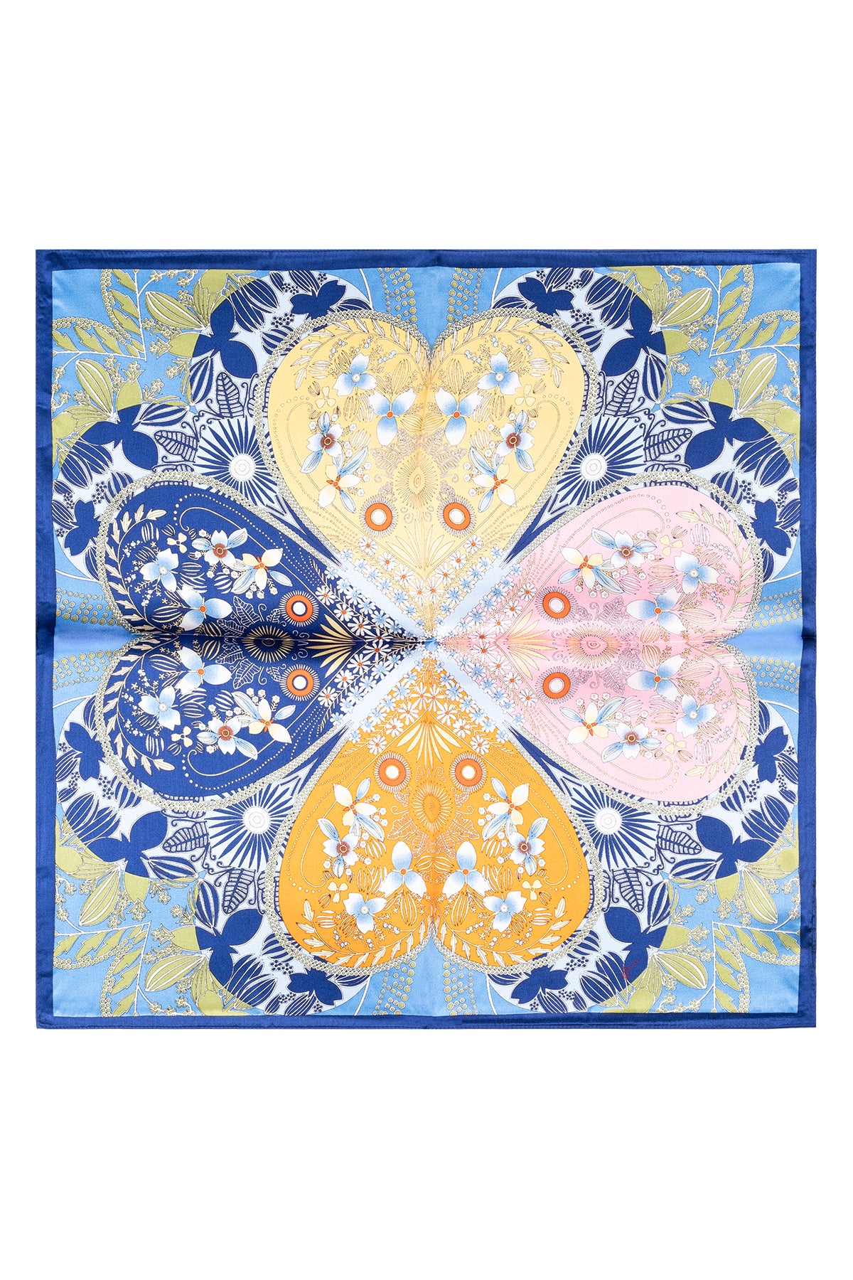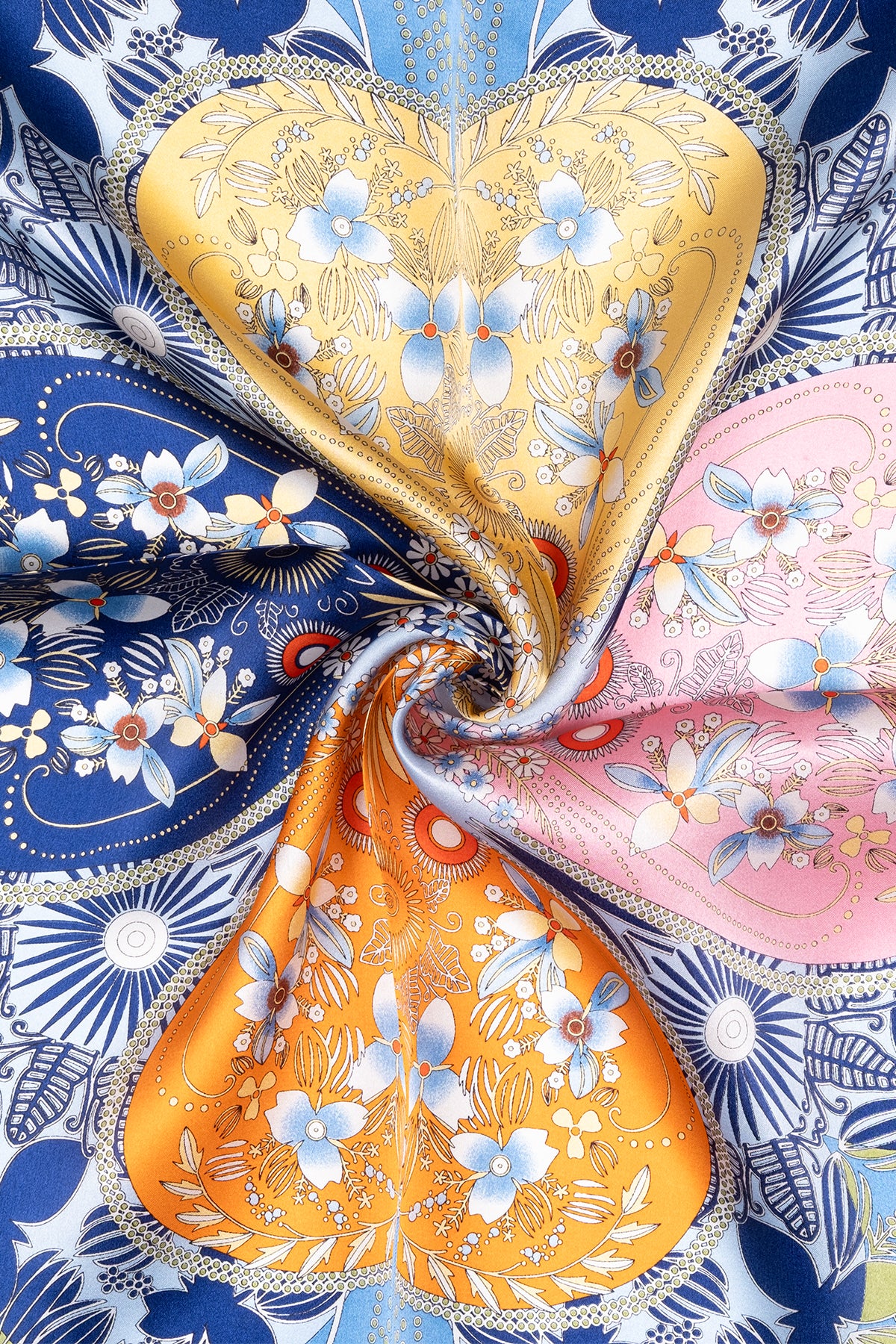 Lacivert Sarı Laila Saf İpek Kare Eşarp 50x50 cm