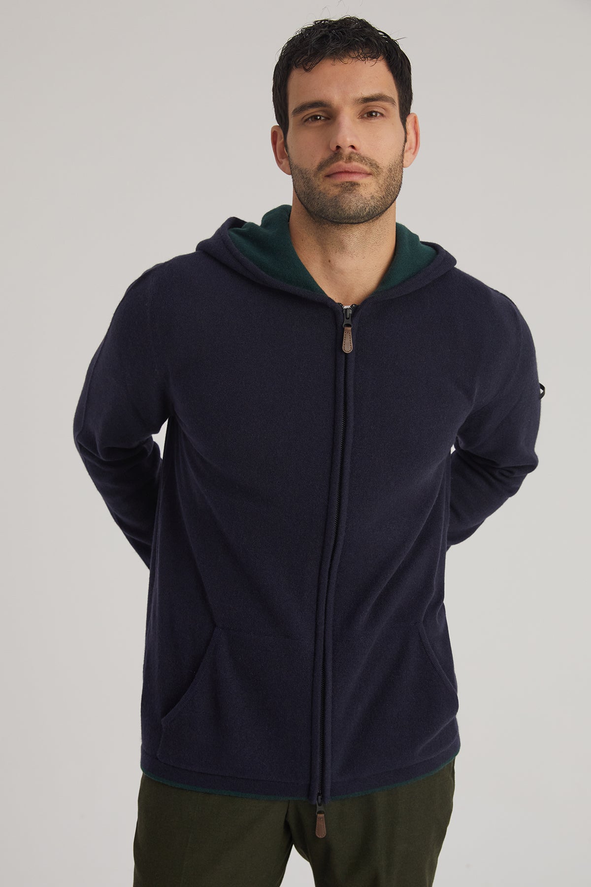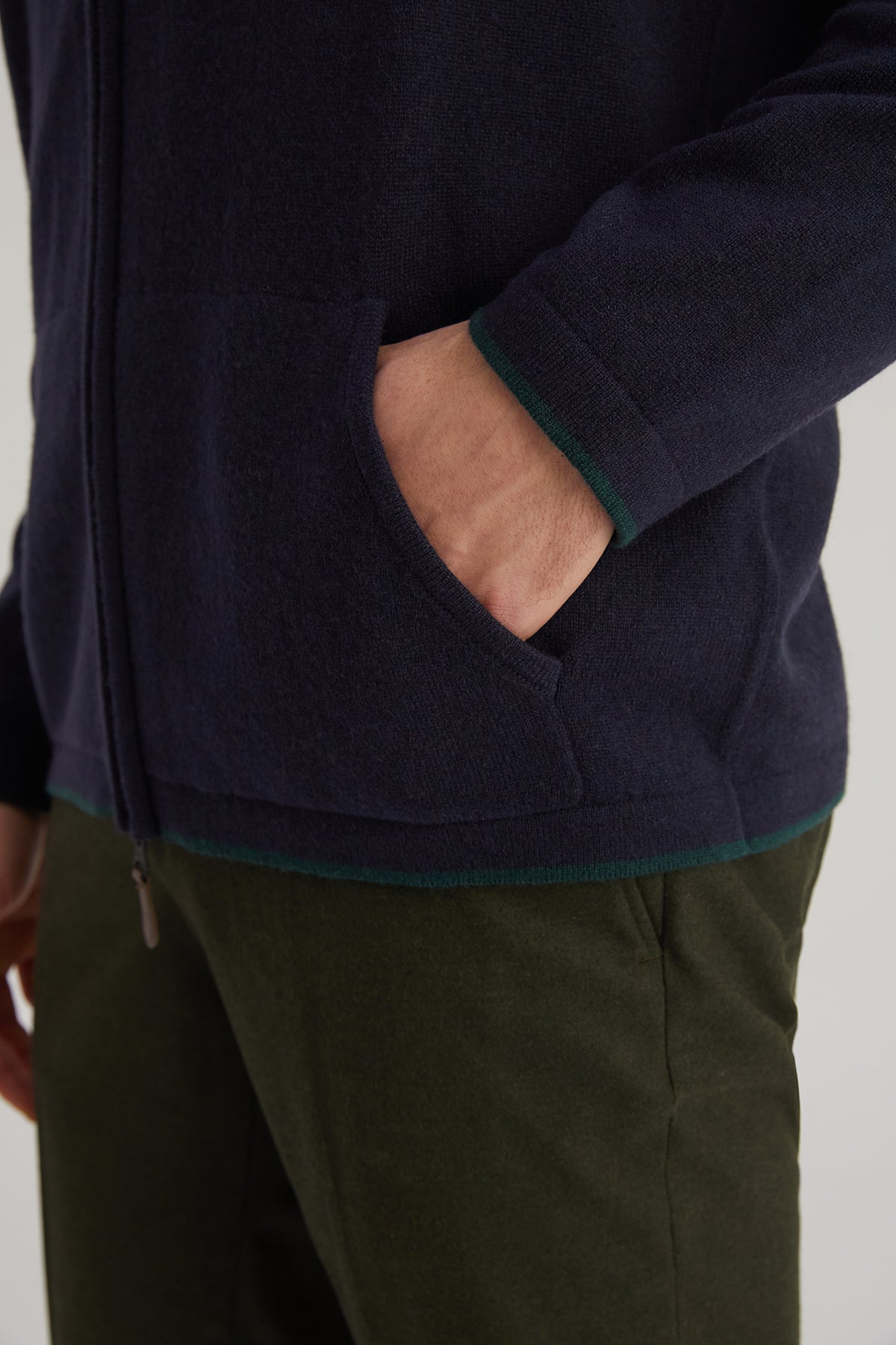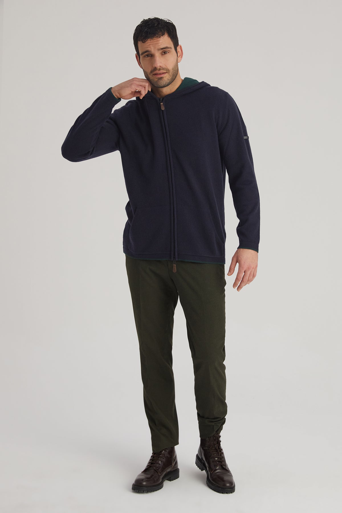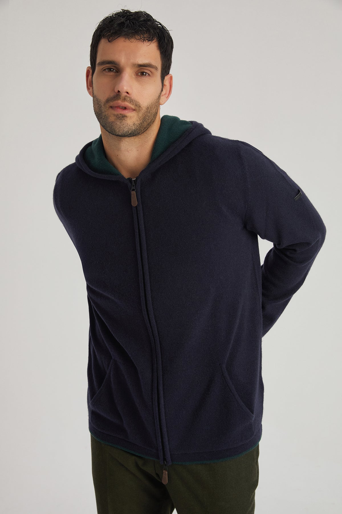 Kaşmirin doğal dokusunu konforla buluşturan bu kapüşonlu hırka, lacivert rengi ve işlevsel tasarımıyla günlük kullanımlar için ideal bir seçenek sunuyor. Hafif yapısı sayesinde kolay taşınabilir, fermuarlı tasarımı ise pratik bir giyim deneyimi sağlar. Kapüşon ve cep detayları, soğuk günlerde sıcaklık ve rahatlık sunar.